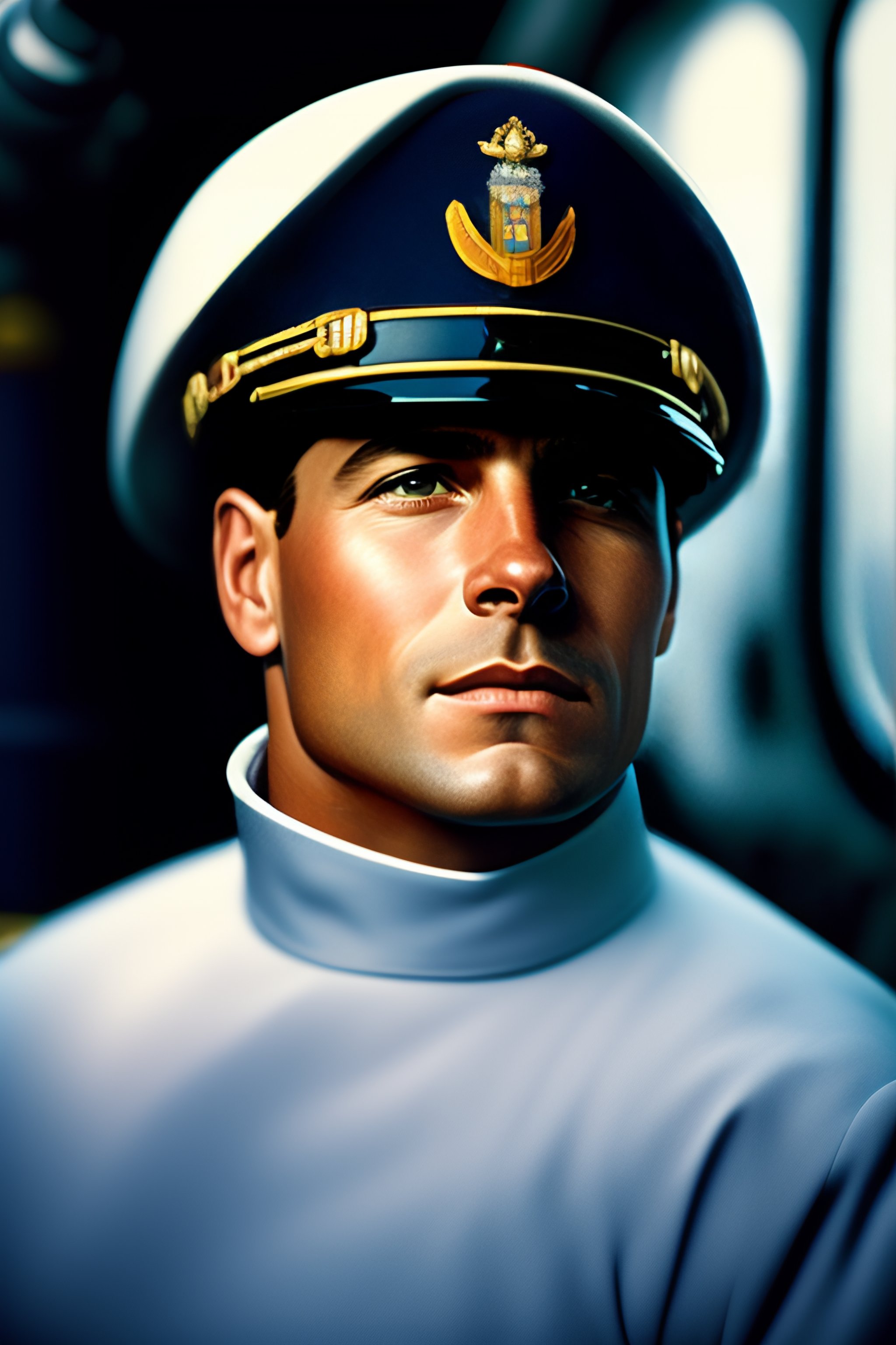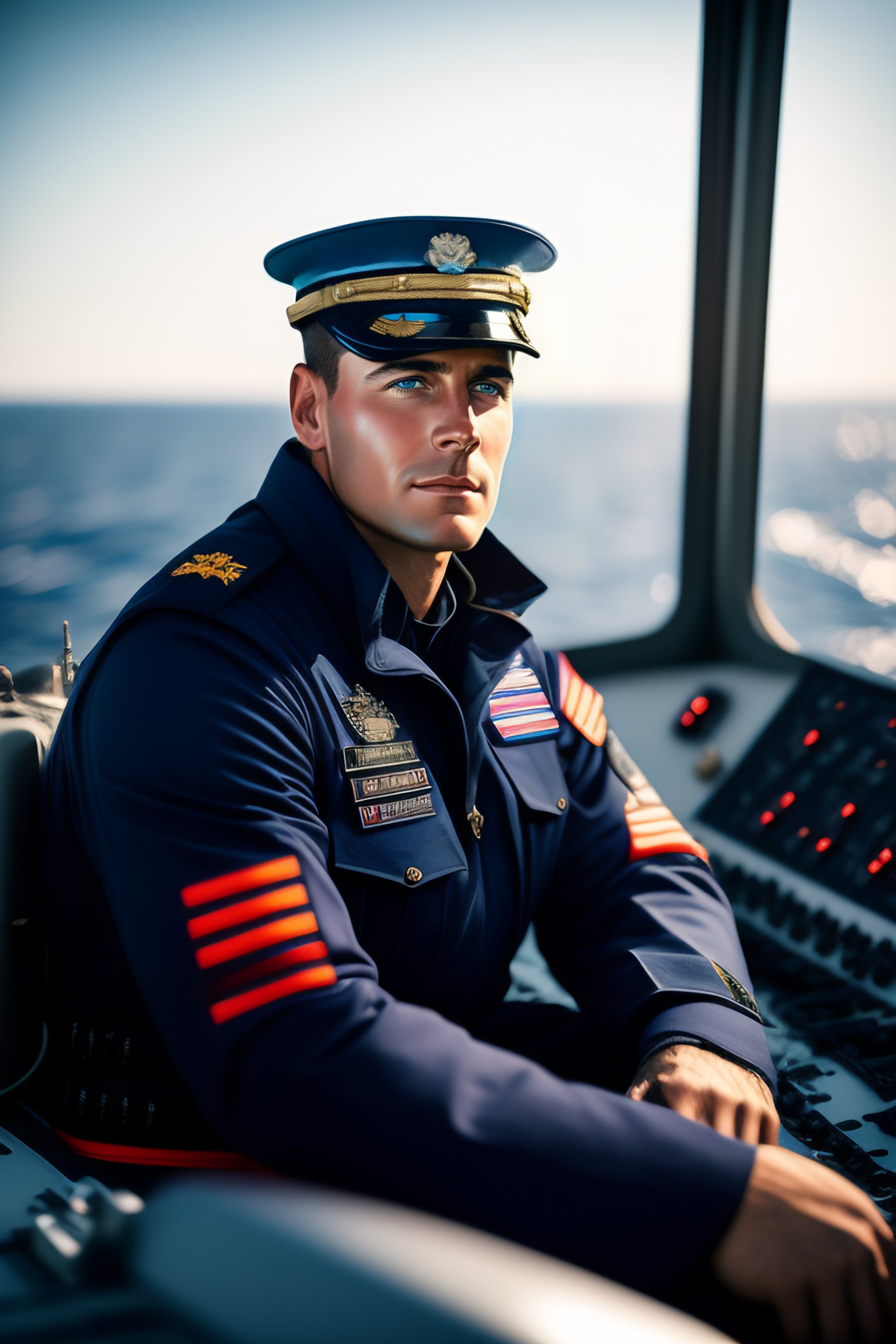 Portrait of a ship pilot on the bridgewing of a navy destroyer