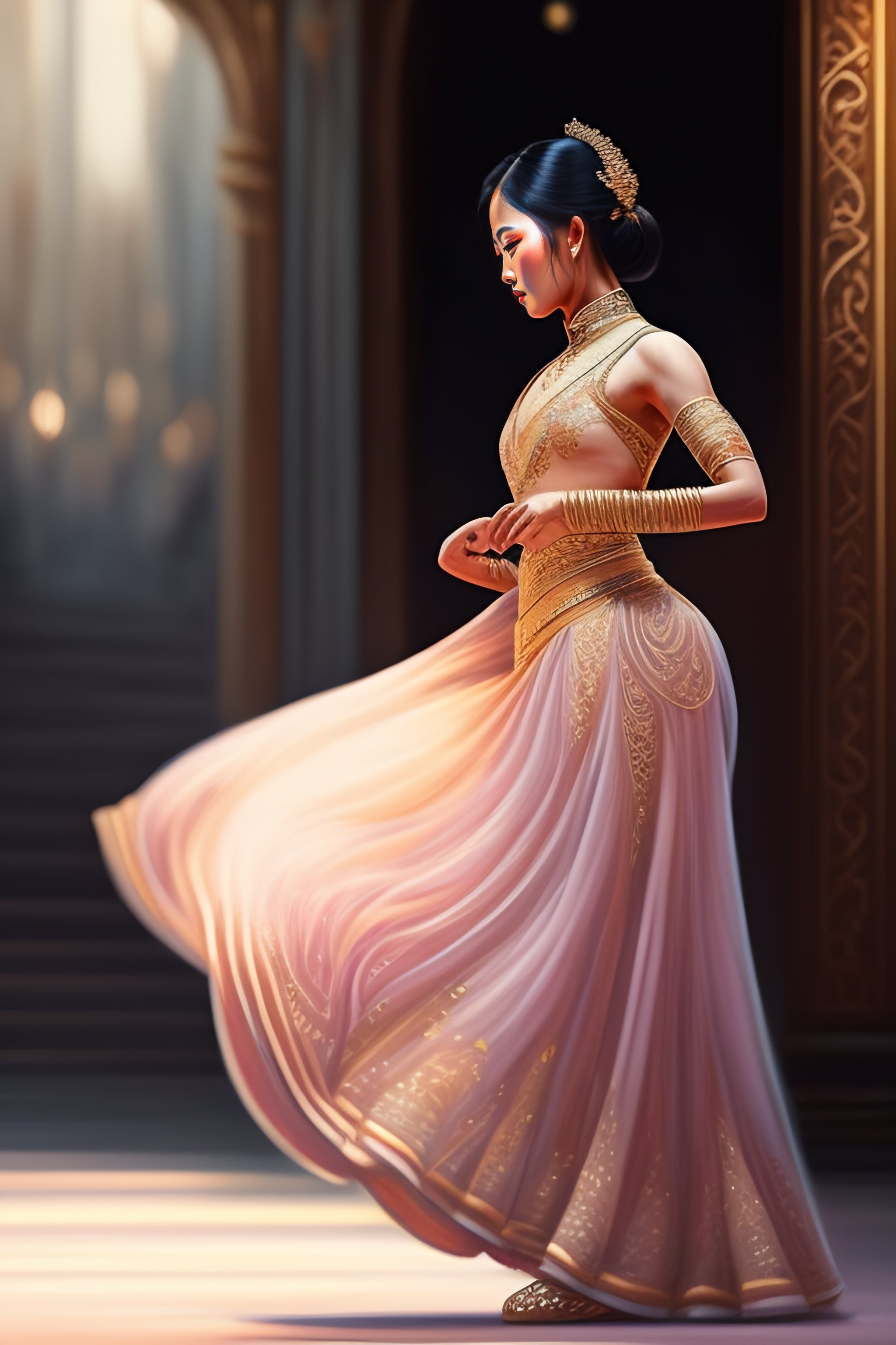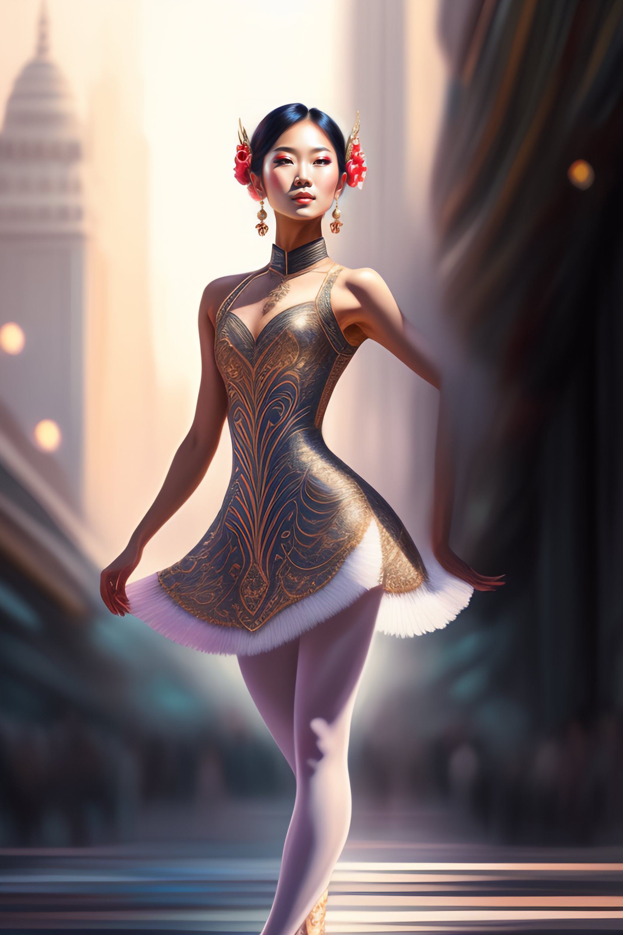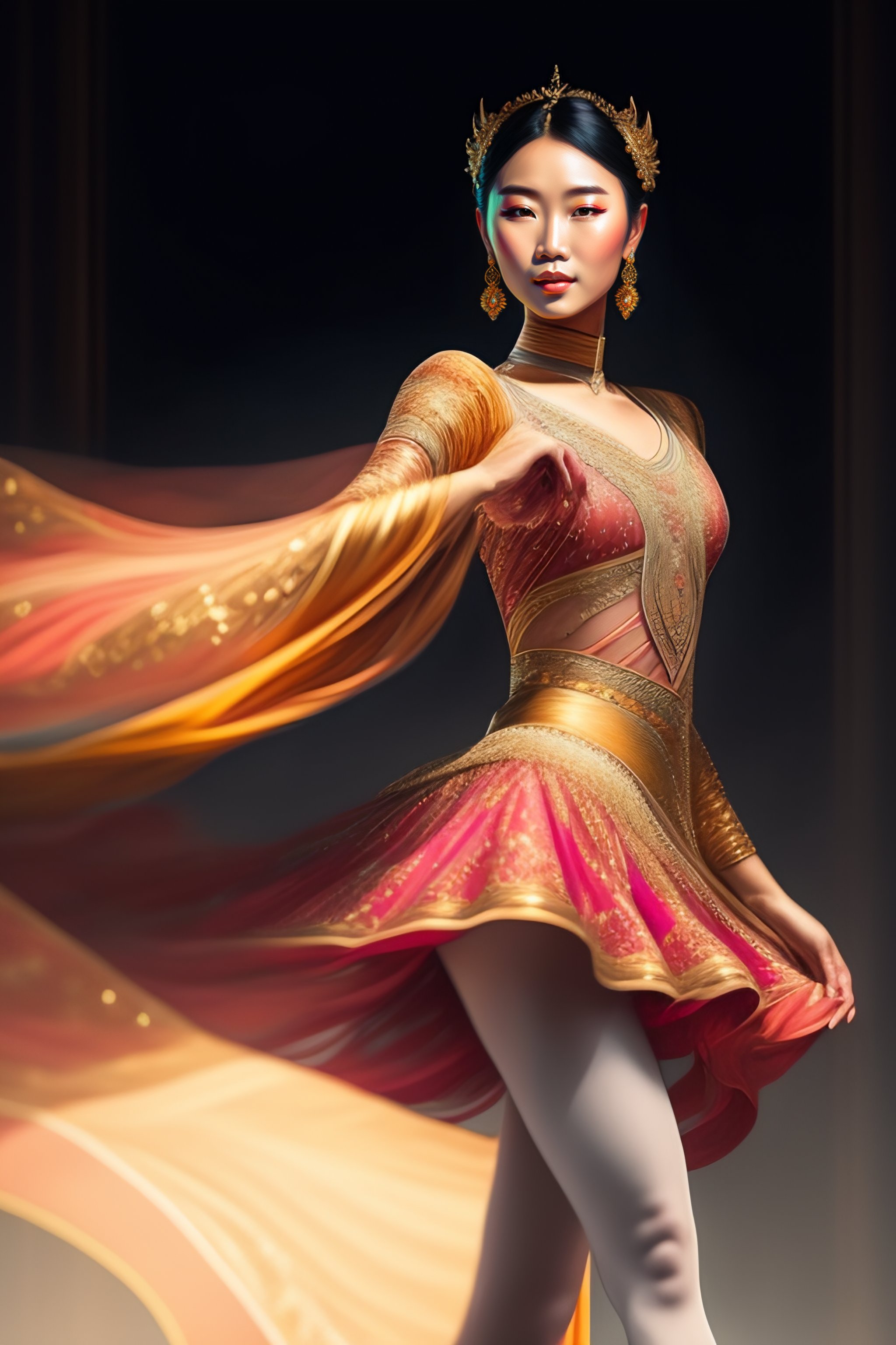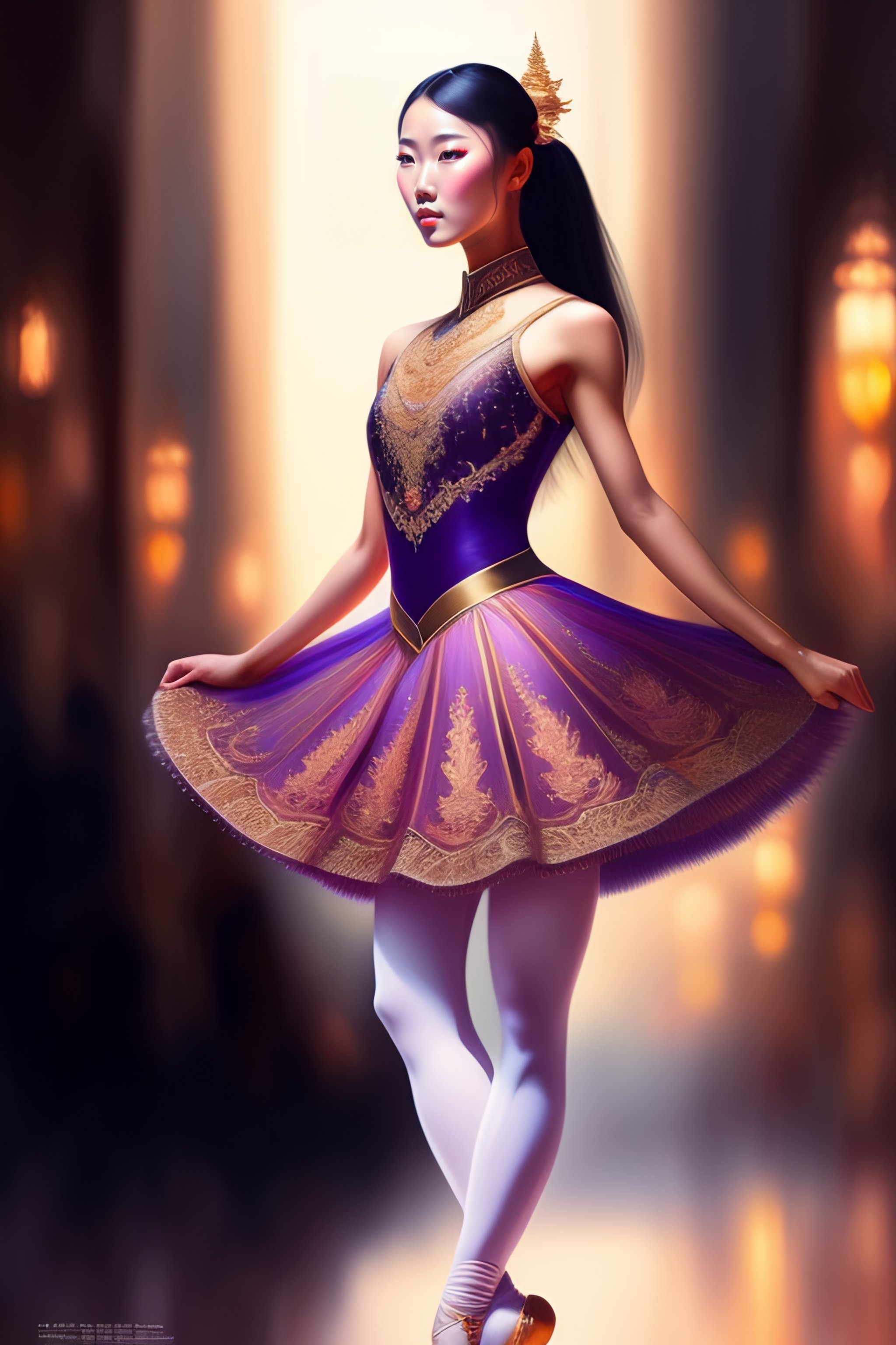 Asian ballet dancer woman alone on a big stage, full body, intricate, elegant, highly detailed, digital painting, concept art, smooth, sharp focus, illustration