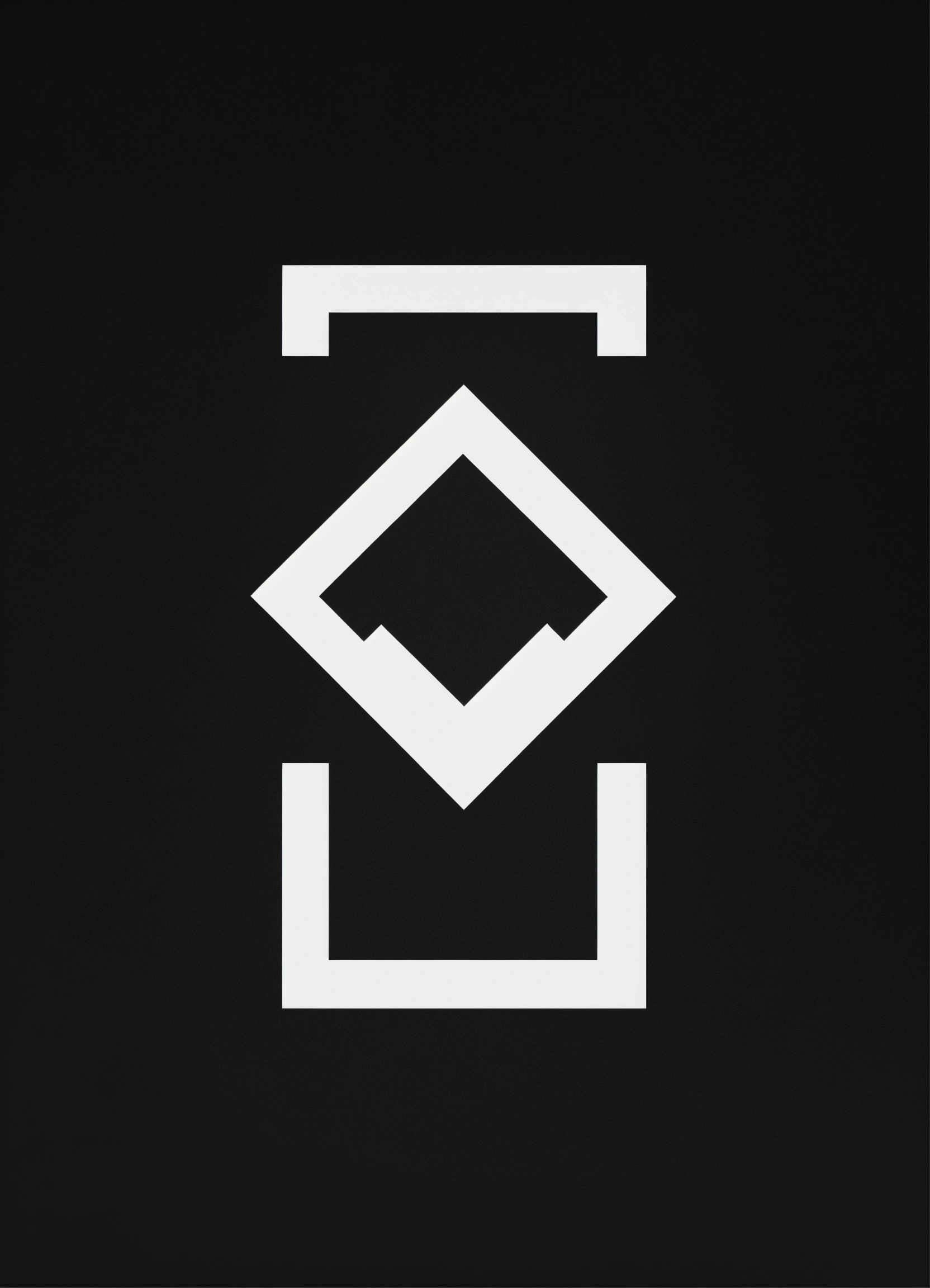 Logo for street wear brand, minimalist, all-white symbol, off-white-inspired, 4k, modern, 4k render, solid black background