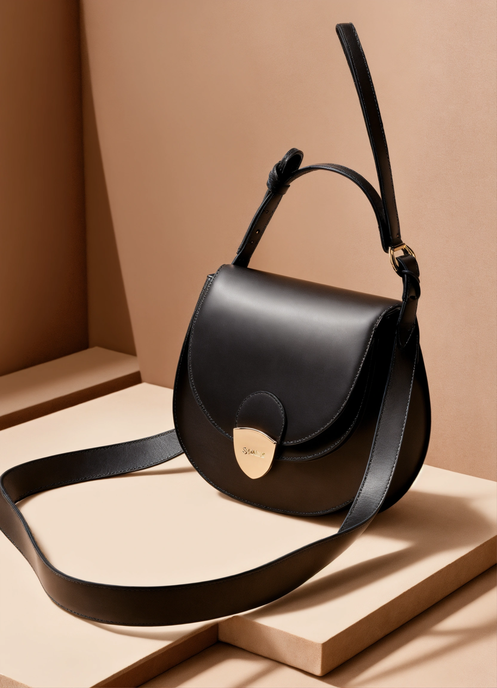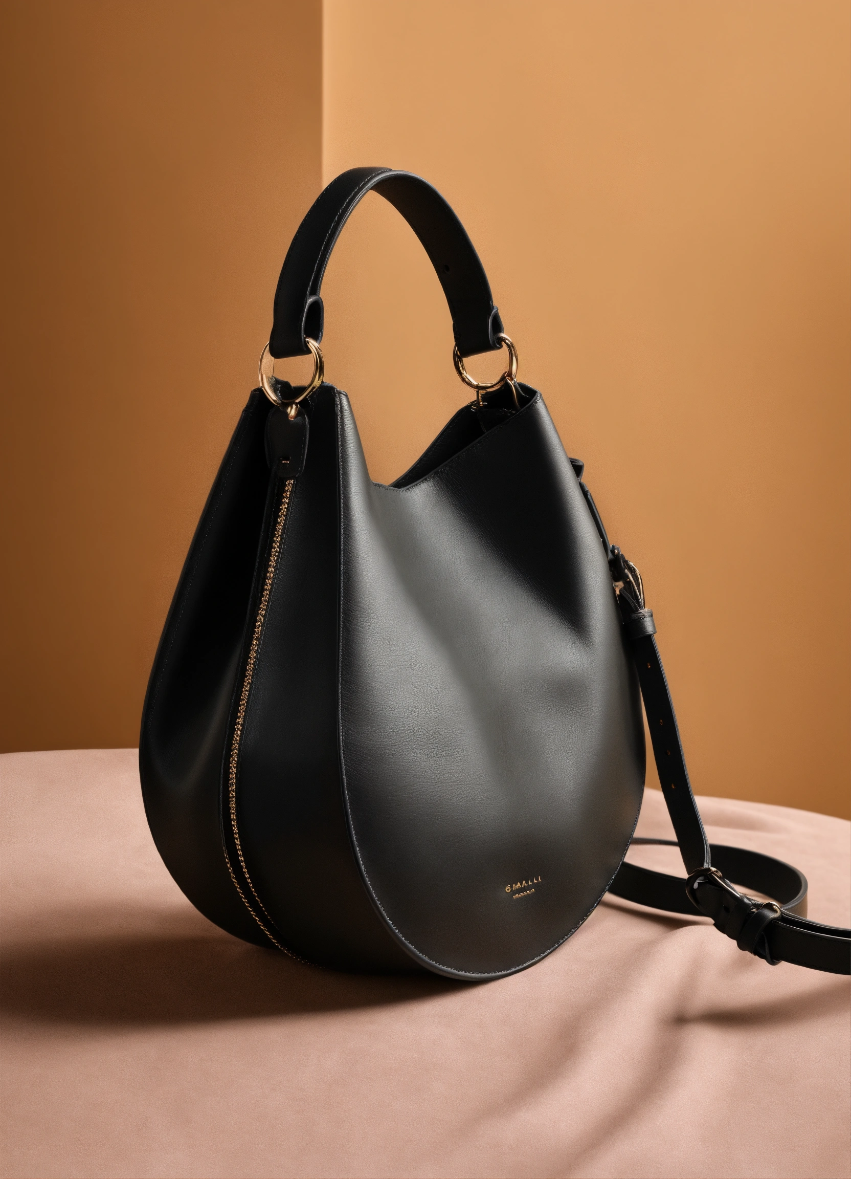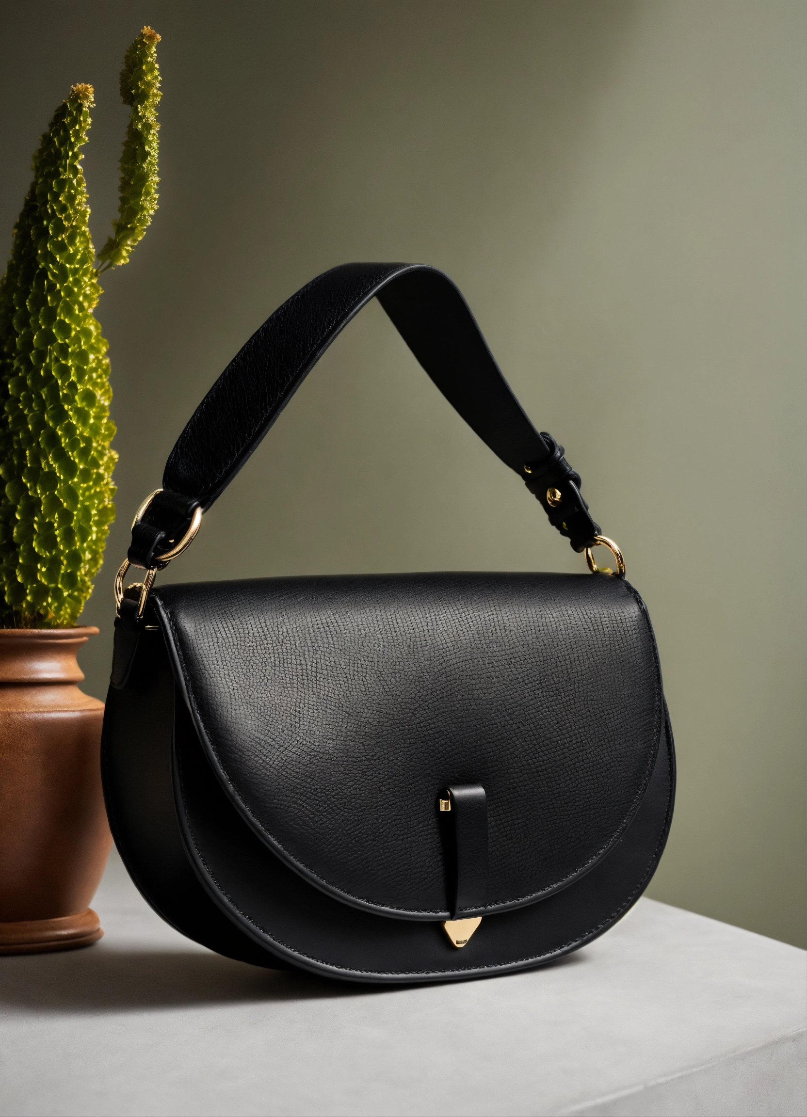 Un petit sac en cuir à grain noir en forme de croissant bien conçu