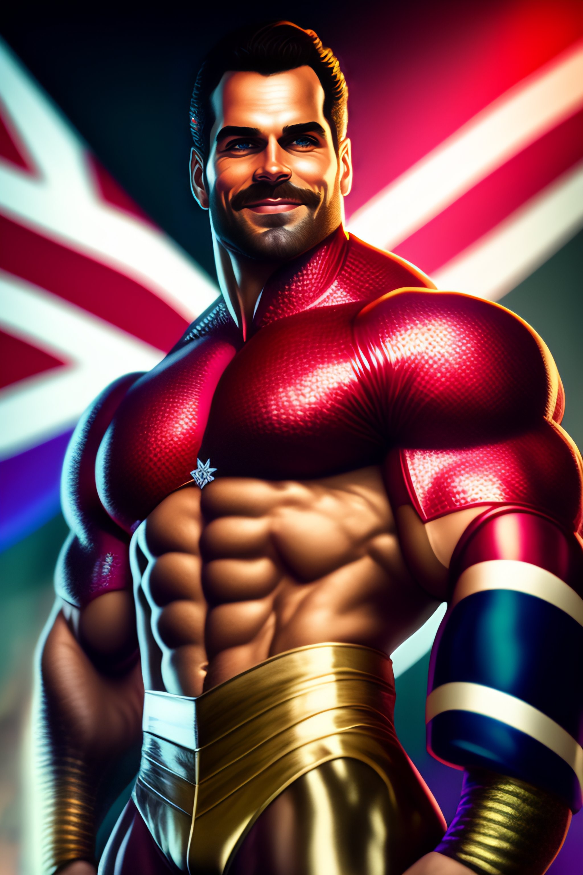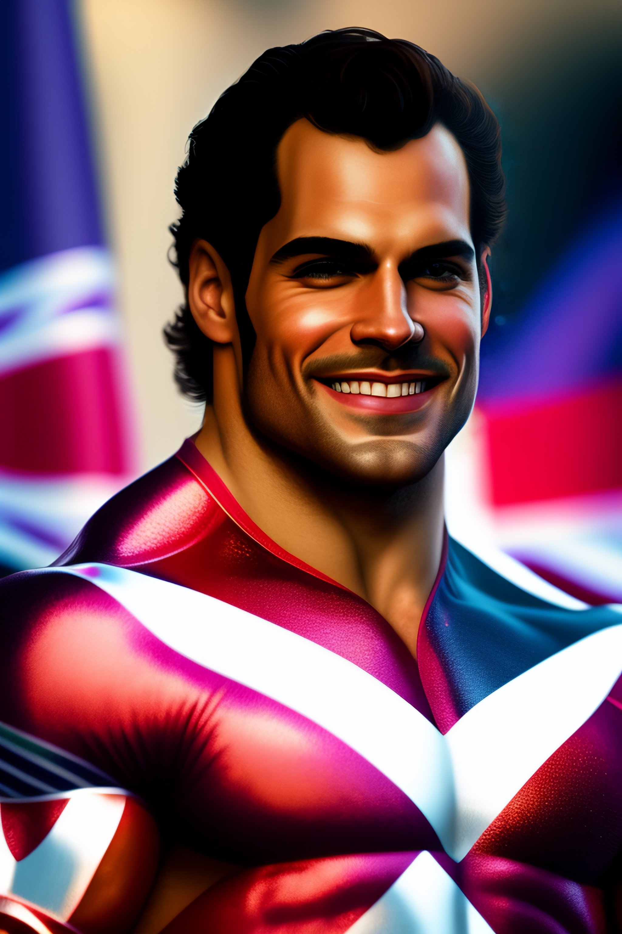 Epic comic book cover, accurate hyper realistic happy smiling (((((henry cavill))))) as hairy muscular bodybuilder superhero captain britain posing like a male model, wearing a glossy metallic intricate patriotic british superhero costume with short sleeves and union jack on the chest, slight smile, cleft chin, dark hair, british iconography and heraldry, london city at night in the background. in the background, insane detail, intricate, 8k, sharp focus, cinematic, artstation, dlsr photography, photo by bruce weber photography
