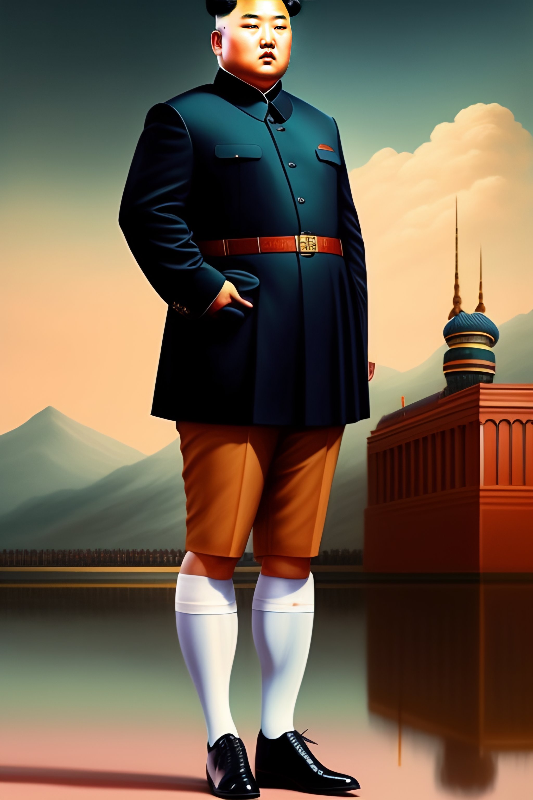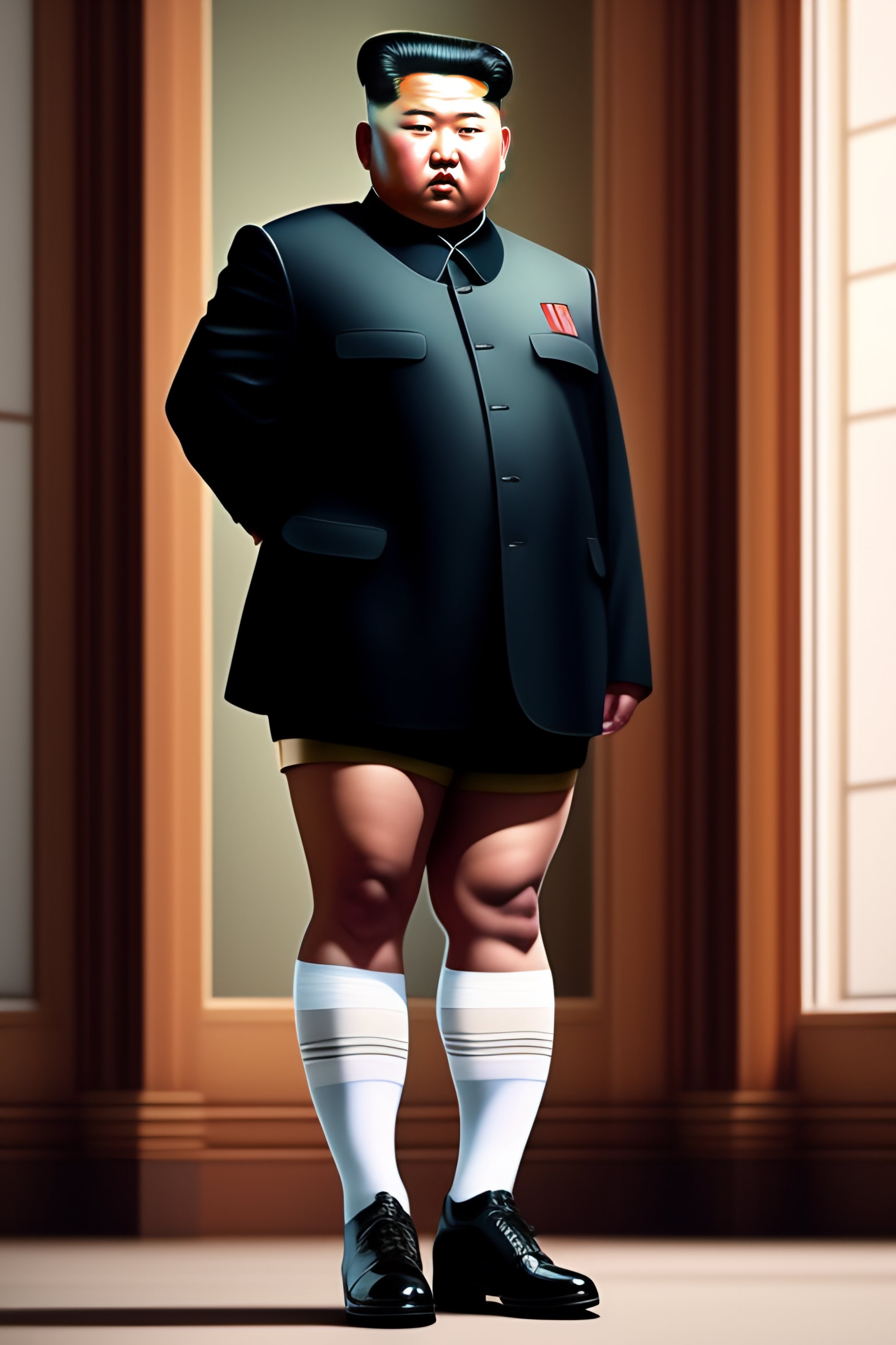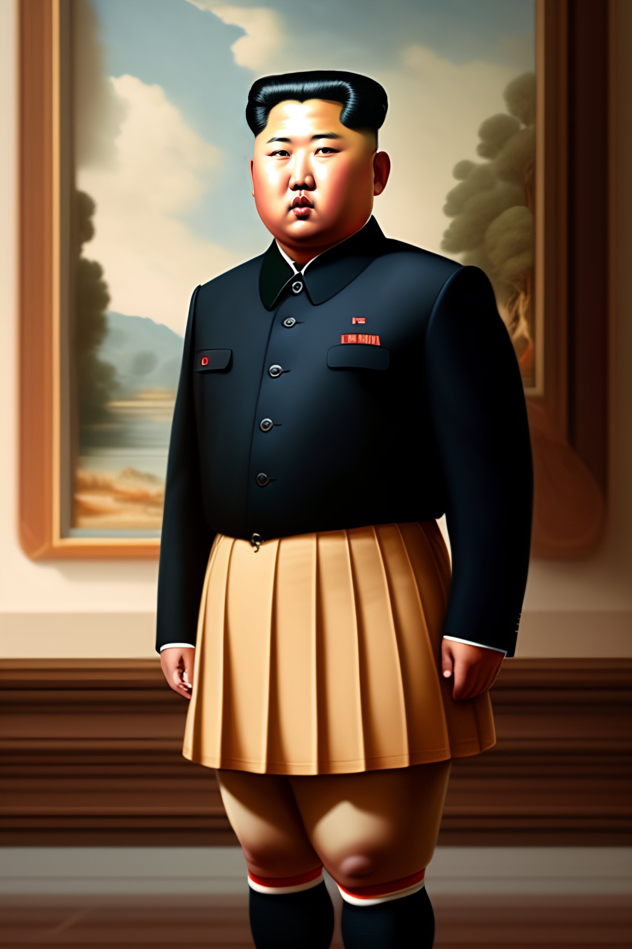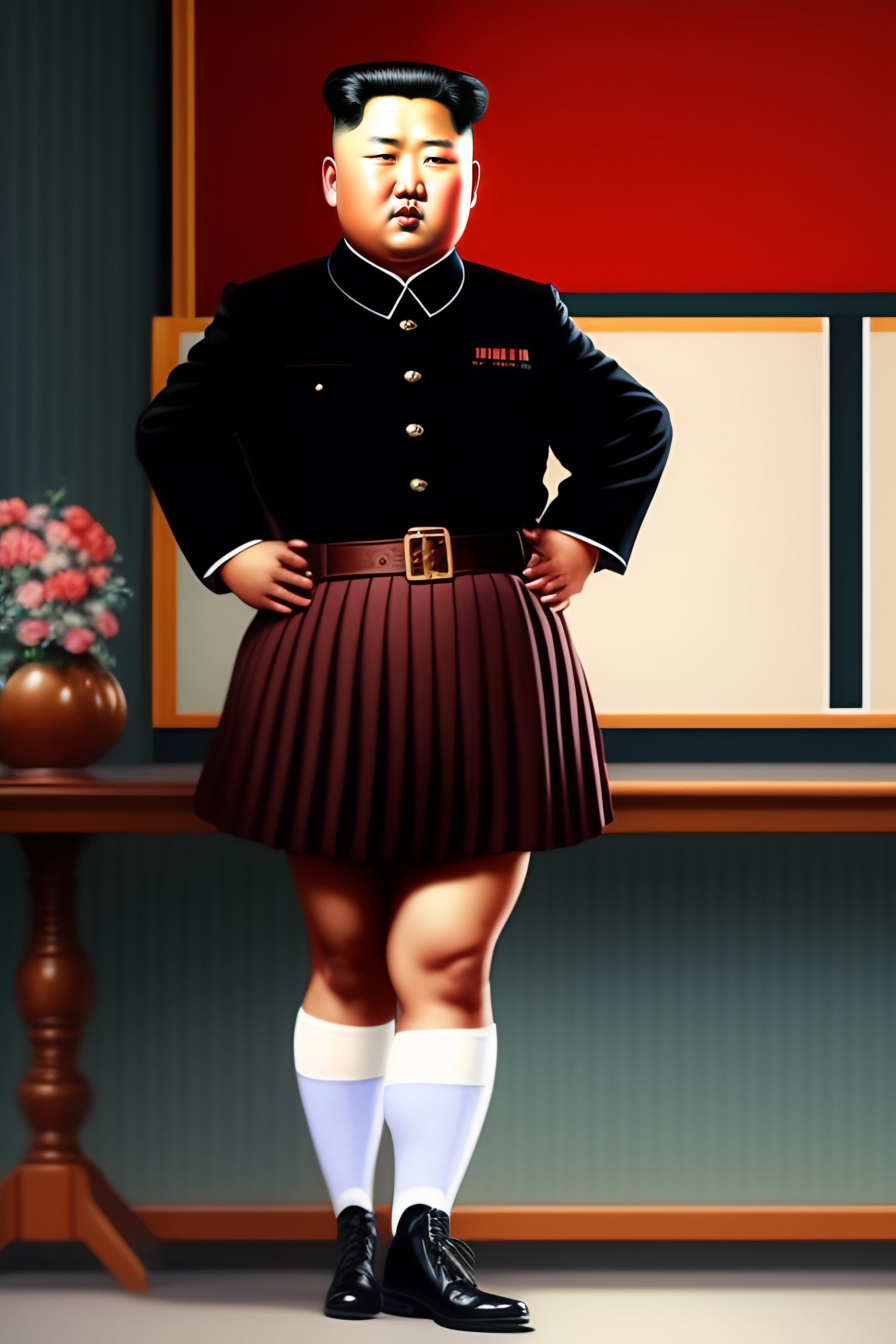 Kim jong - un, school uniform, seifuku, pleated miniskirt, overknee socks. by rembrandt 1 6 6 7, illustration