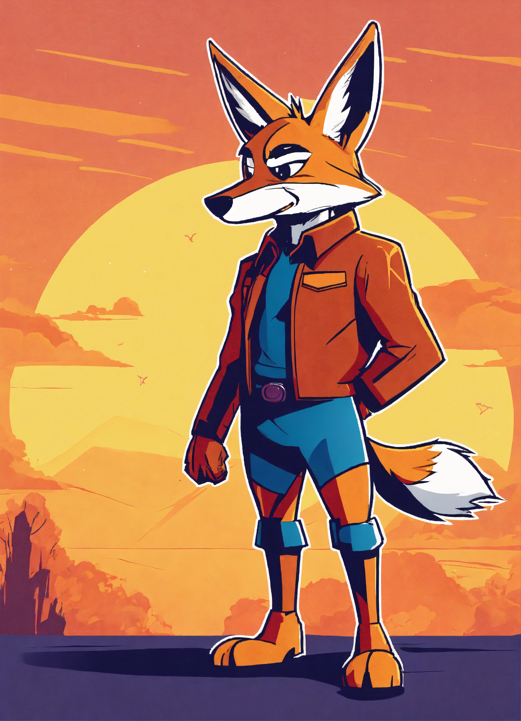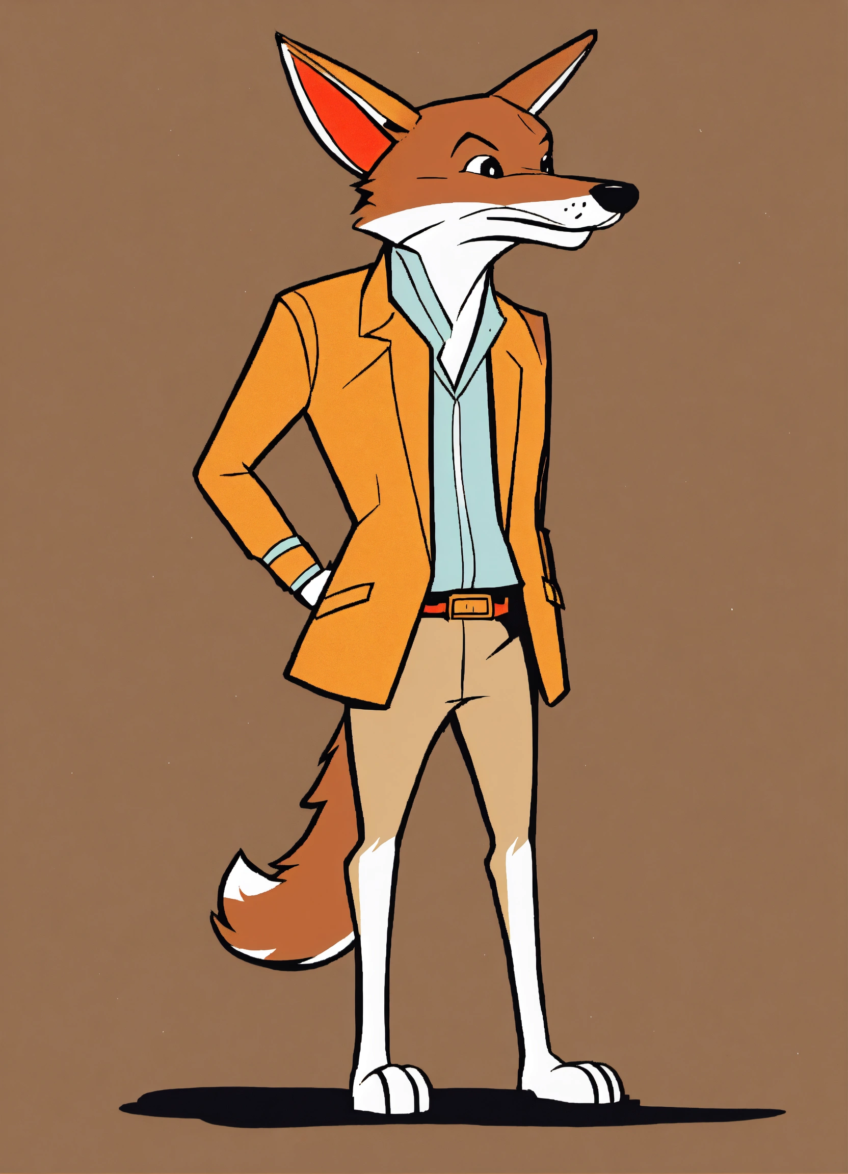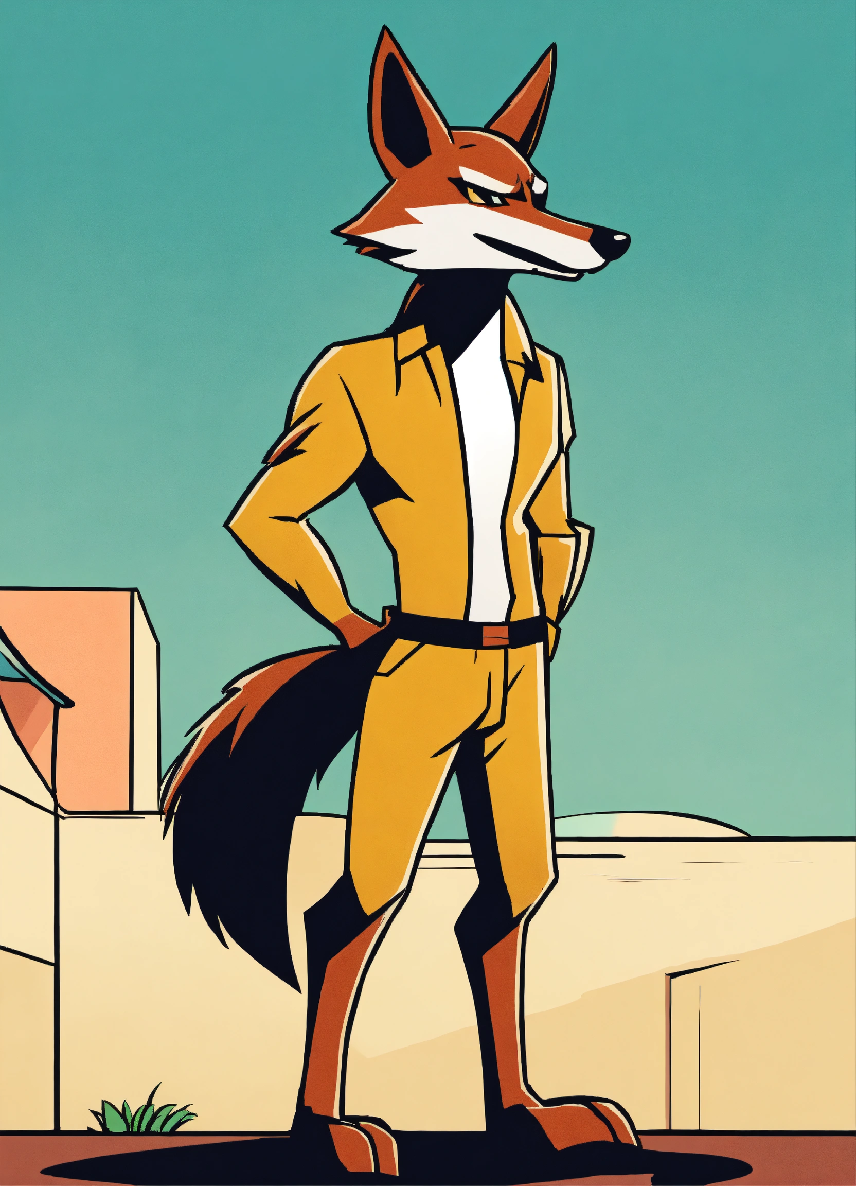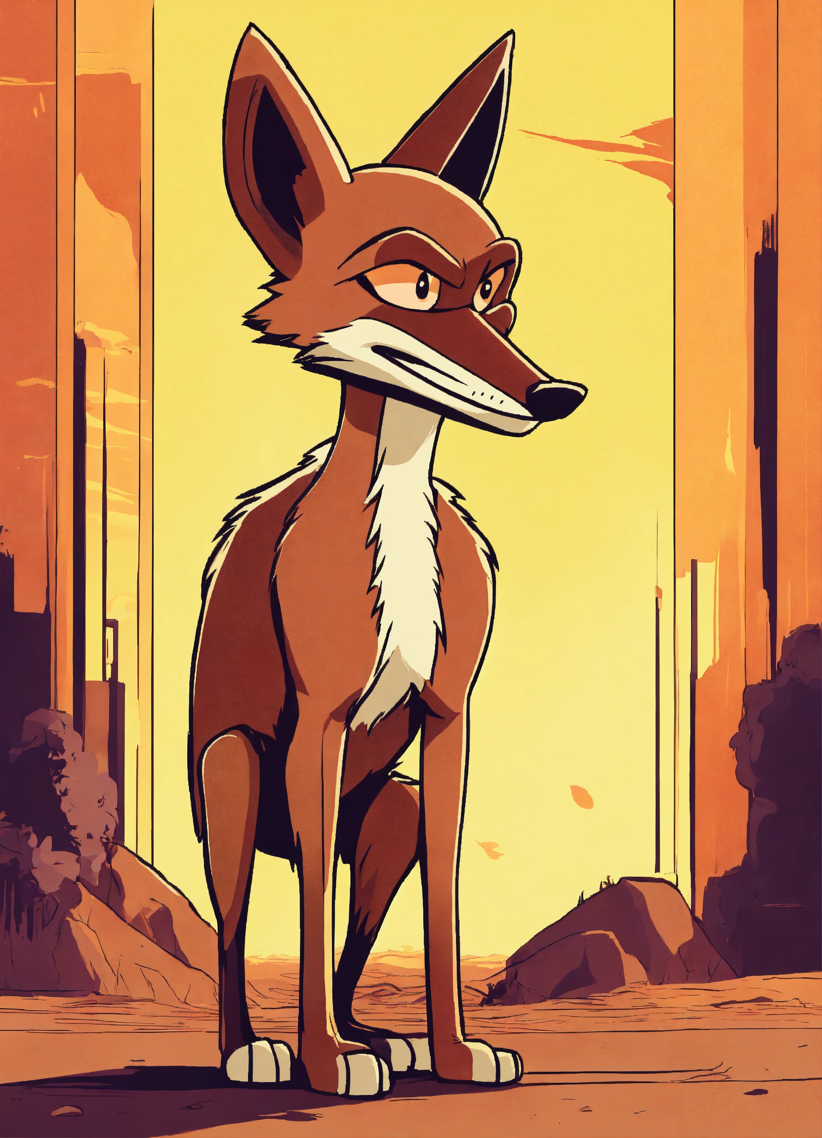 Make a cute simple coyote like a comic book from the 80s, looney tunes style, standing in two legs, minimalistic