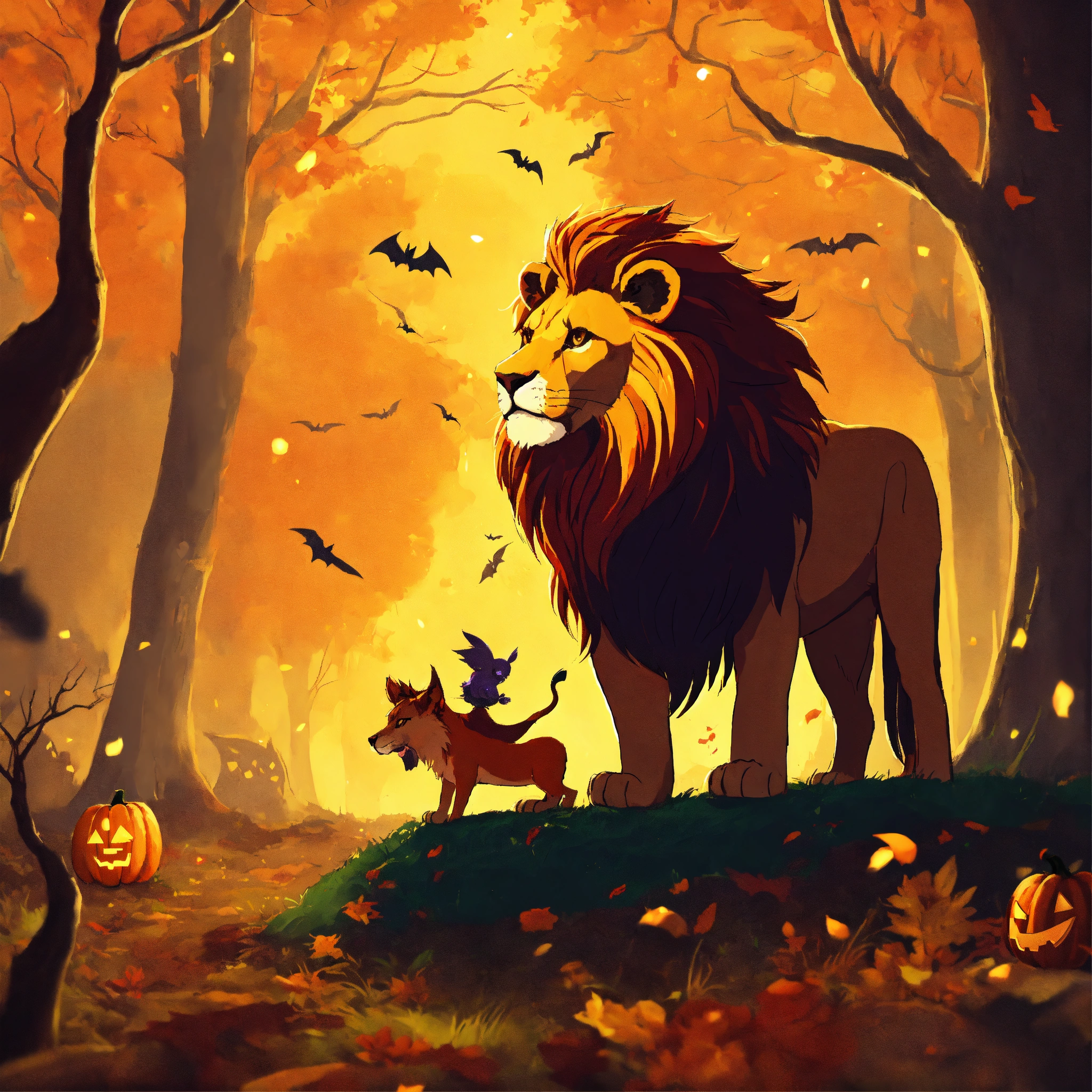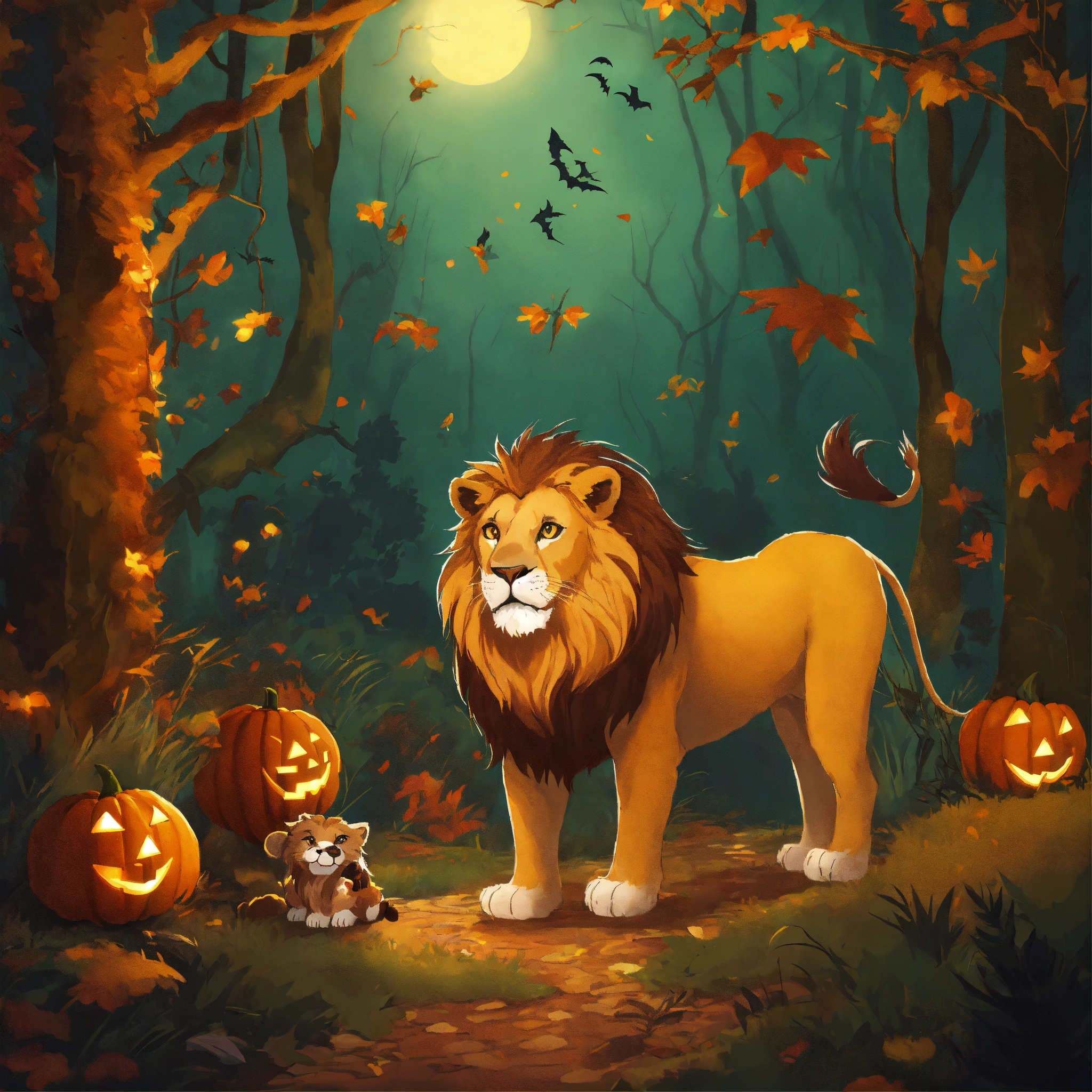On halloween night, when the forest was still, leo the lion's bravery and might made all animals safe