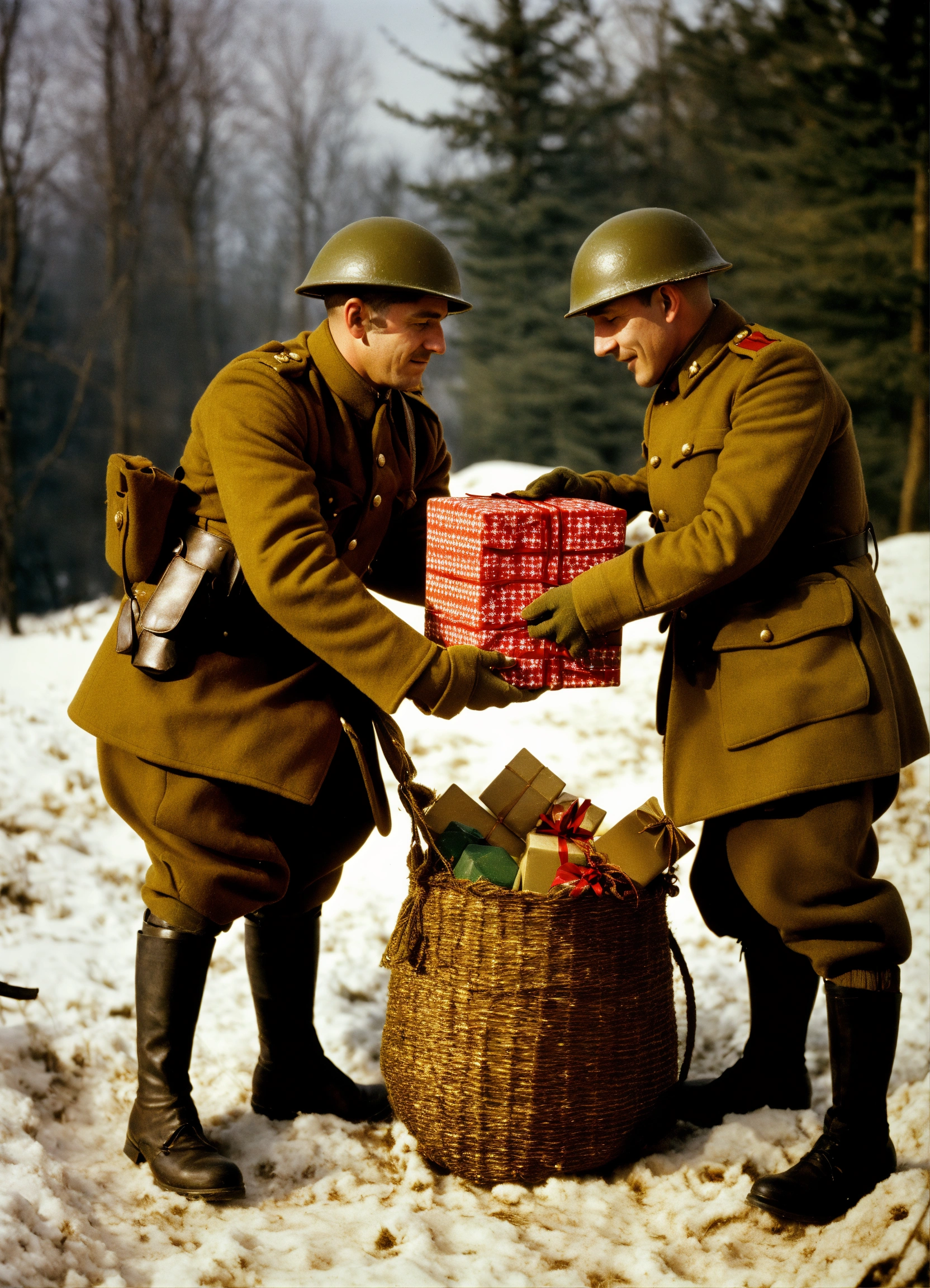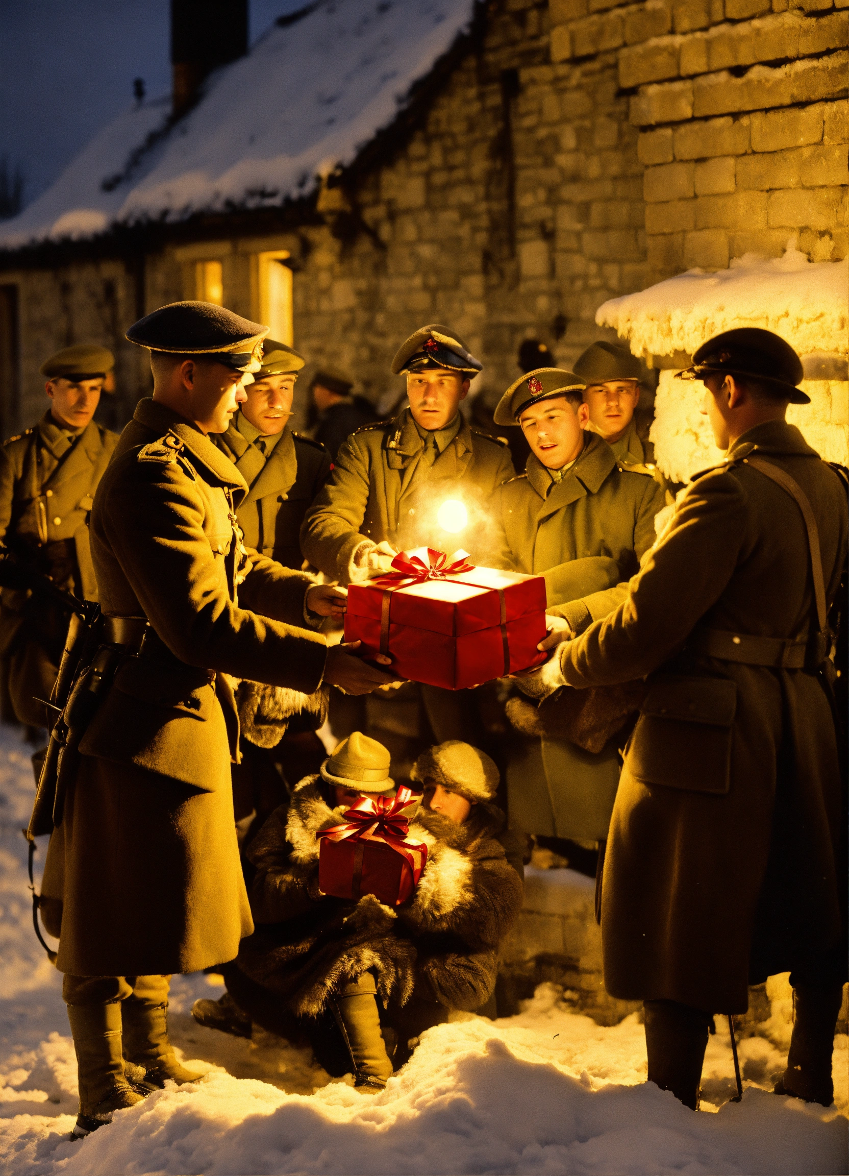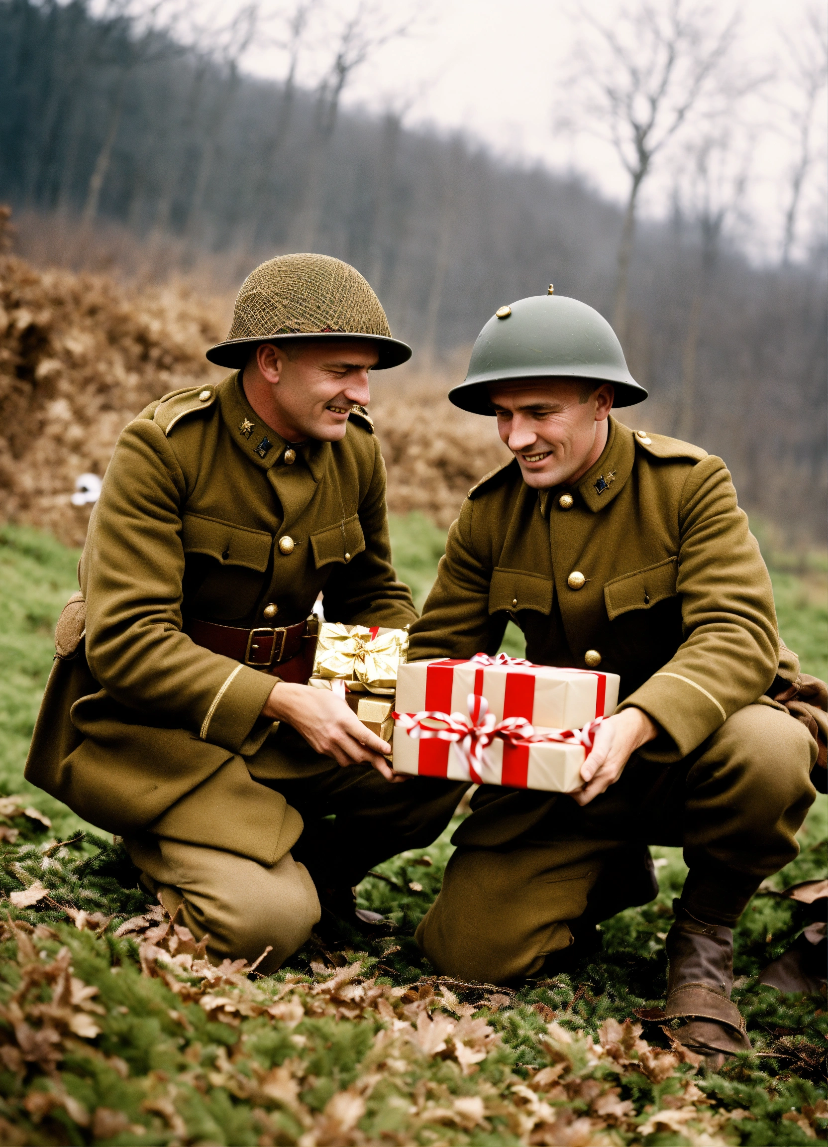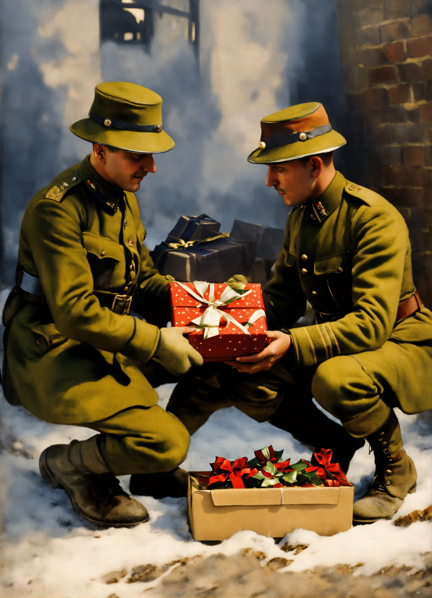 Ww1 soldiers giving gifts to the enemy during a christmas ceasefire