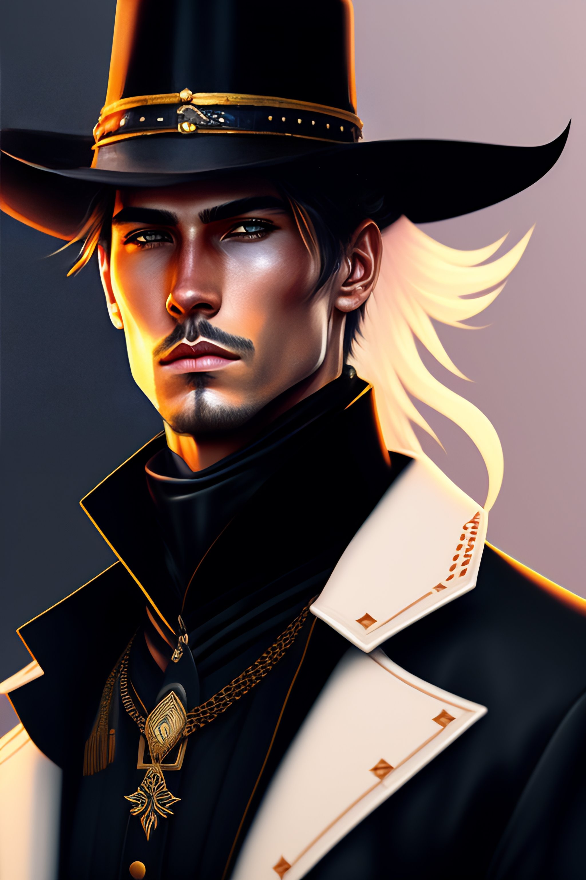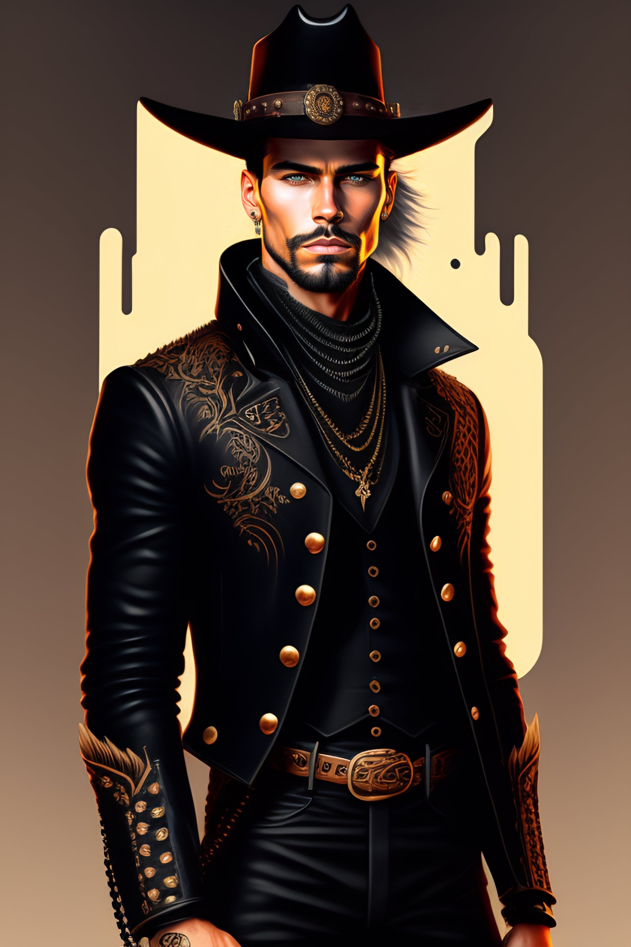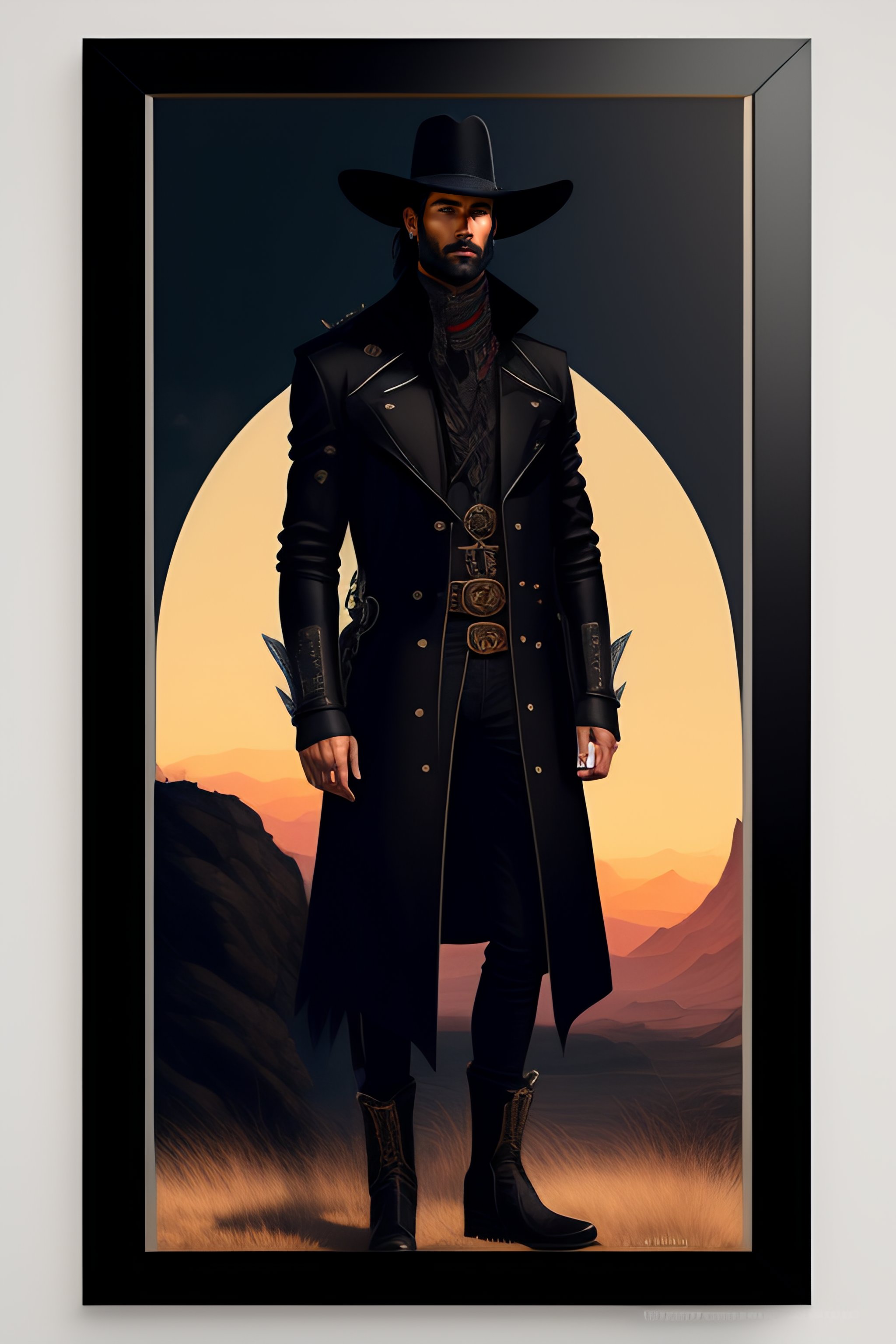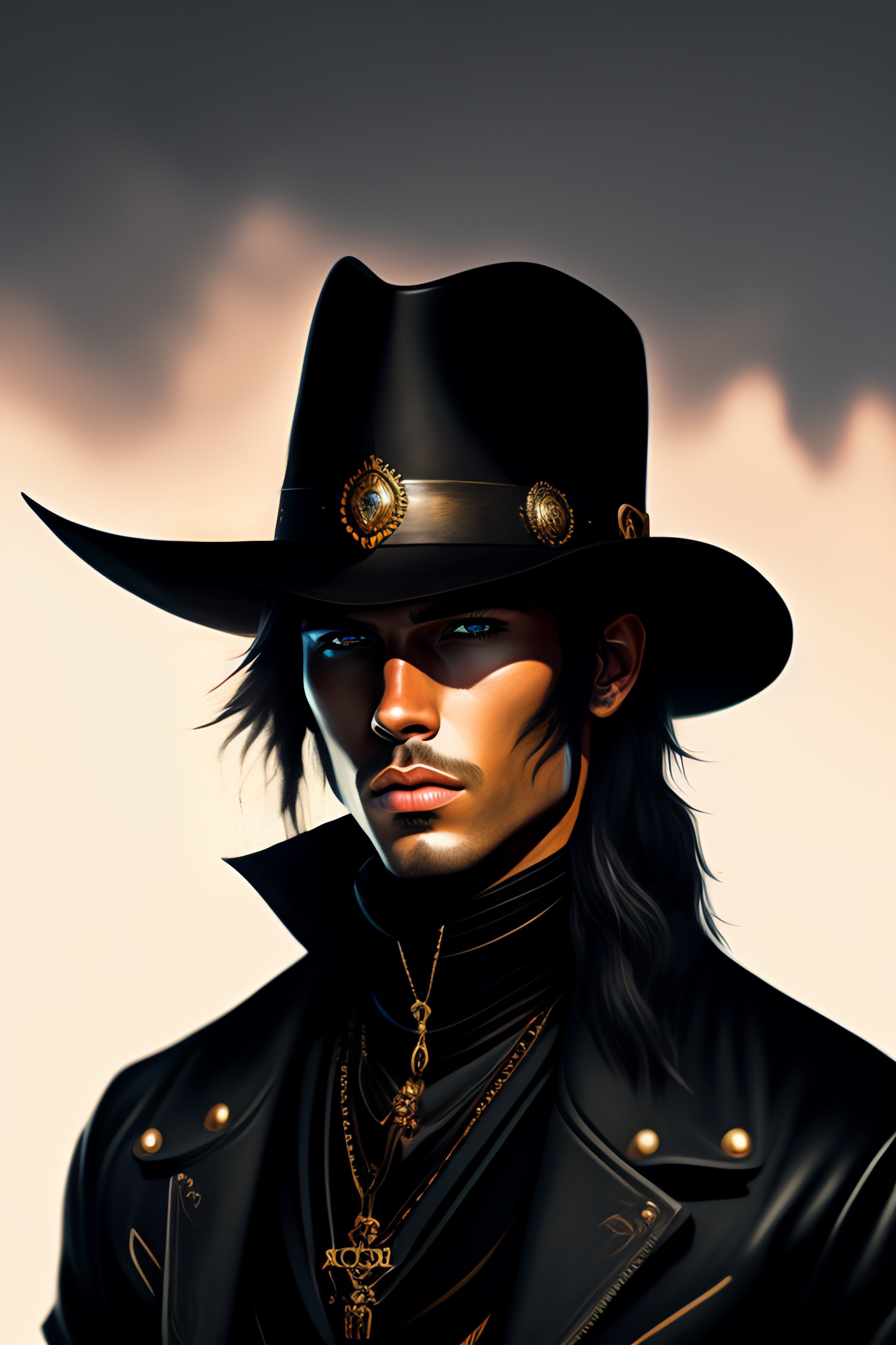 Wild west portrait of a gunslinger man in black streetwear, wearing black modern clothes, inspired by mononoke and pixar illustration, stylised clothes, fashion illustration, anime key visual