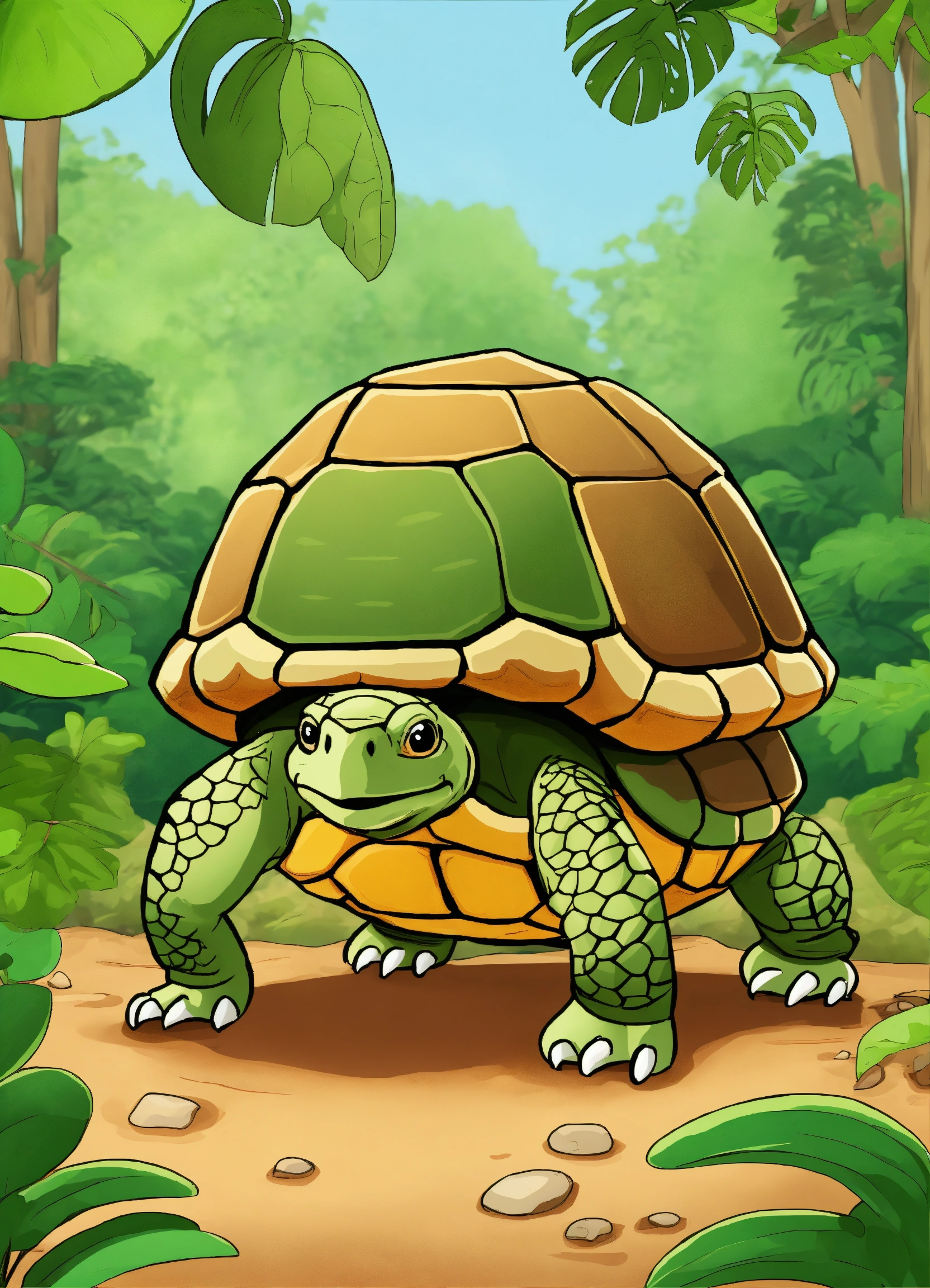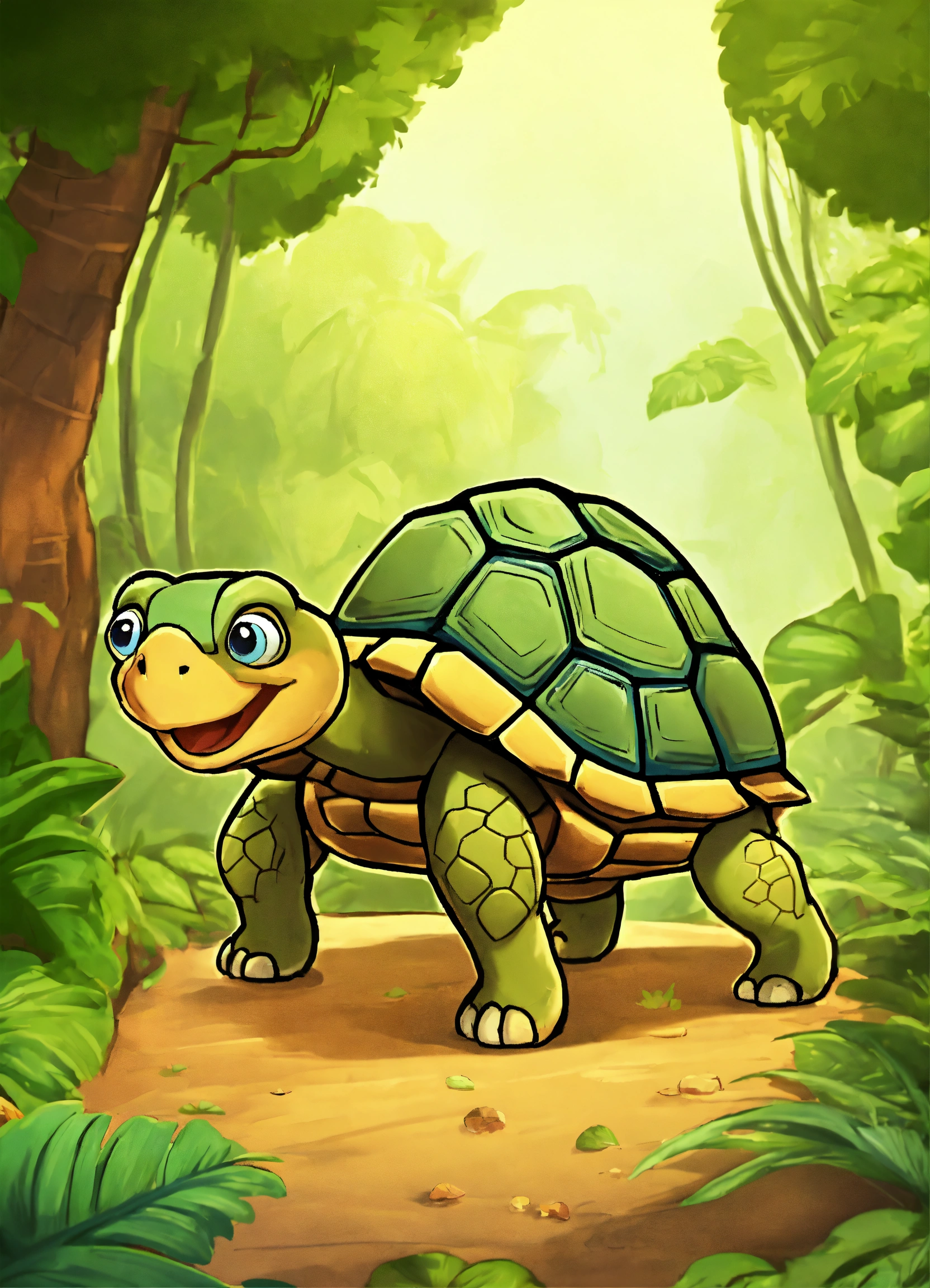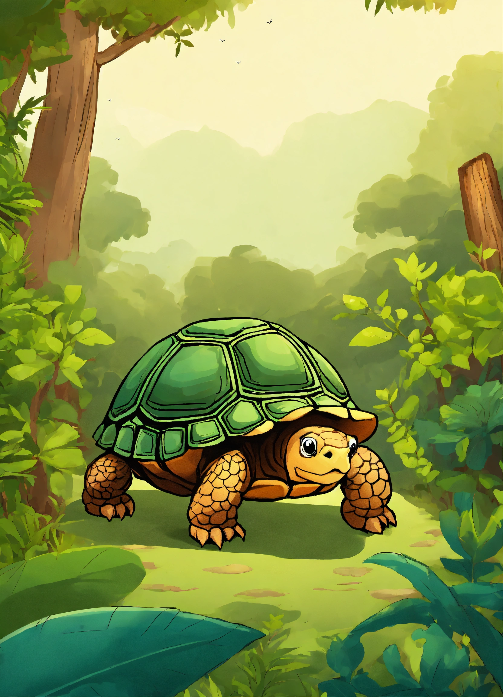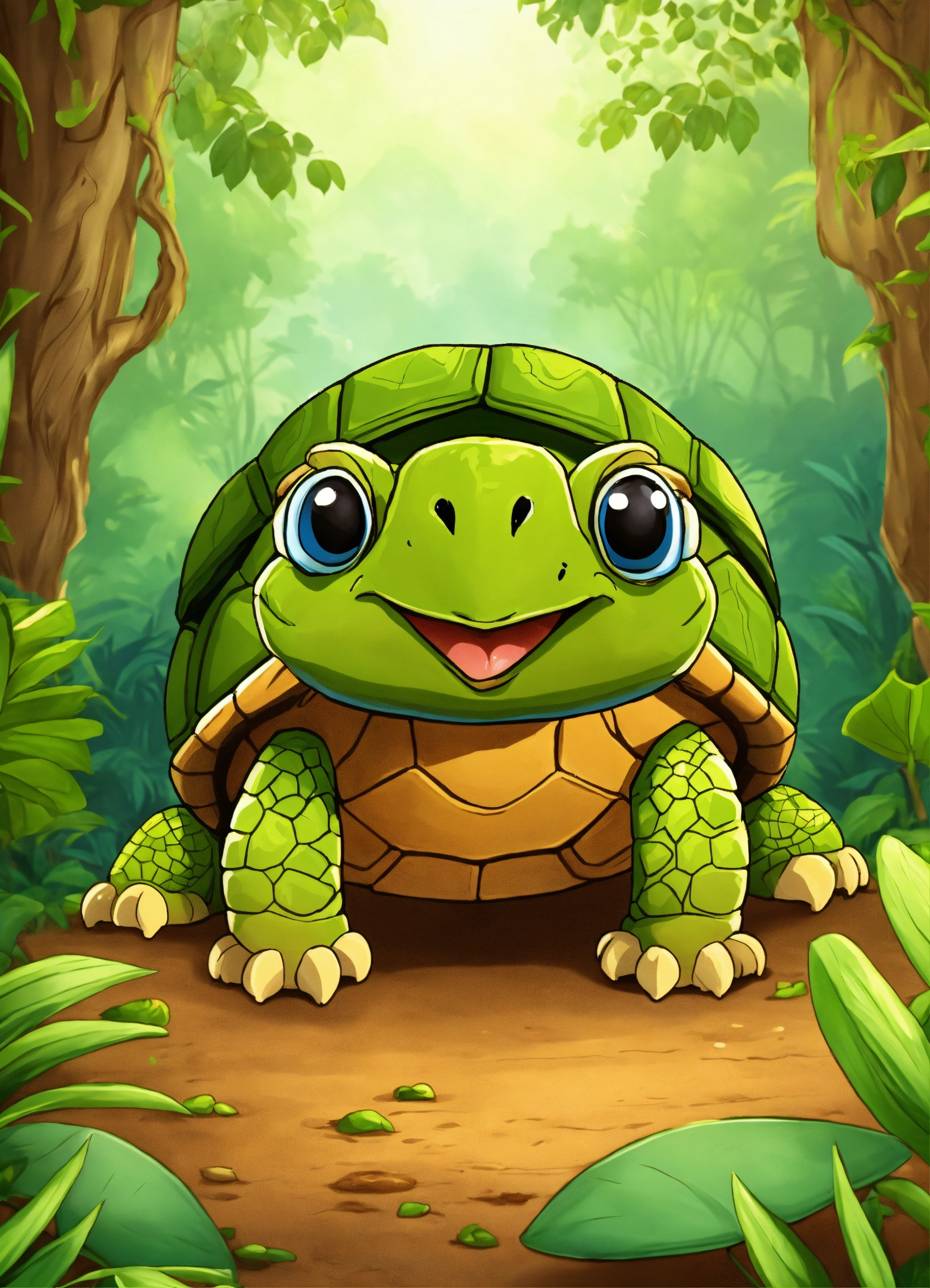 Cartoon single tortoise stand on his back two legs and watching happily in jungle
