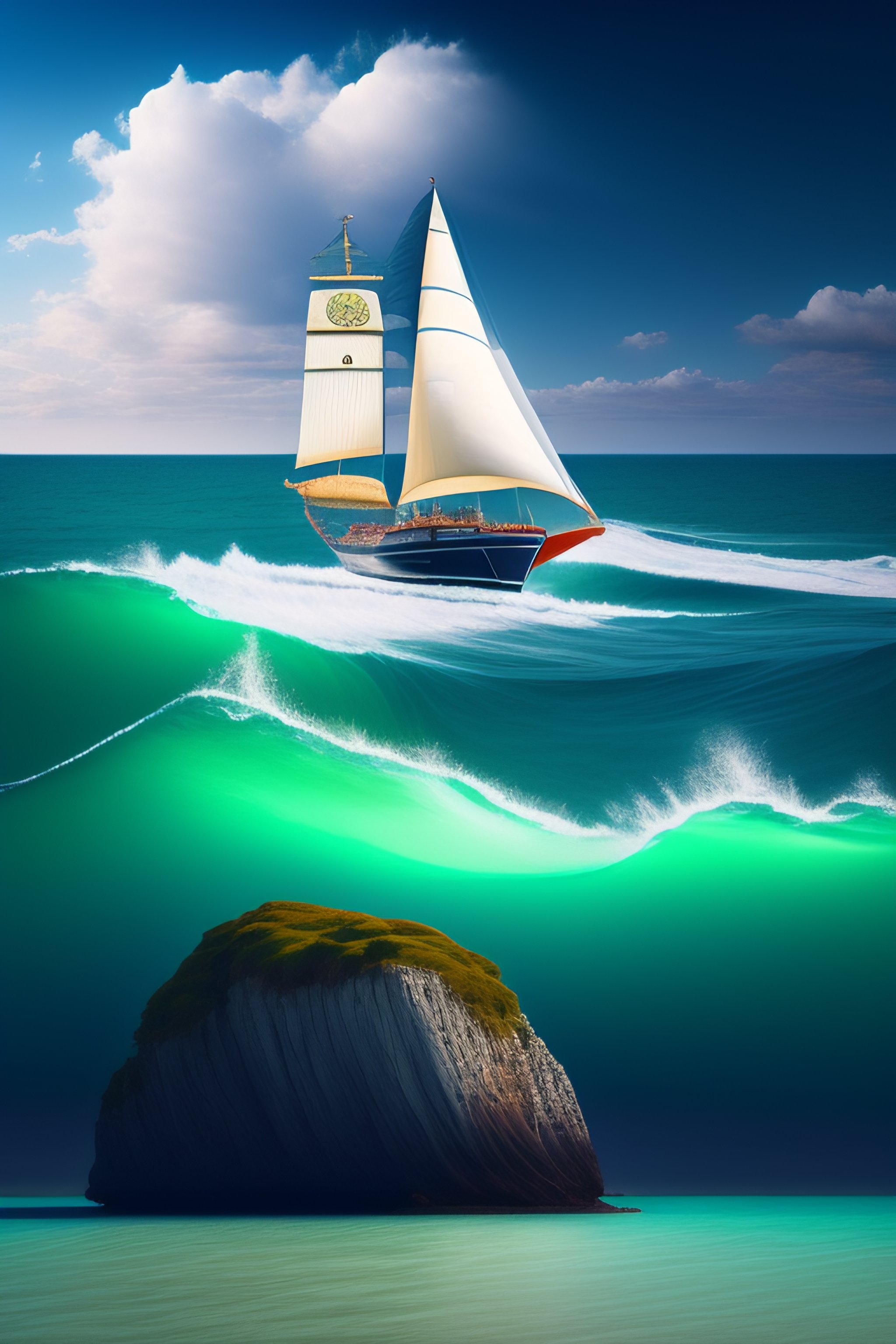 A big sailboat in the sea