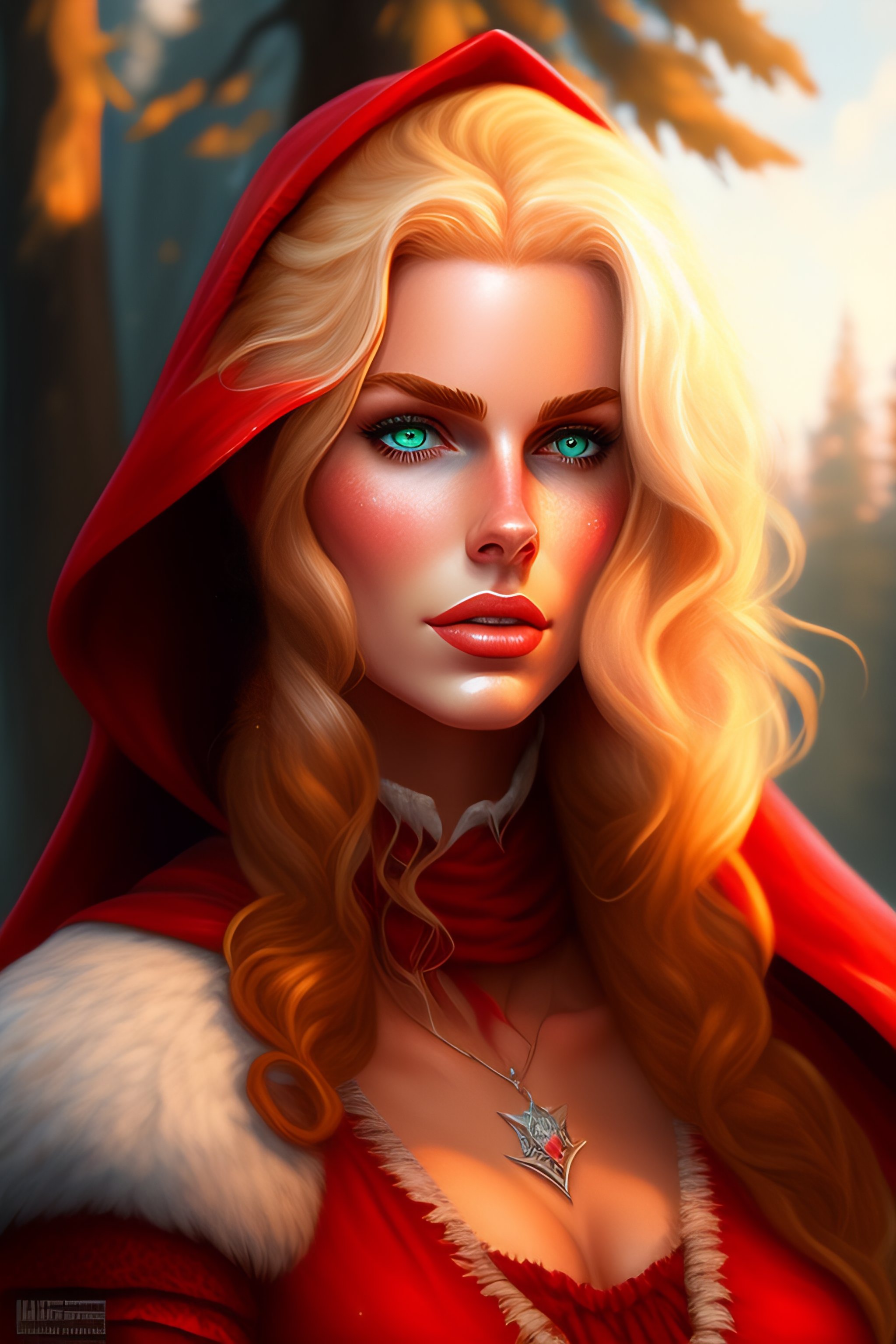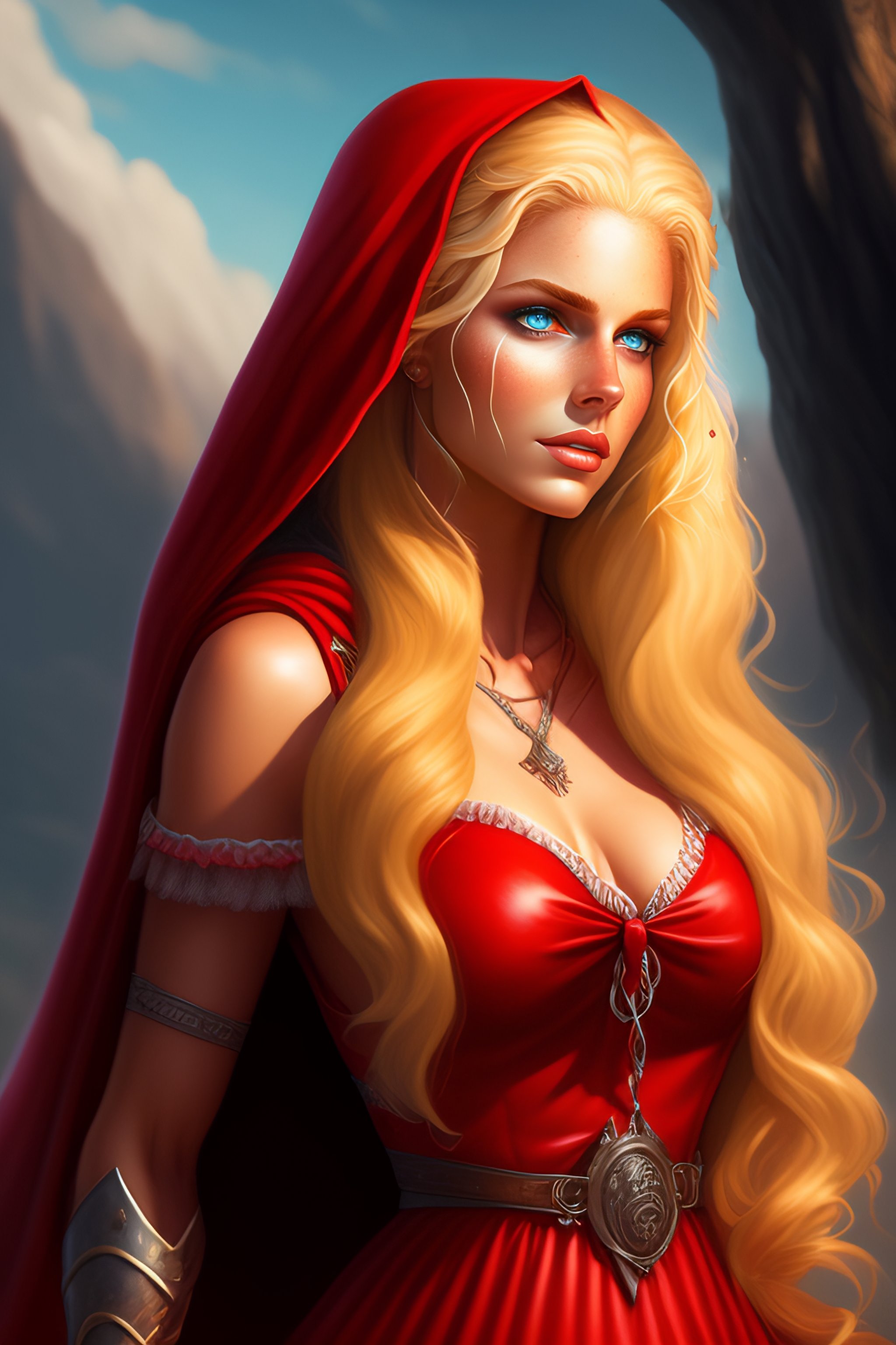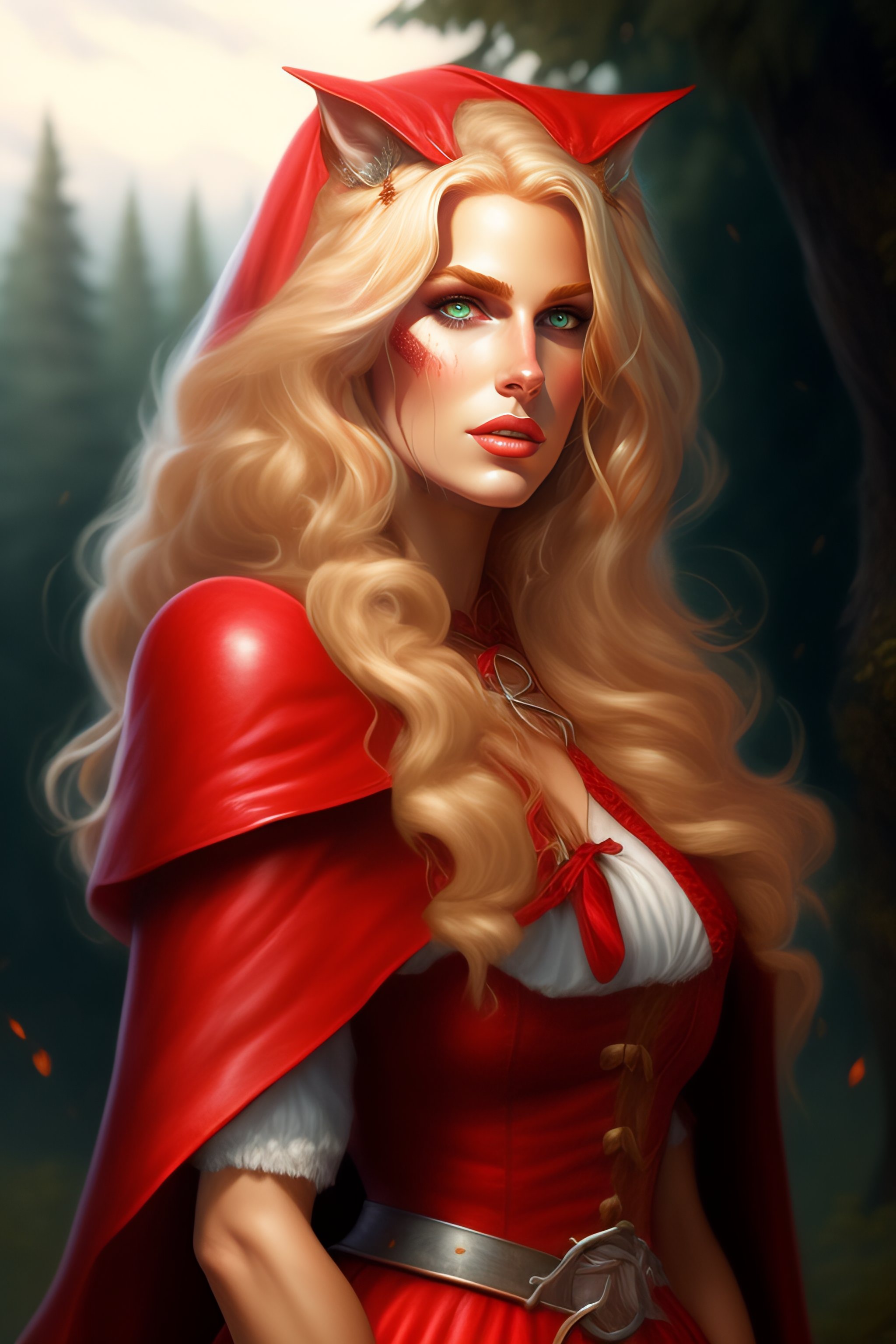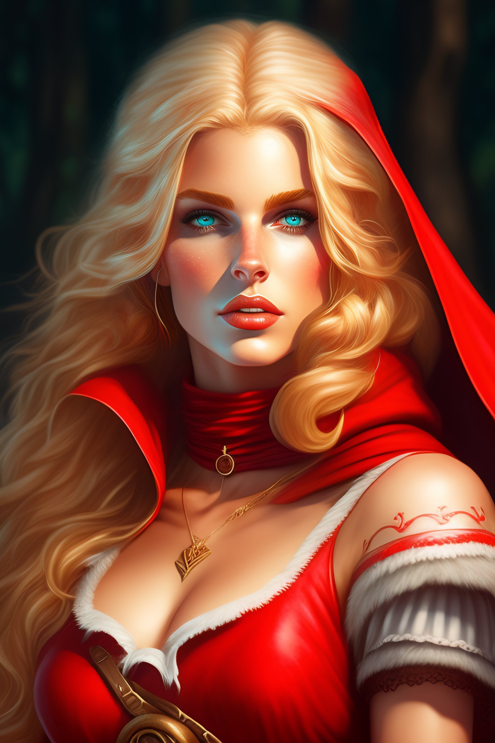 Goddess little red riding hood, blonde hair, ( wolf tattoo:1.3), d & d, fantasy, portrait, highly detailed, headshot, digital painting, trending on artstation, concept art, sharp focus, illustration, art by artgerm and greg rutkowski and magali villeneuve
