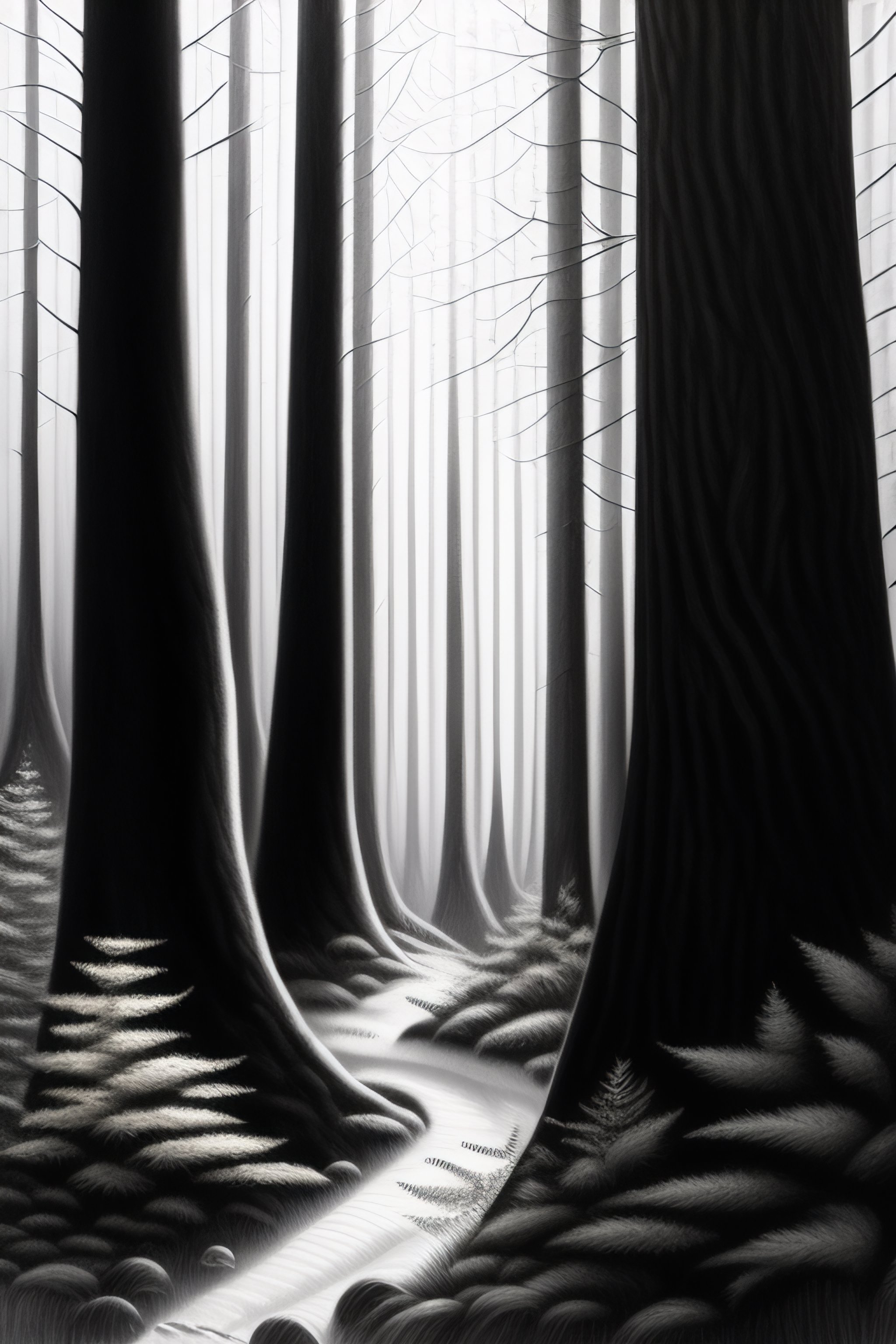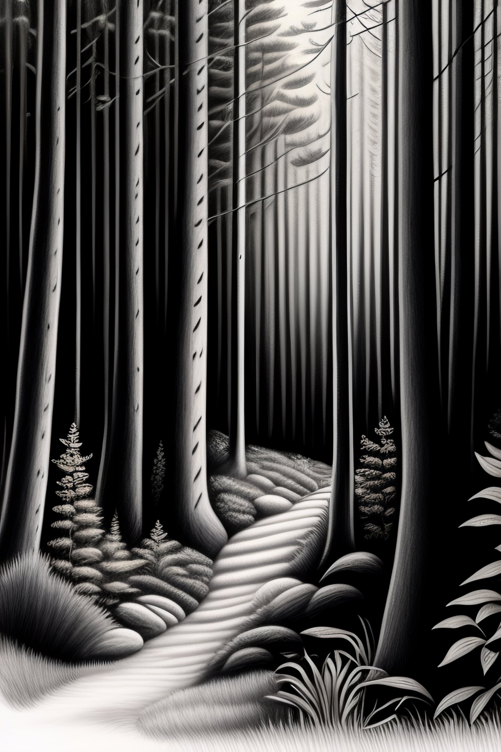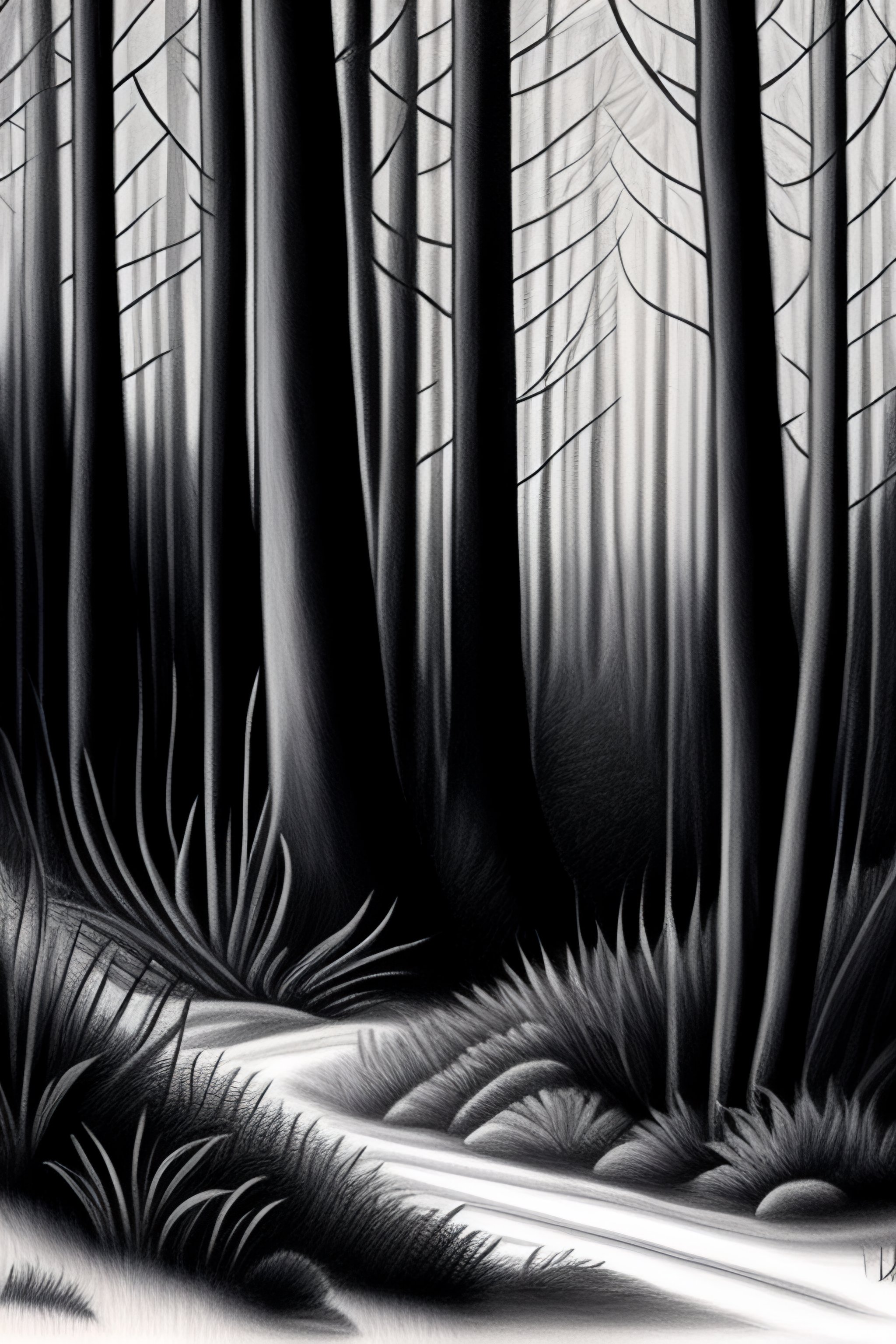 Drawing of a forest with dense leafes