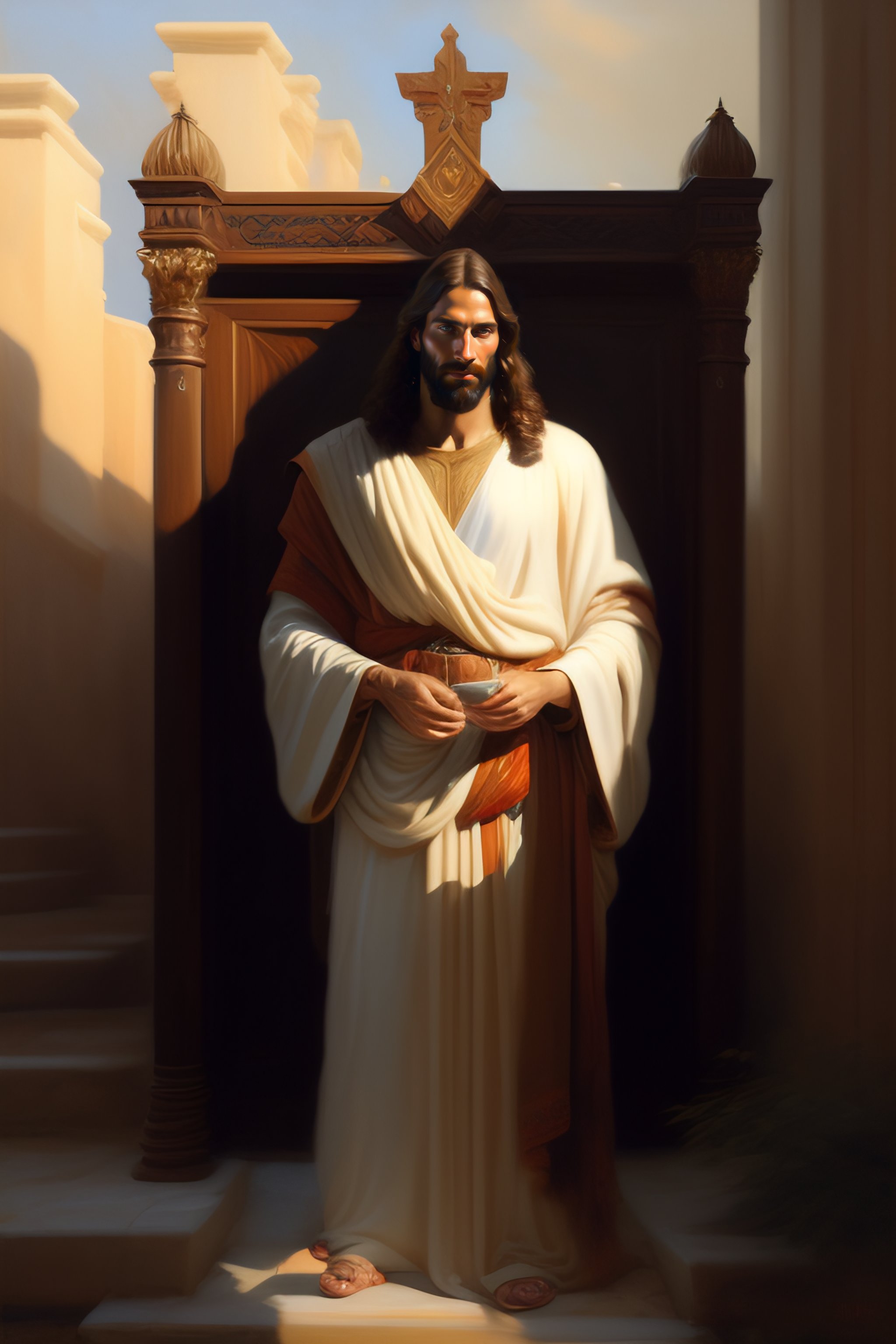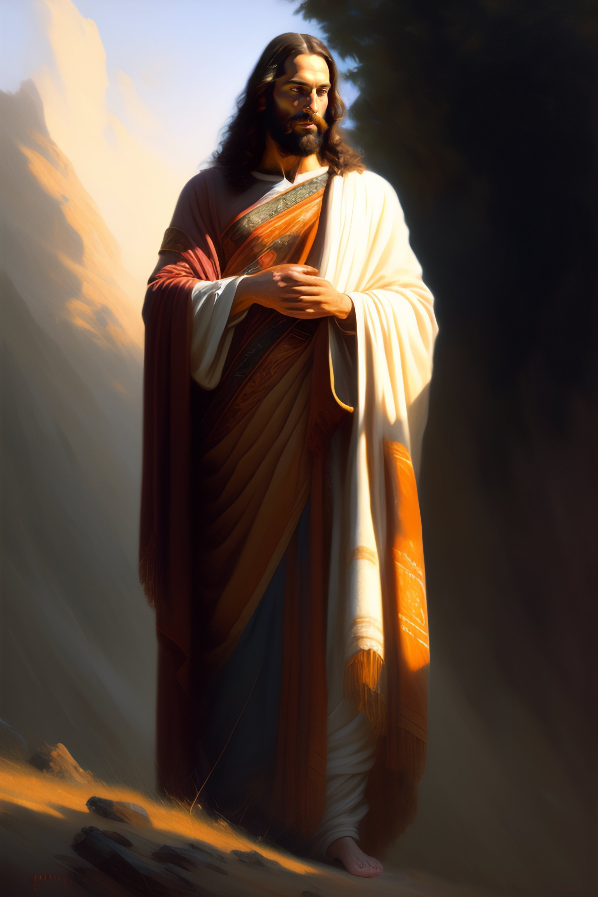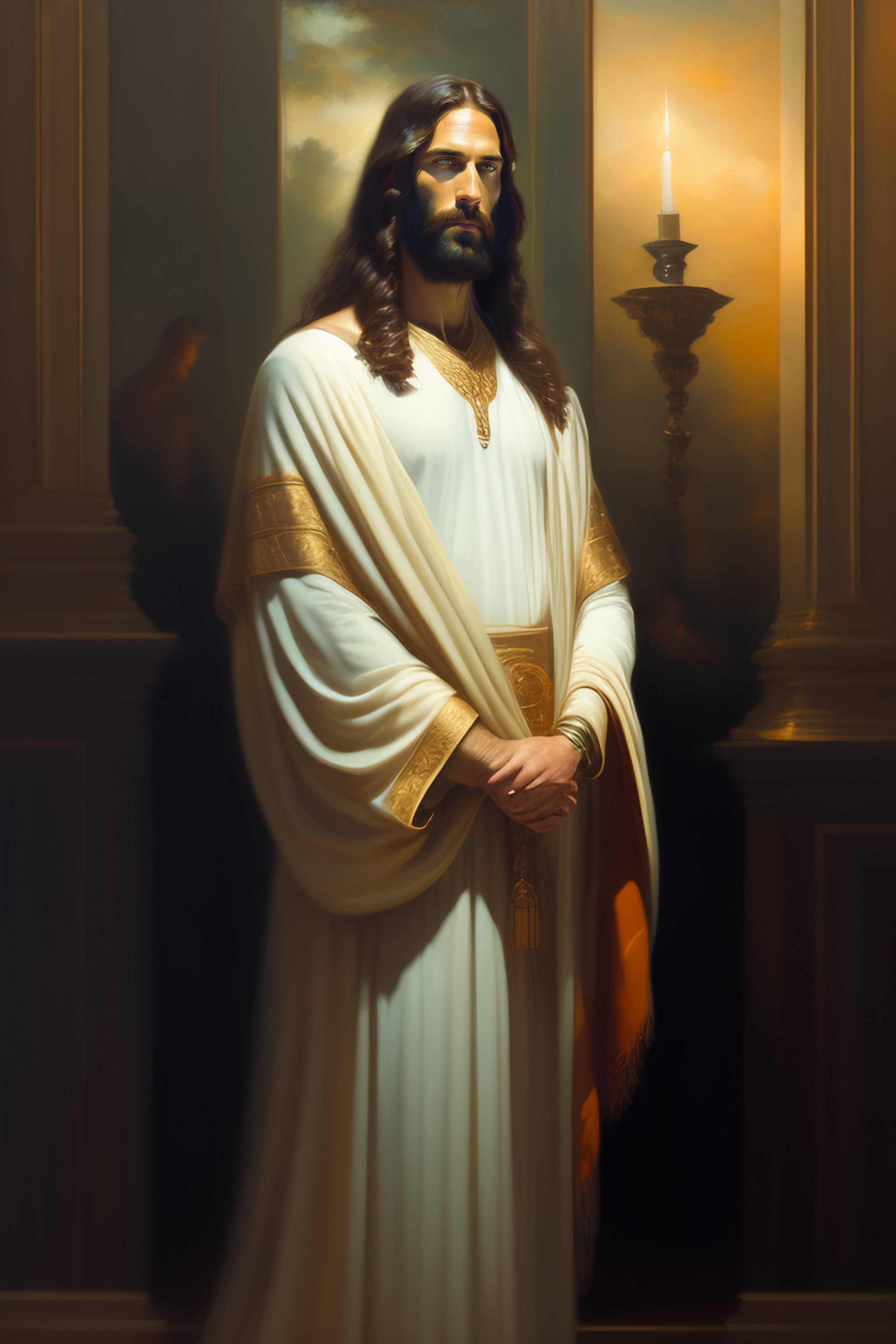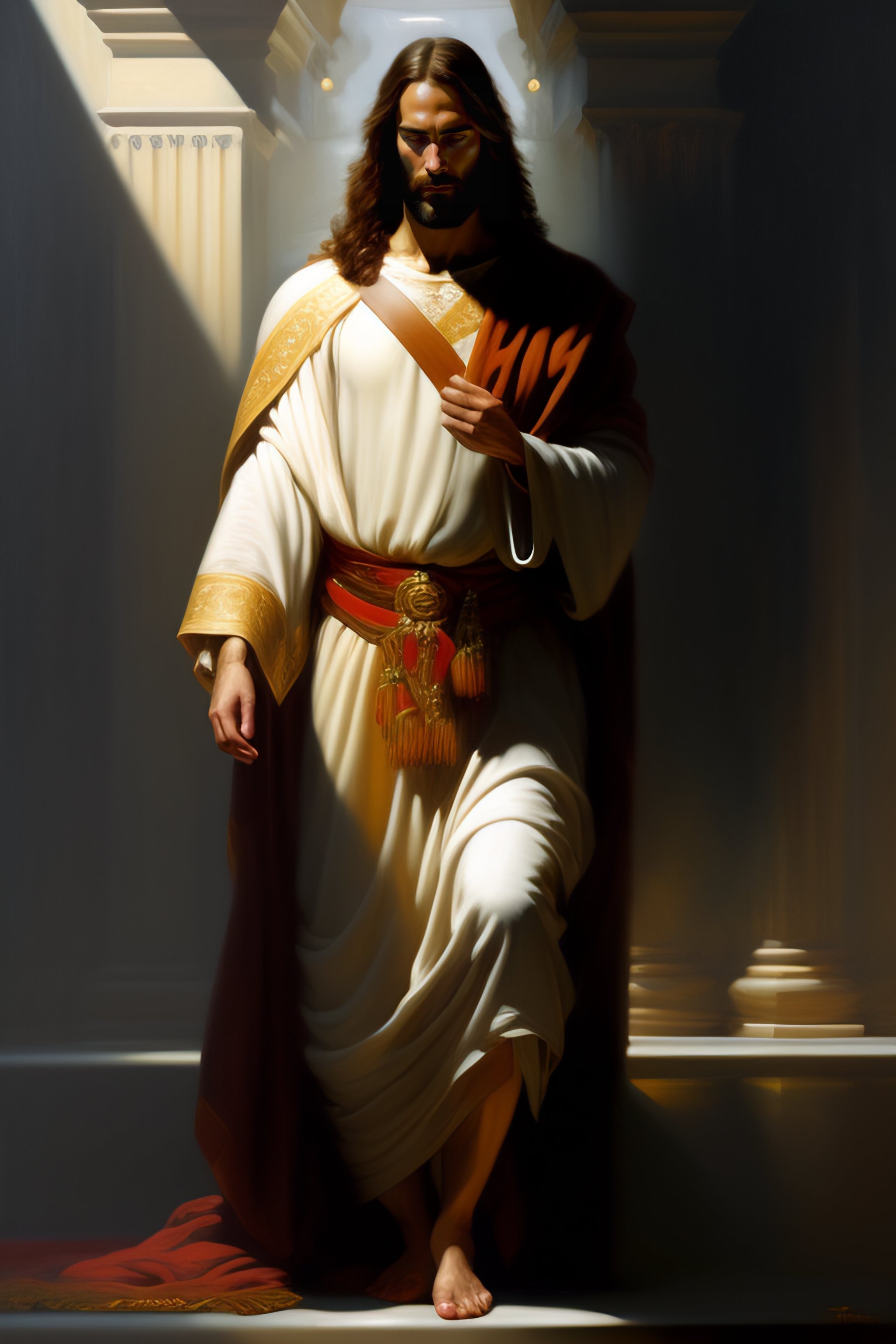 Full body photo of jesus christ majestic spooky disquieting majestic professional oil painting by ed blinkey, atey ghailan, by jeremy mann, greg manchess, antonio moro, trending on artstation, trending on cgsociety, intricate, high detail, sharp focus, artwork of dramatic and photorealistic painting by midjourney and greg rutkowski