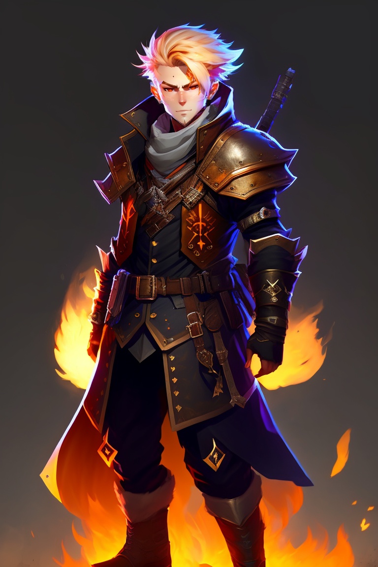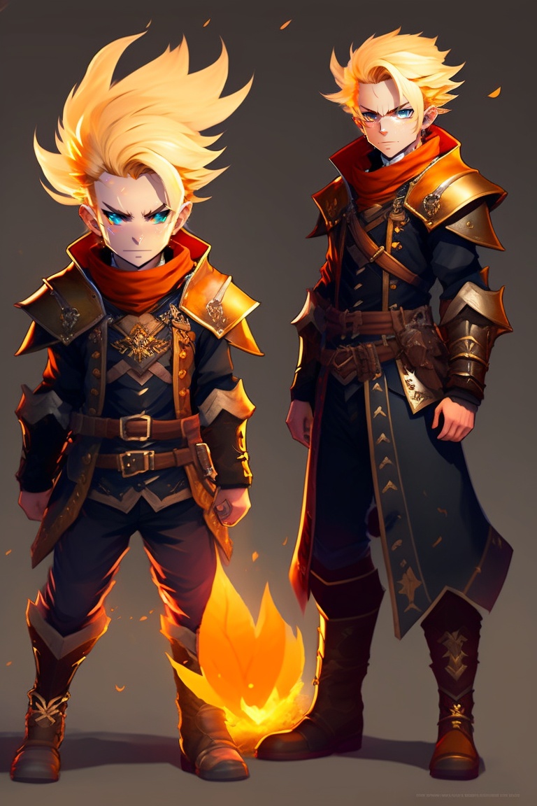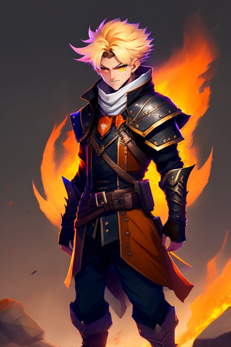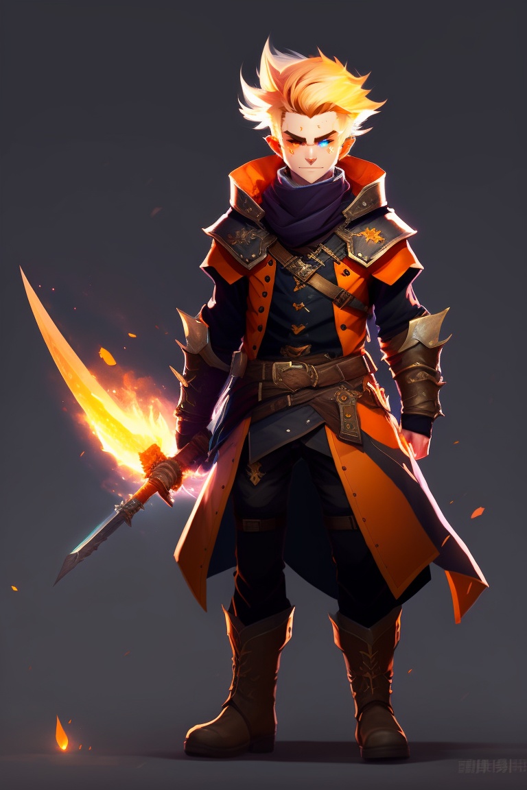 (darkest dungeon genshin impact), digital art key visual full body portrait character concept art, heavily scarred blonde boy with glowing orange eyes, kuudere, weathered adventurer clothes, dramatic