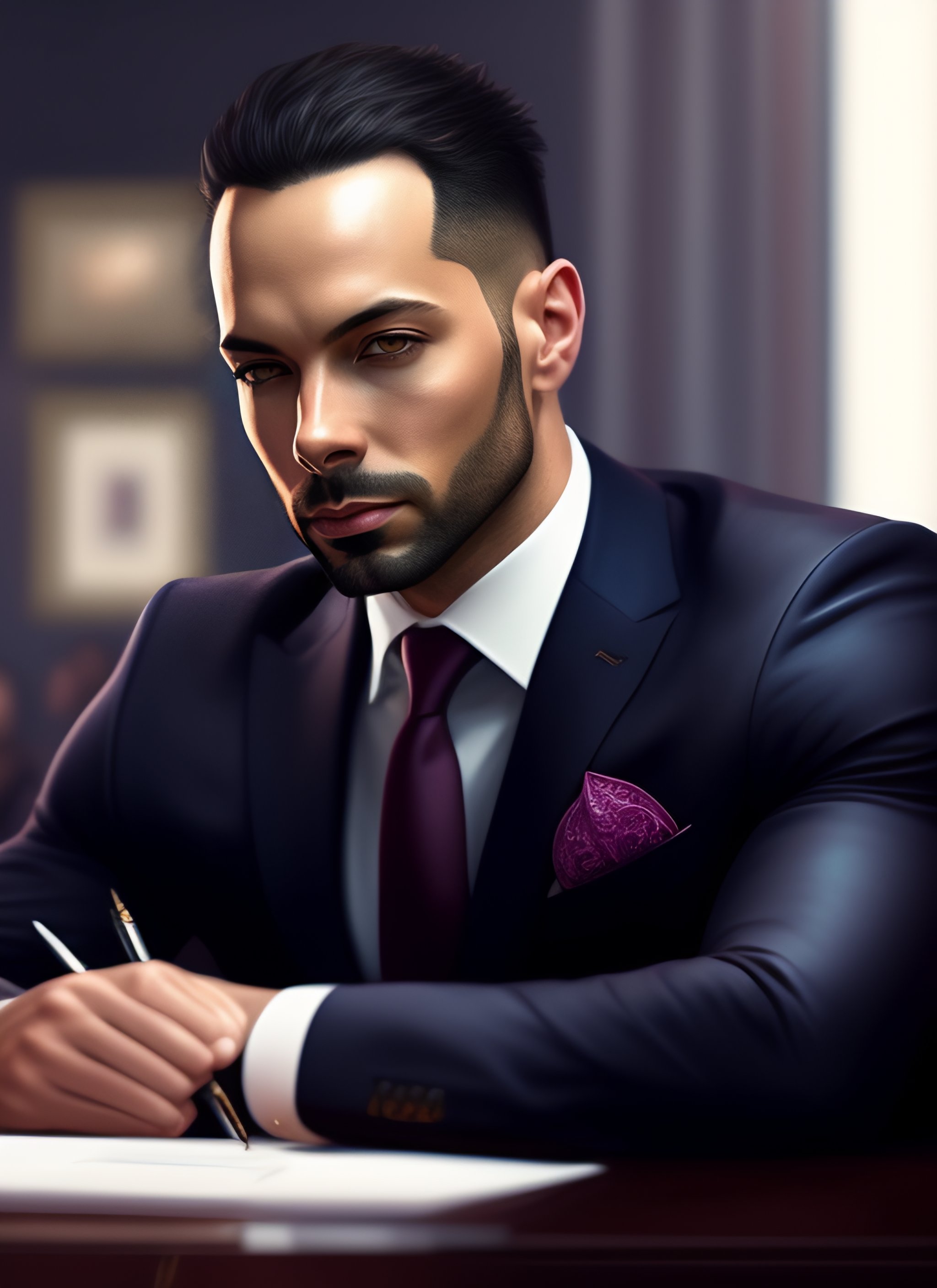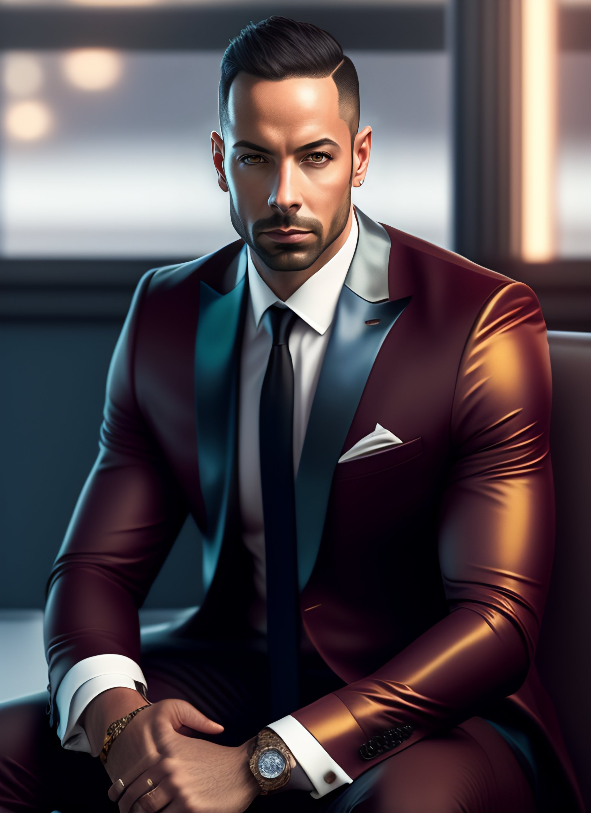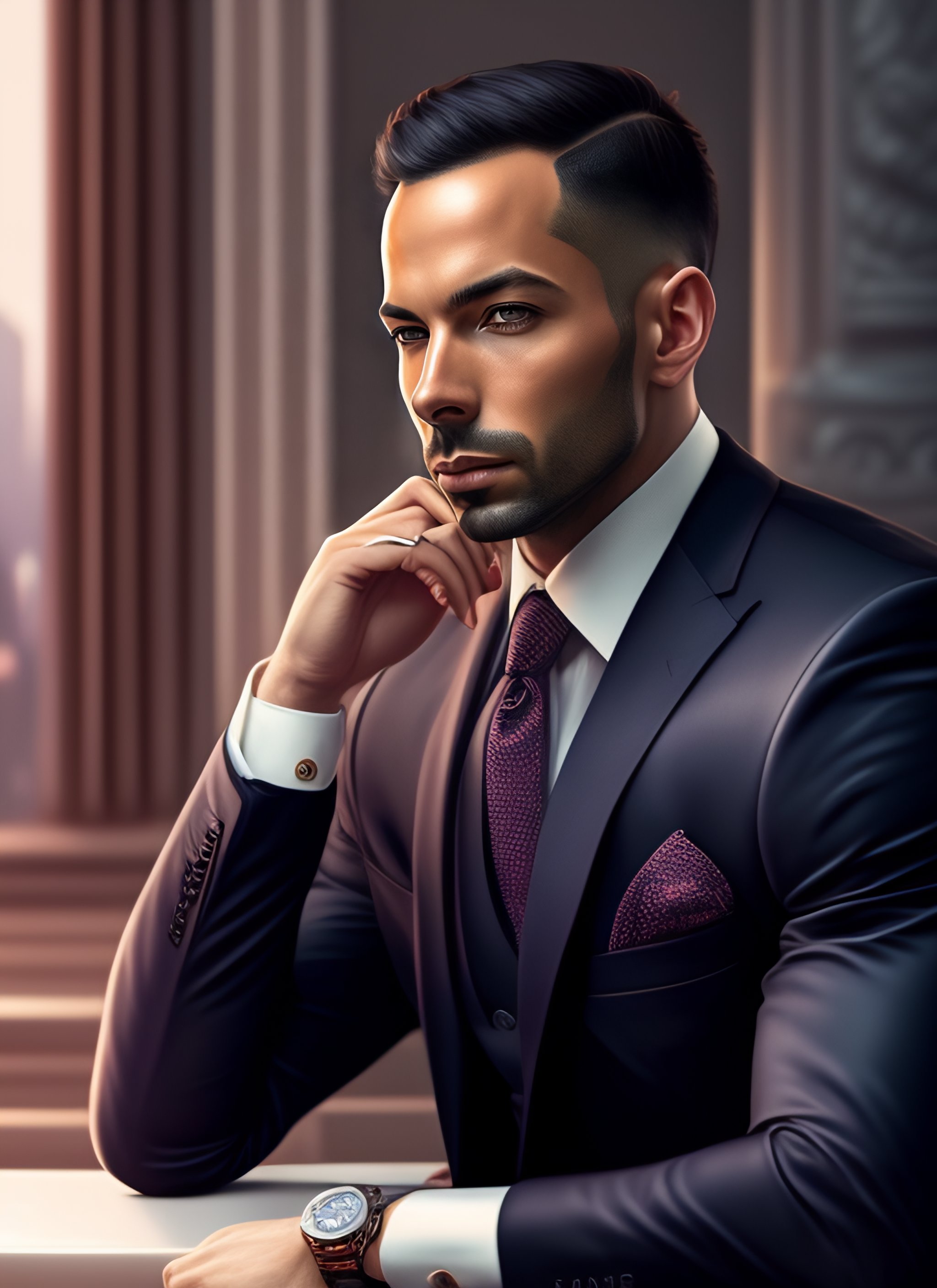 A highly detailed illustration of andrew tate wearing a suit, dramatic sitting thinking pose, intricate, elegant, highly detailed, centered, digital painting, artstation, concept art, smooth, sharp focus, league of legends concept art, wlop