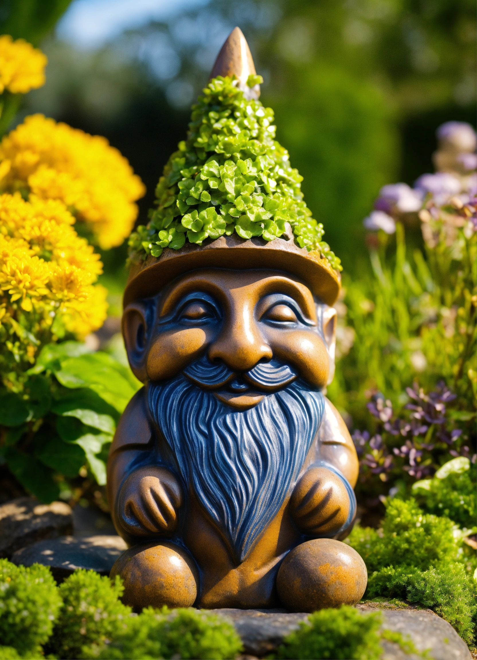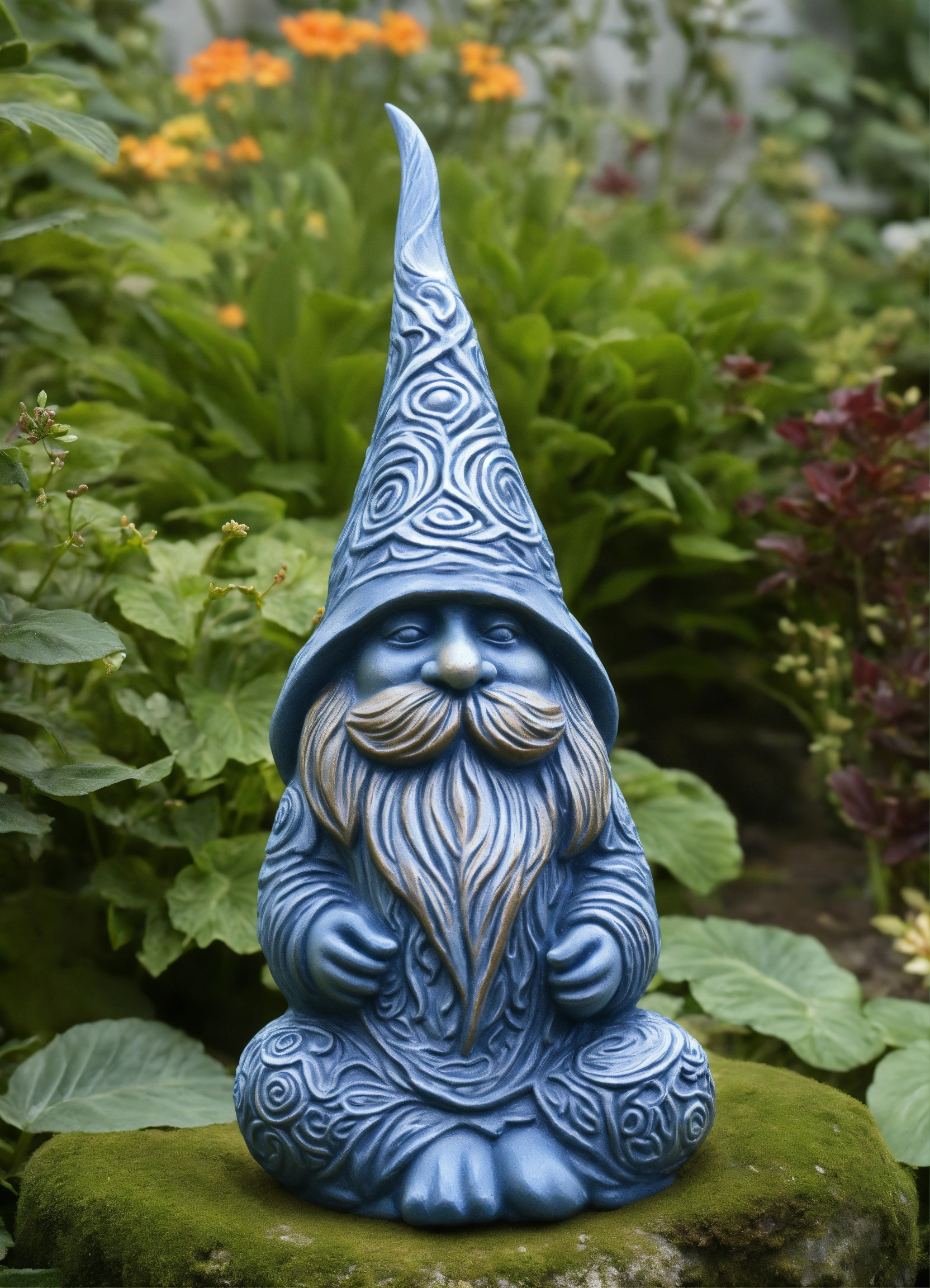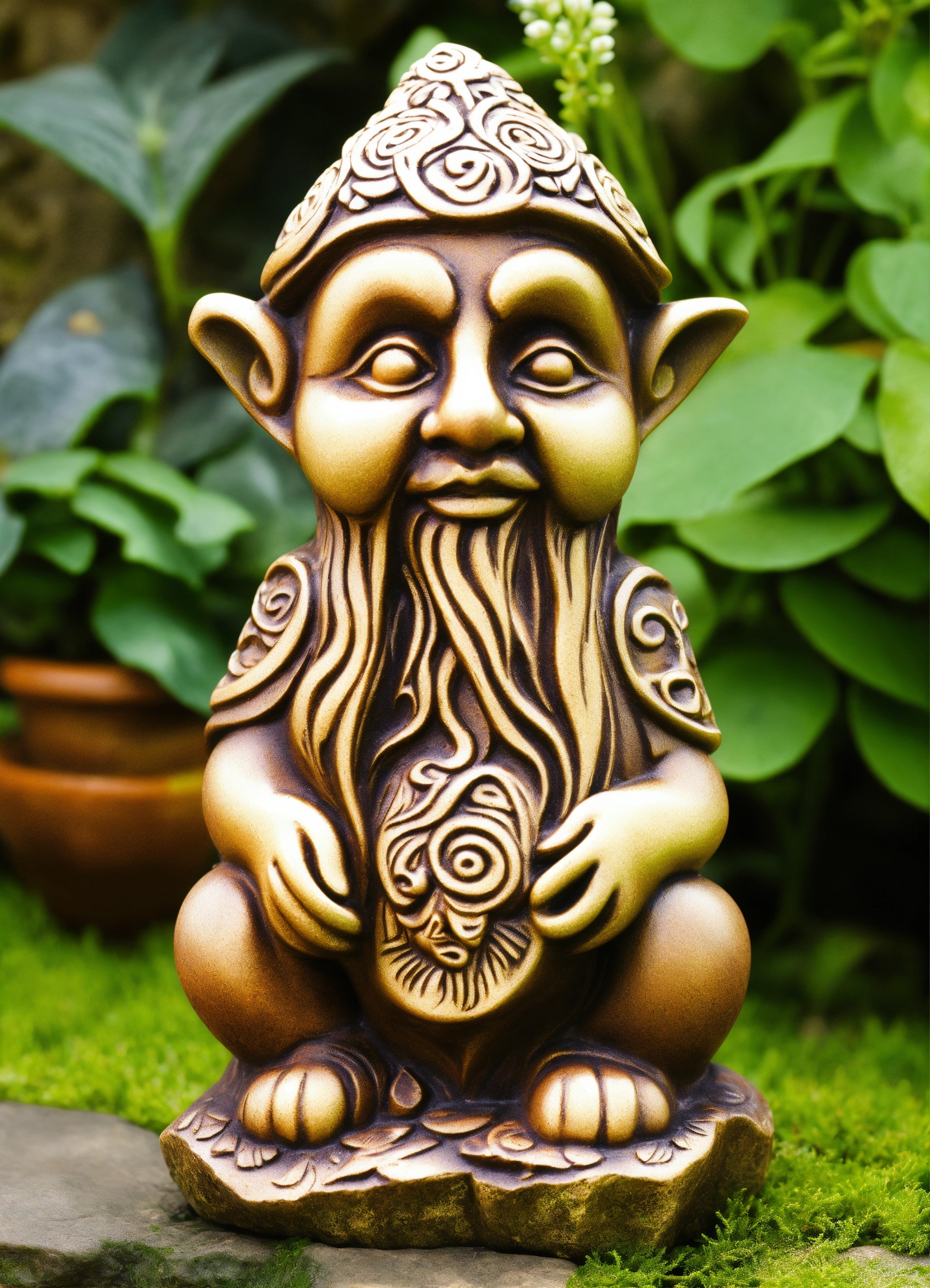 Stone nature spirit gnome garden ornament in the style of alex grey