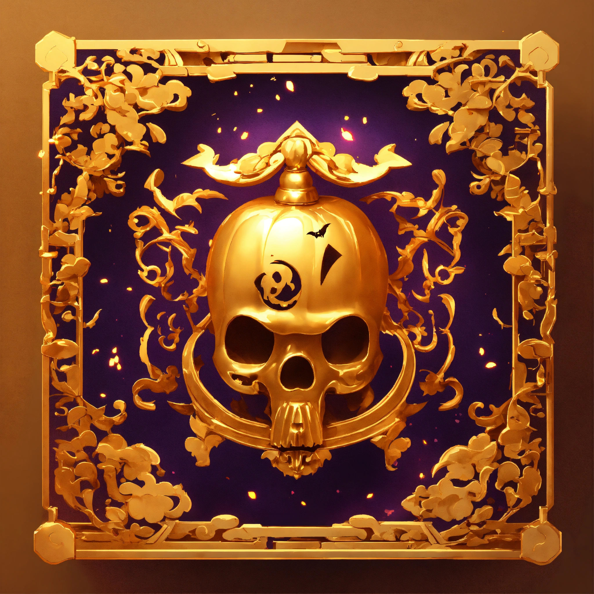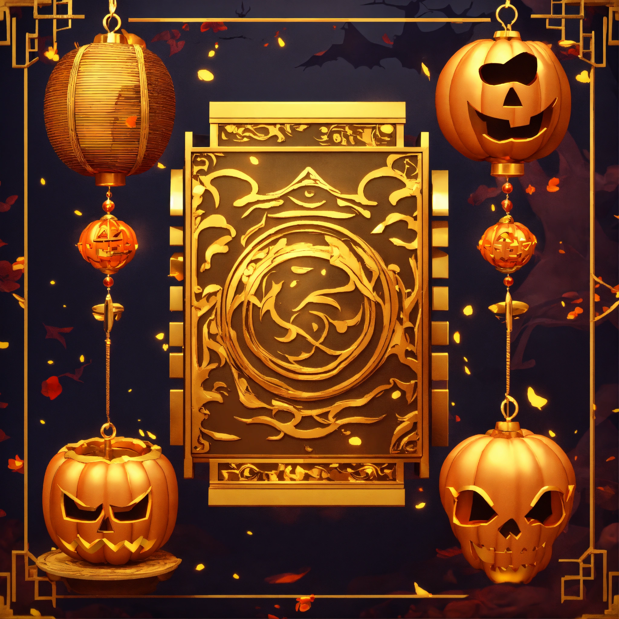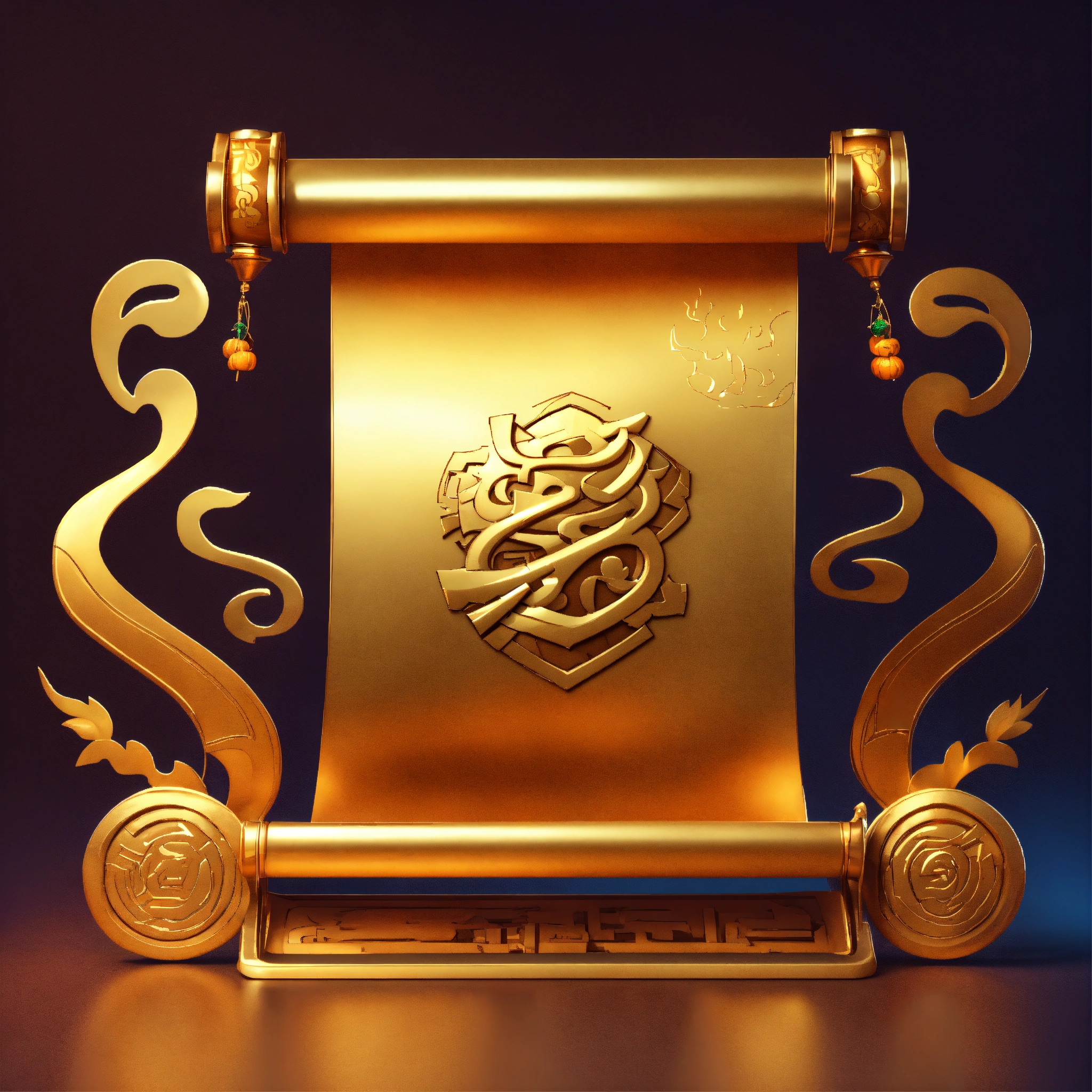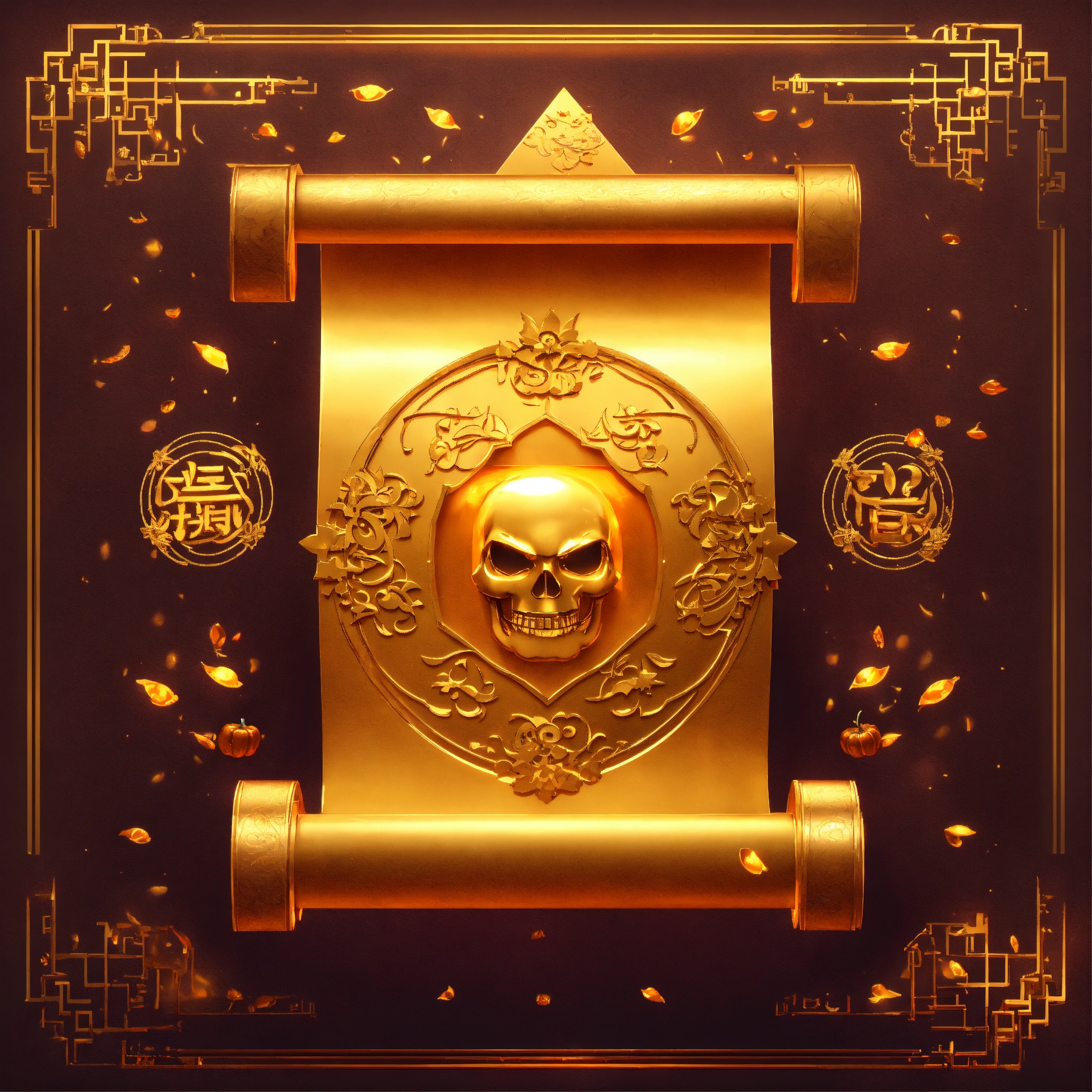 Japanese magic gold scroll, game art, halloween style, cartoon, minimalism, 3d animation style, magic effects