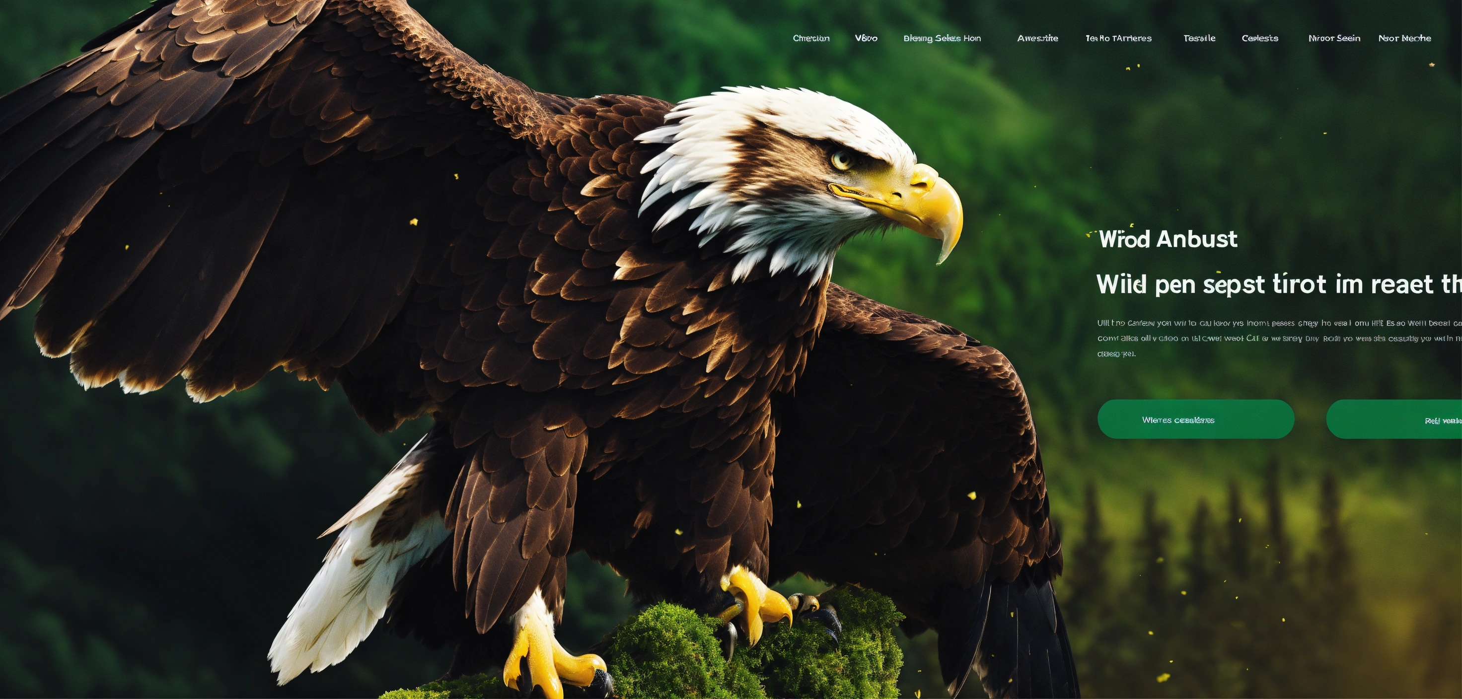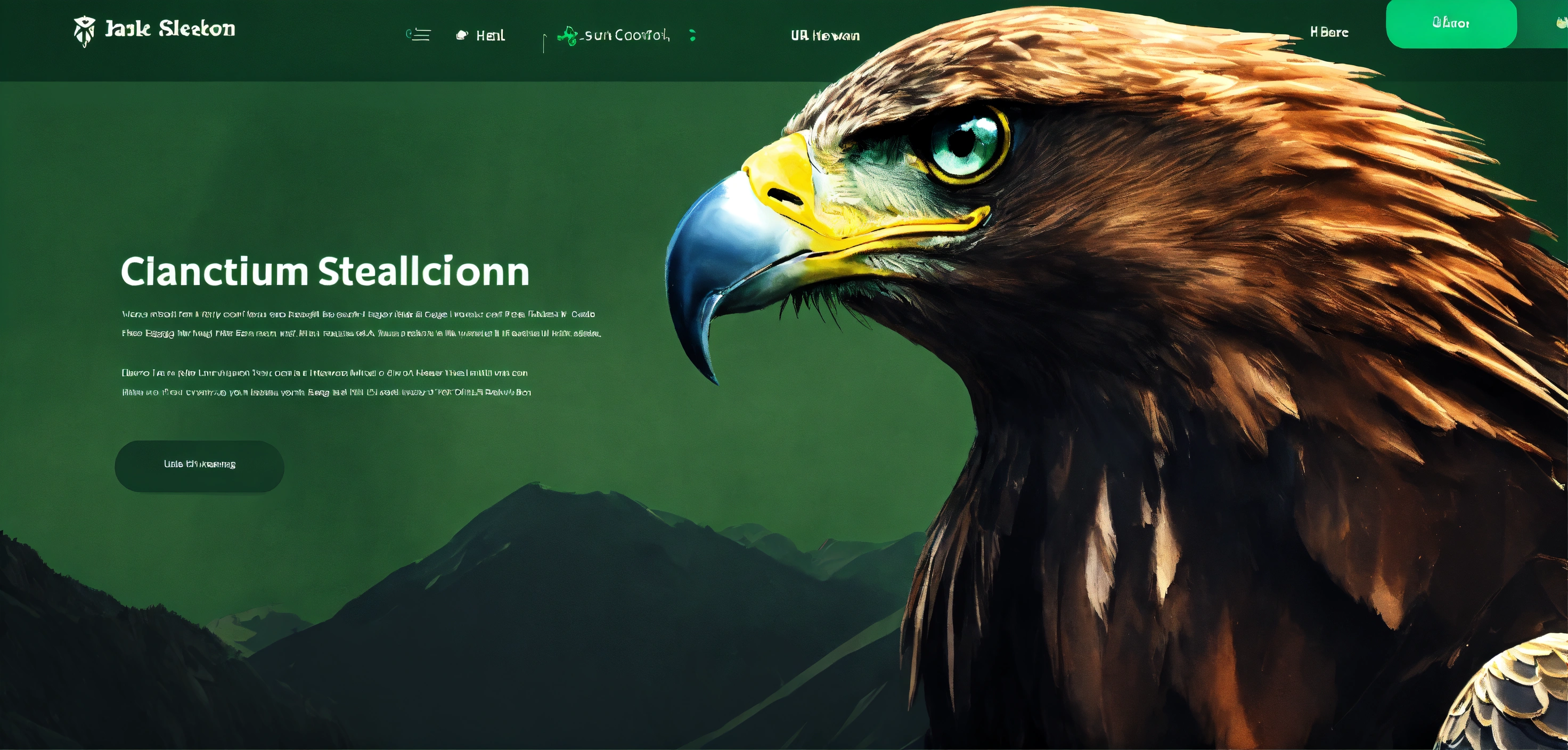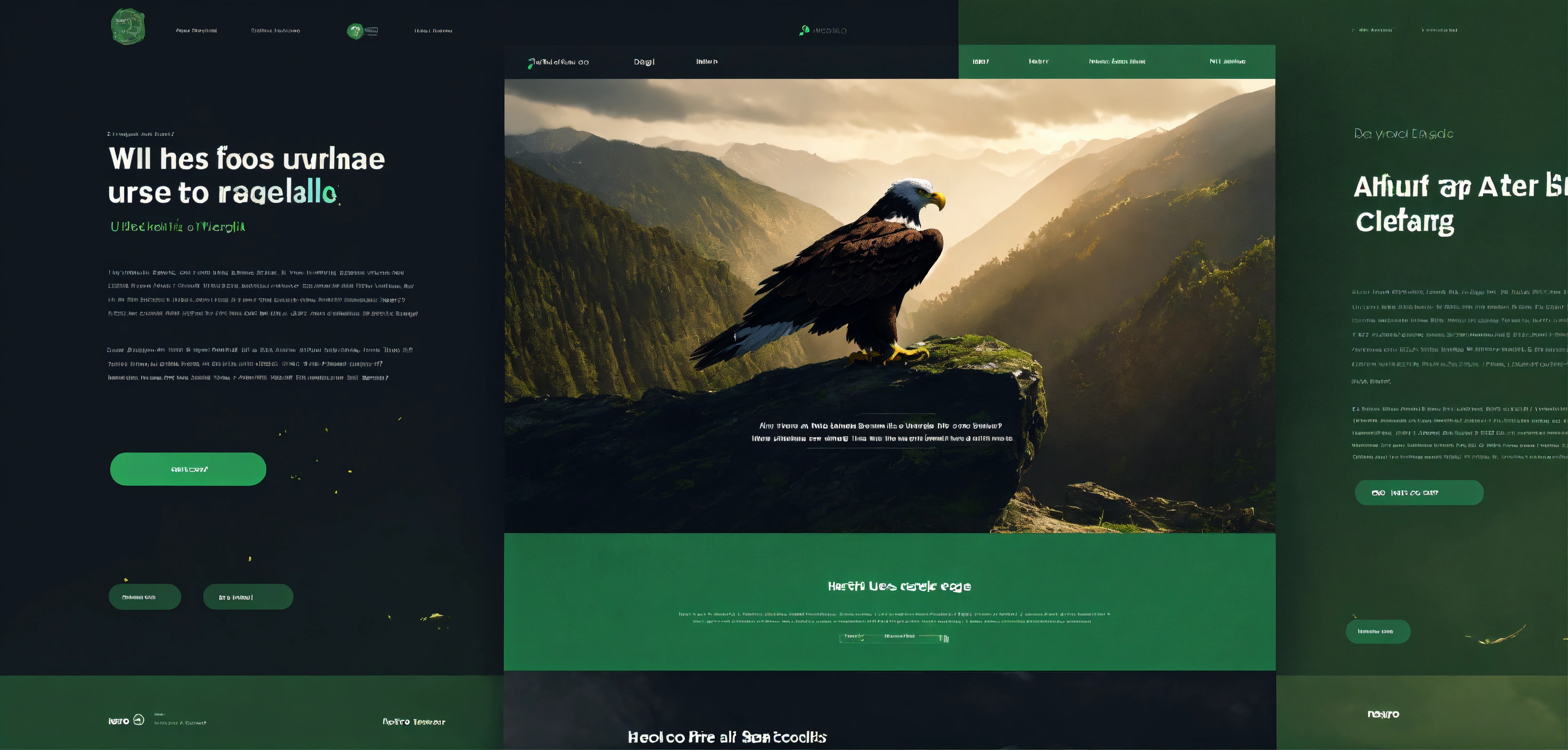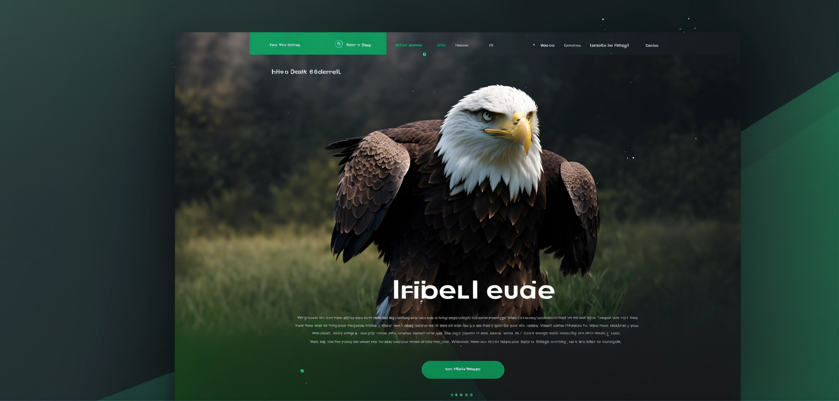 Beautiful landing page website, ui ux, hero section, non realistic ultra detailed eagle dark green theme