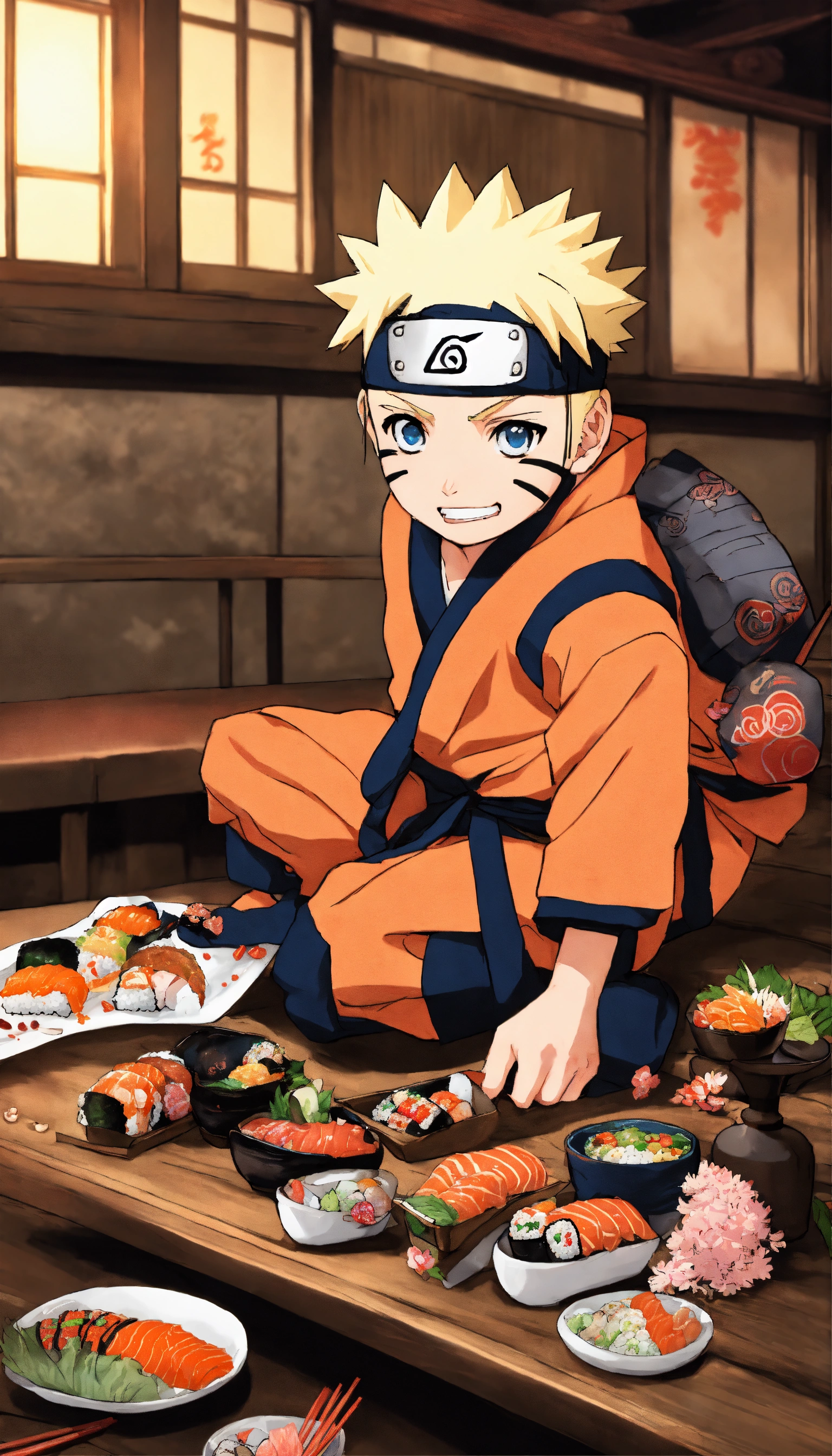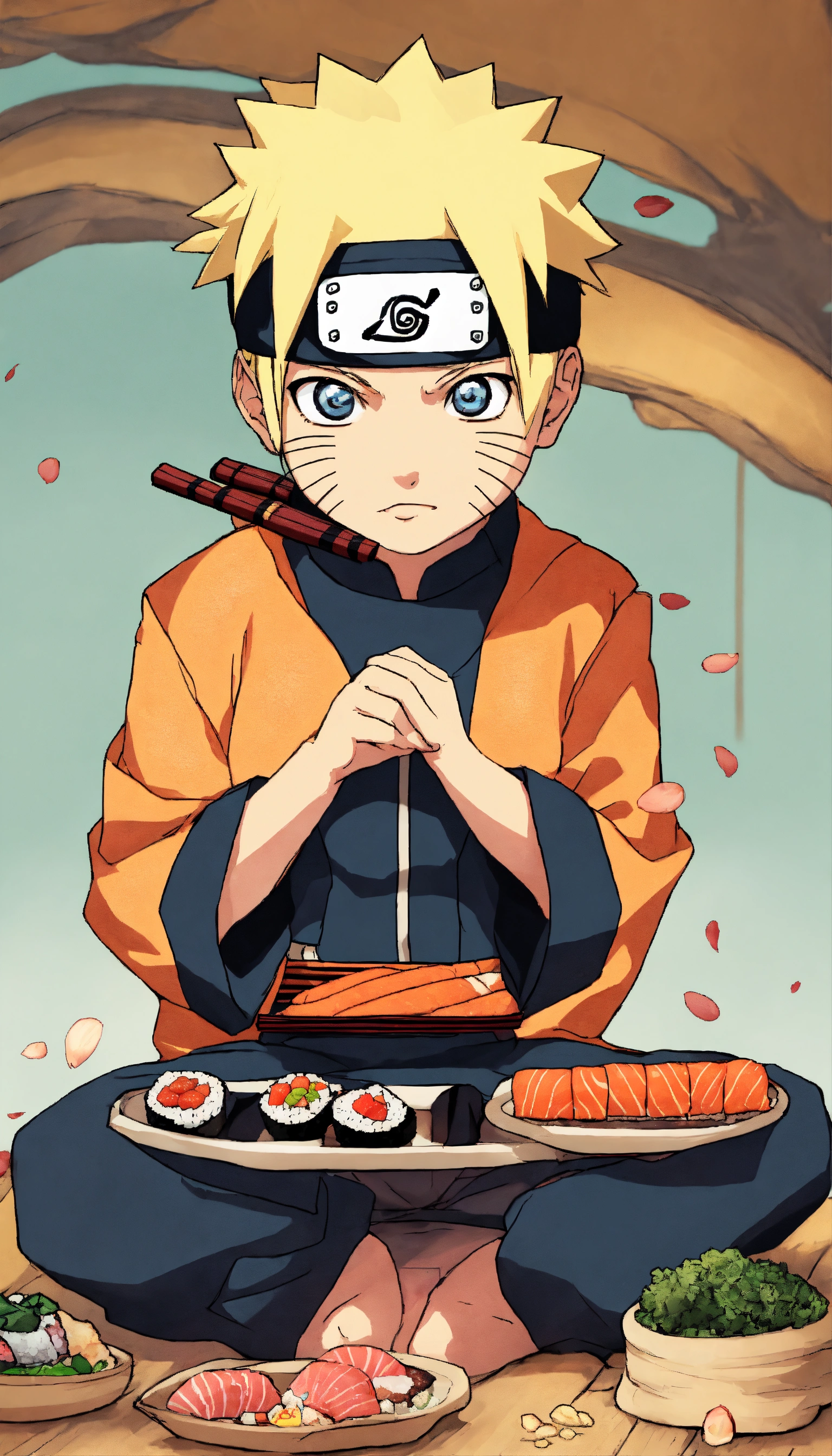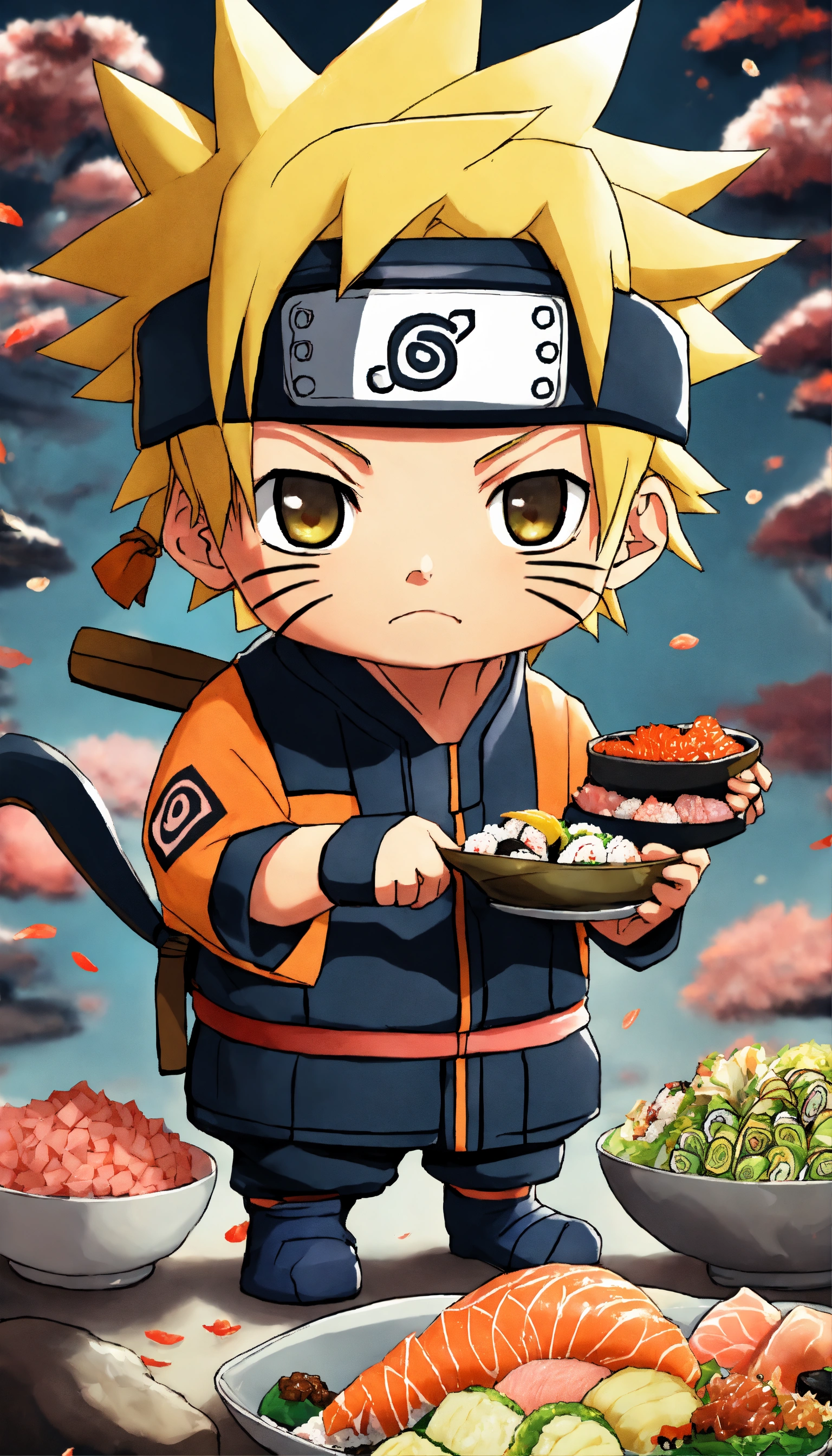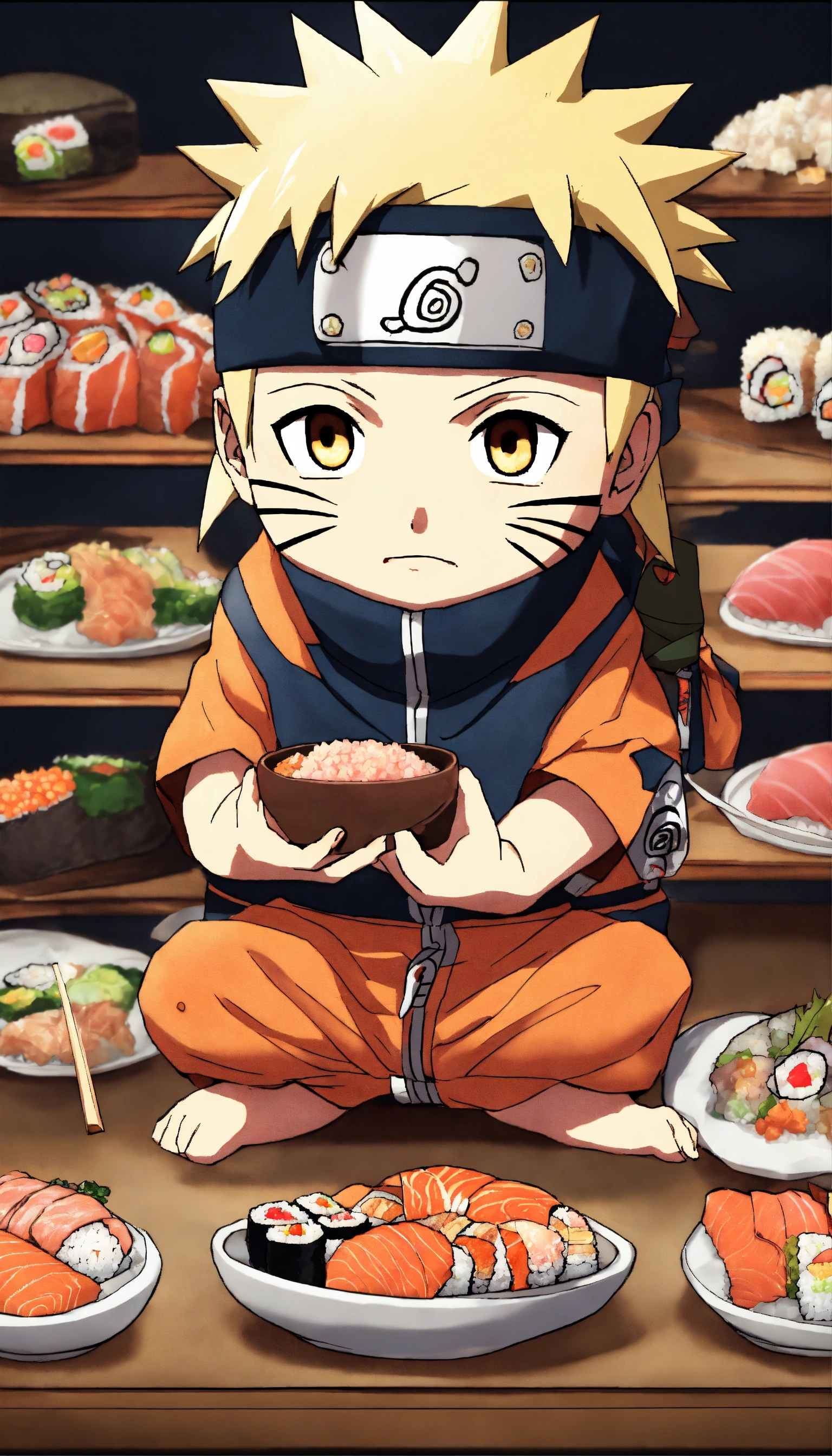 with chibi style who eats sushi