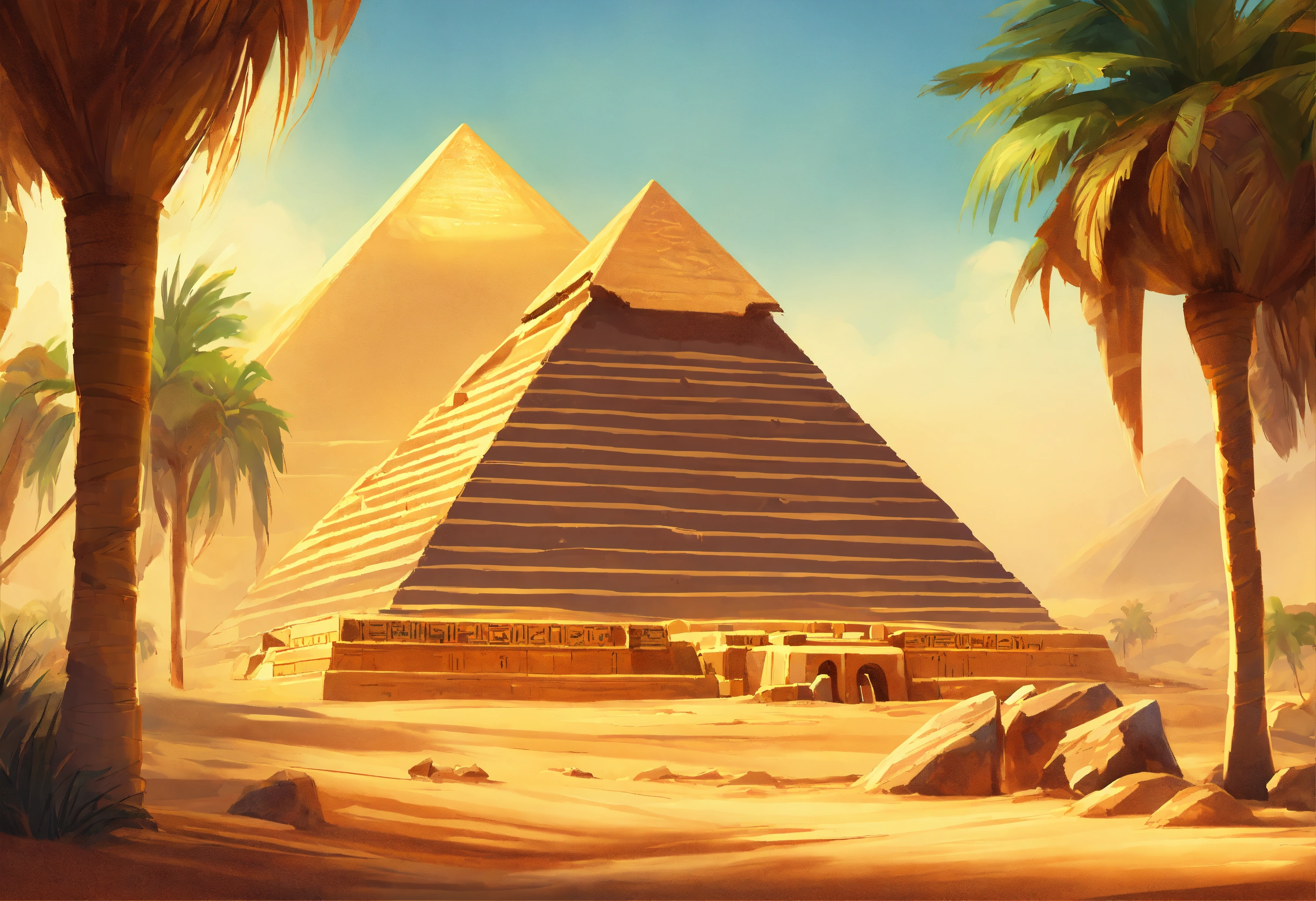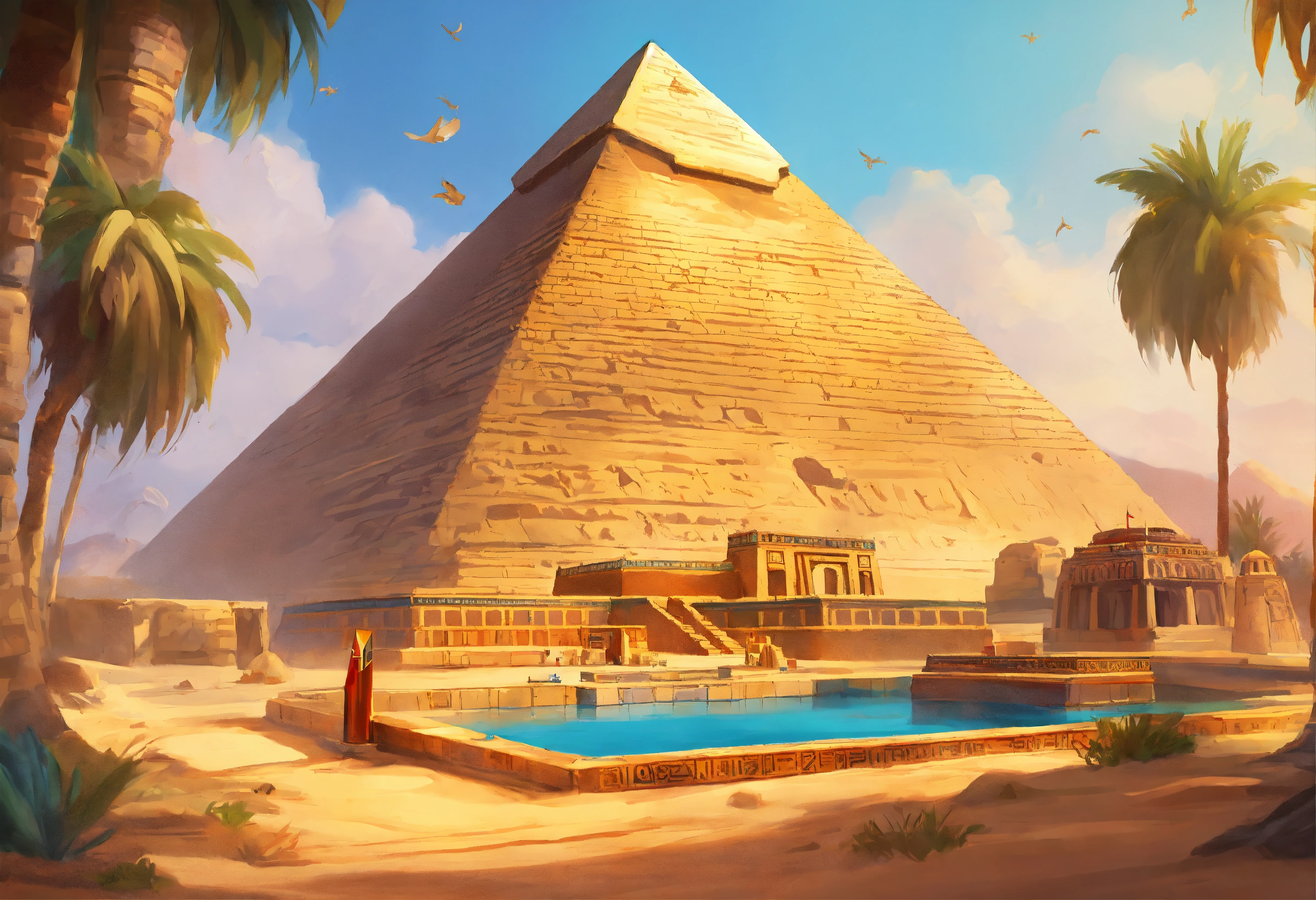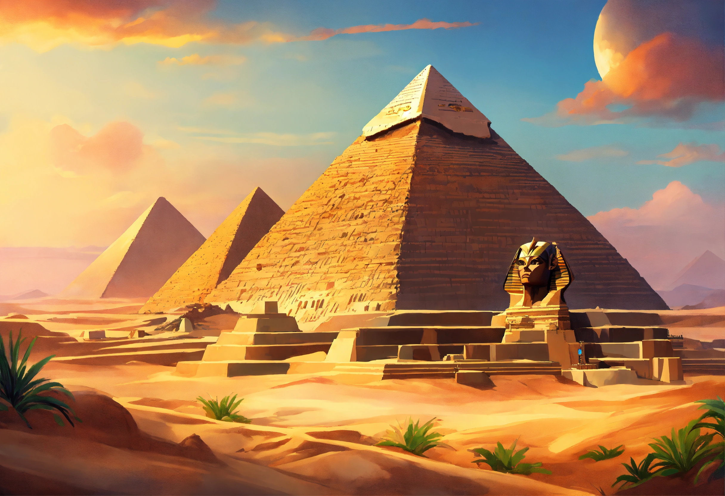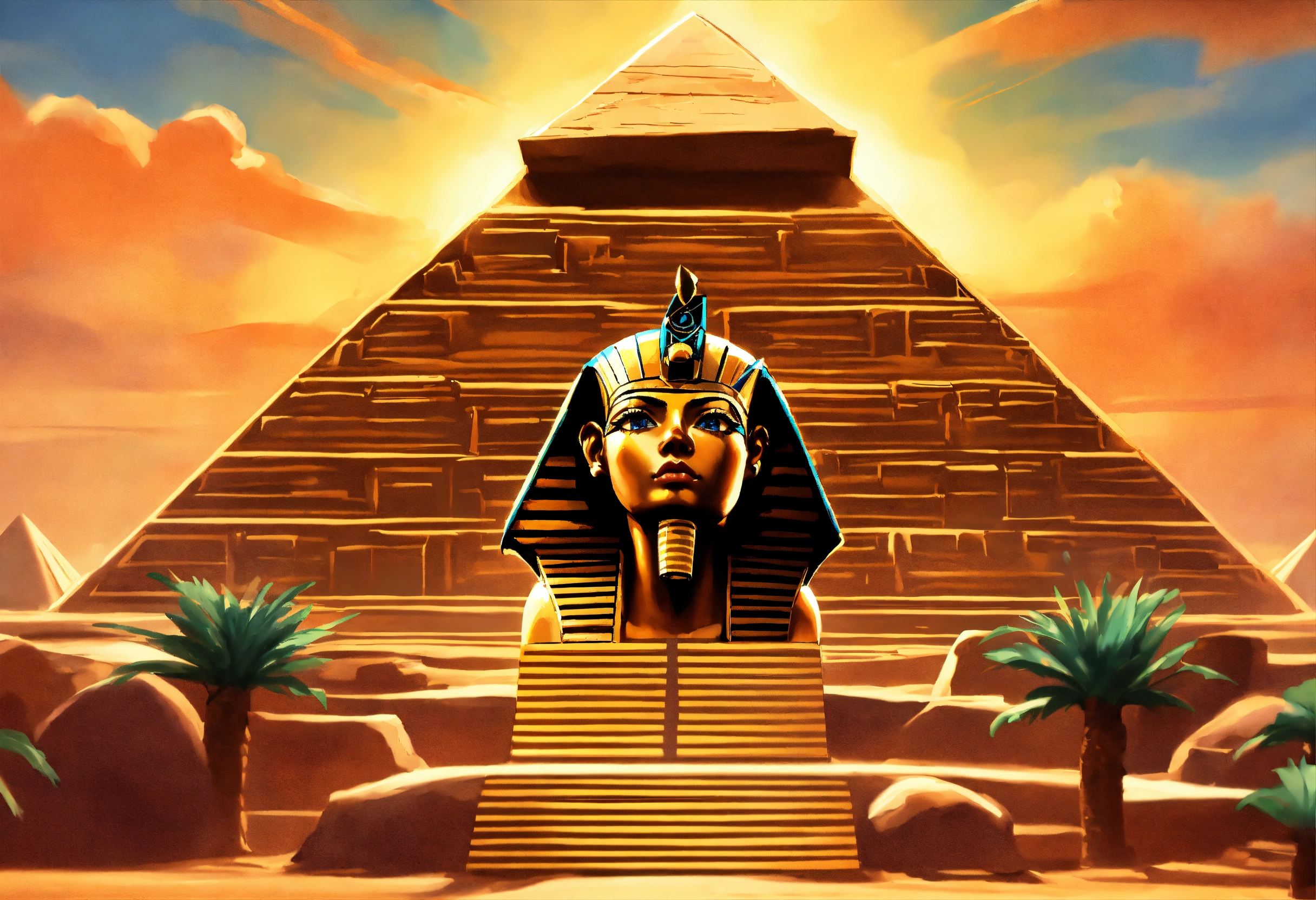 Egyptian giza, spin background for the slot game, realistic cartoon oil paint, 2d illustration style, sharp focus, bright color, digital paint design, trending on artstation, high details, simple lines, art by josé luis ágreda and camilla d'errico.