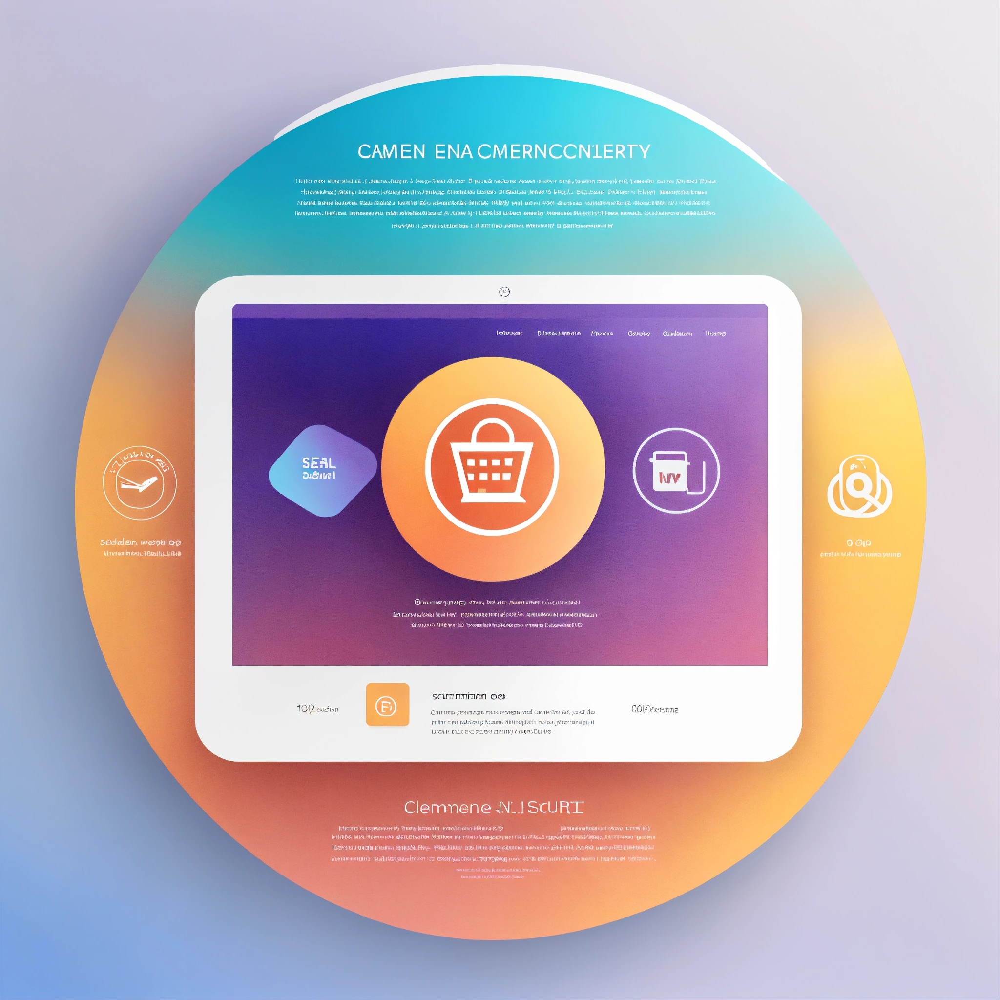 Clean, minimalist white backdrop with subtle gradients, combined generic security seal icons with graceful curves, simplified e-commerce seal and rounded website screenshot, modern design with curved elements in serene colors.