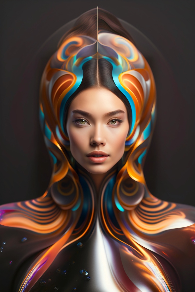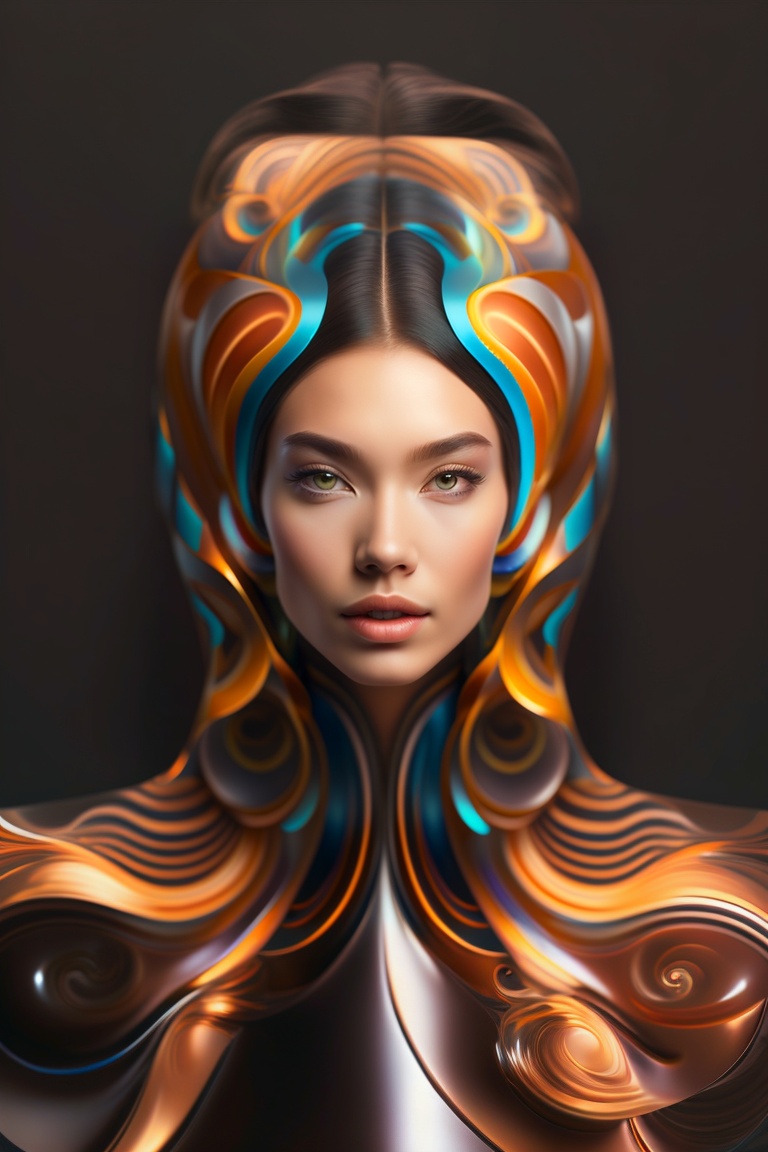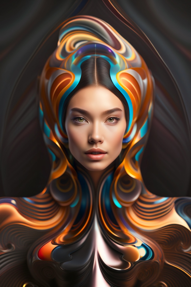 Perfect symmetrical face hyperrealism portrait of a beautiful lithe woman made from 3d swirls of rich surreal melting earth and fractal magnetic field lines, photorealistic, studio photography, hdr, 8k, cannon eos 5d mark iii, 85mm by johannes stötter, liu bolin, alexa meade, trina merry