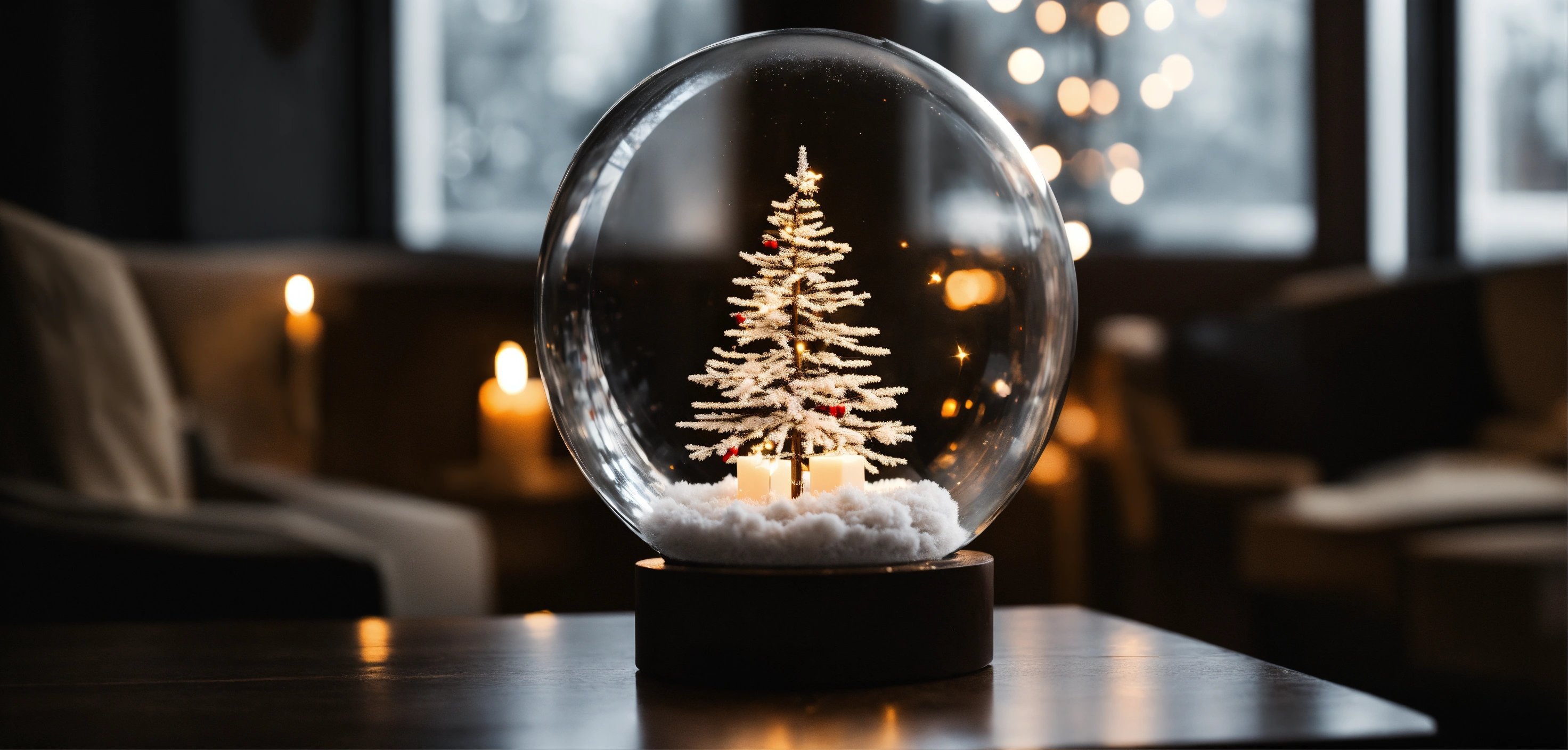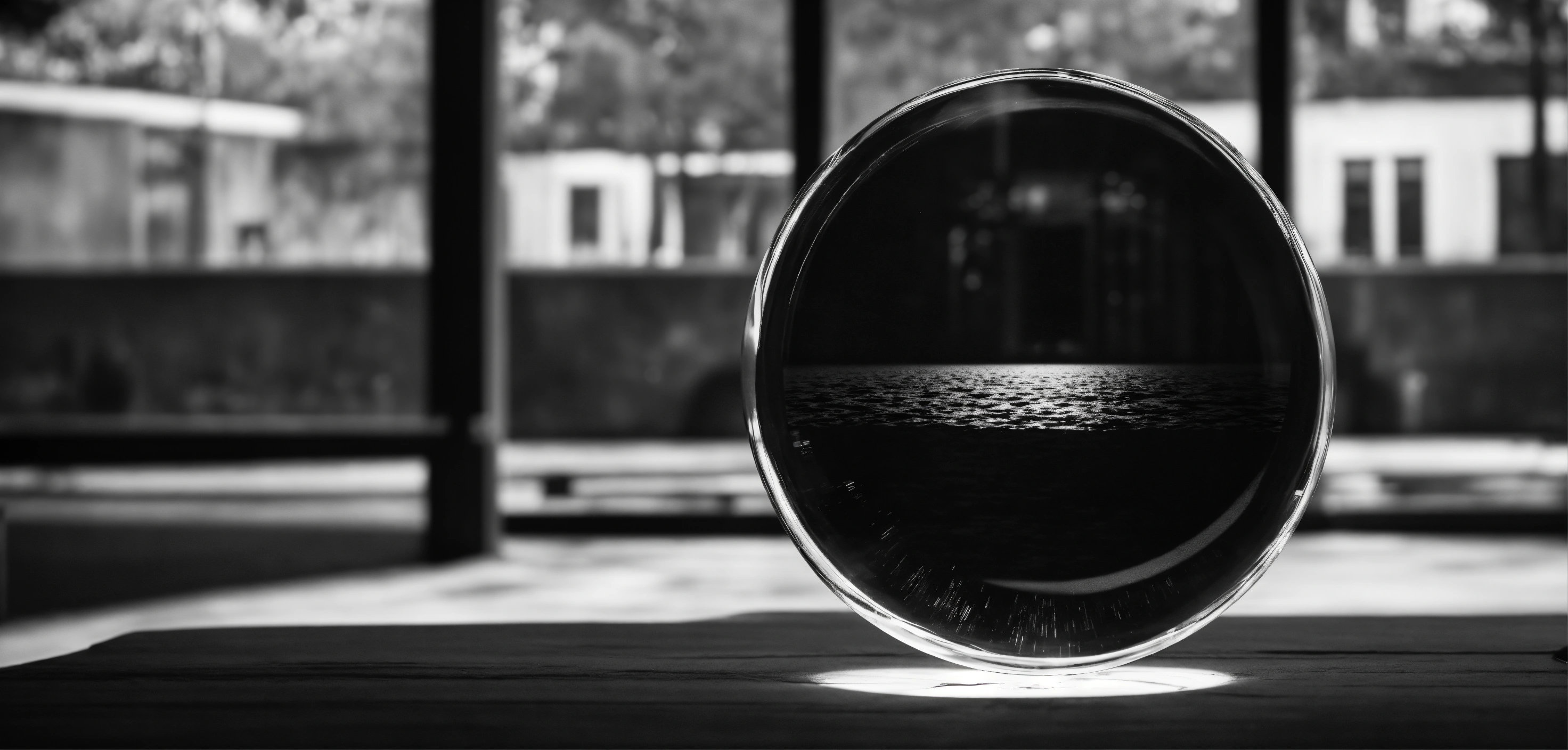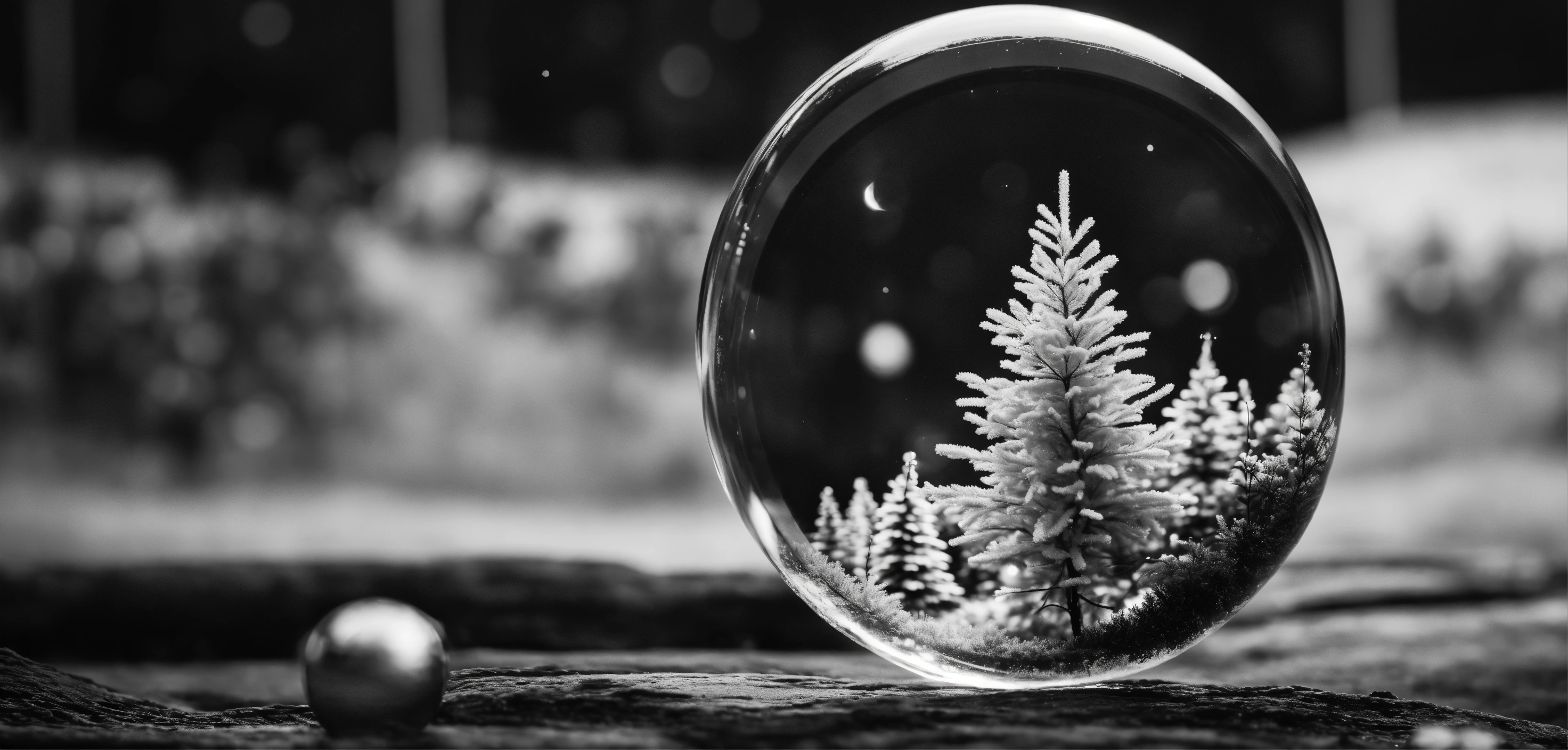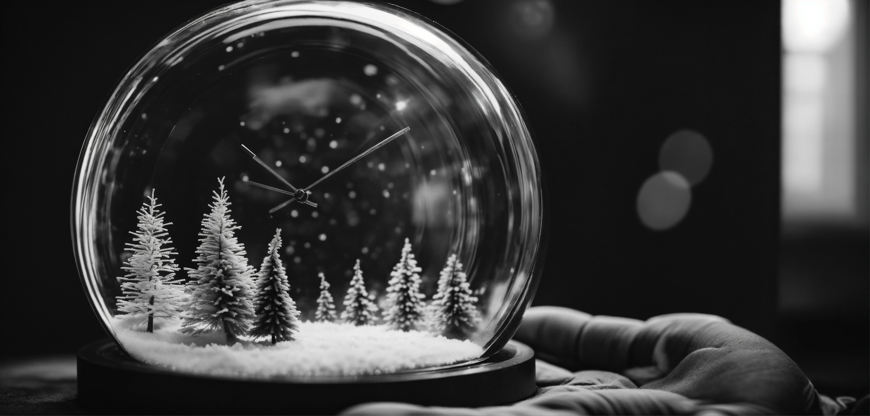 Time in hands clear looking through a transparent glass circle, christmas, black white photo, future minimalist style 8 k