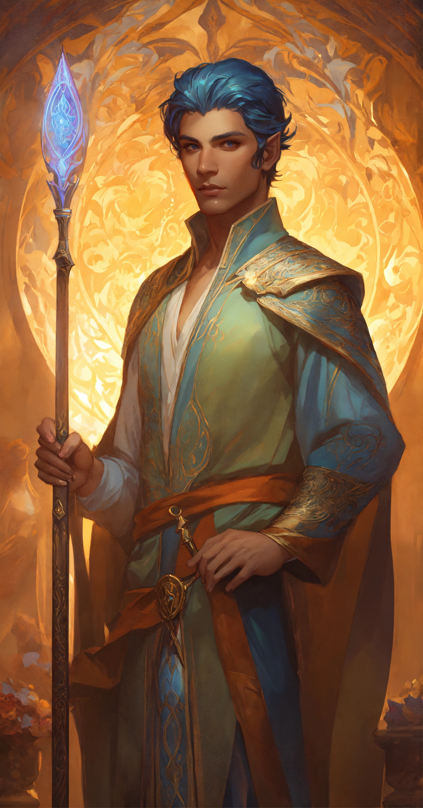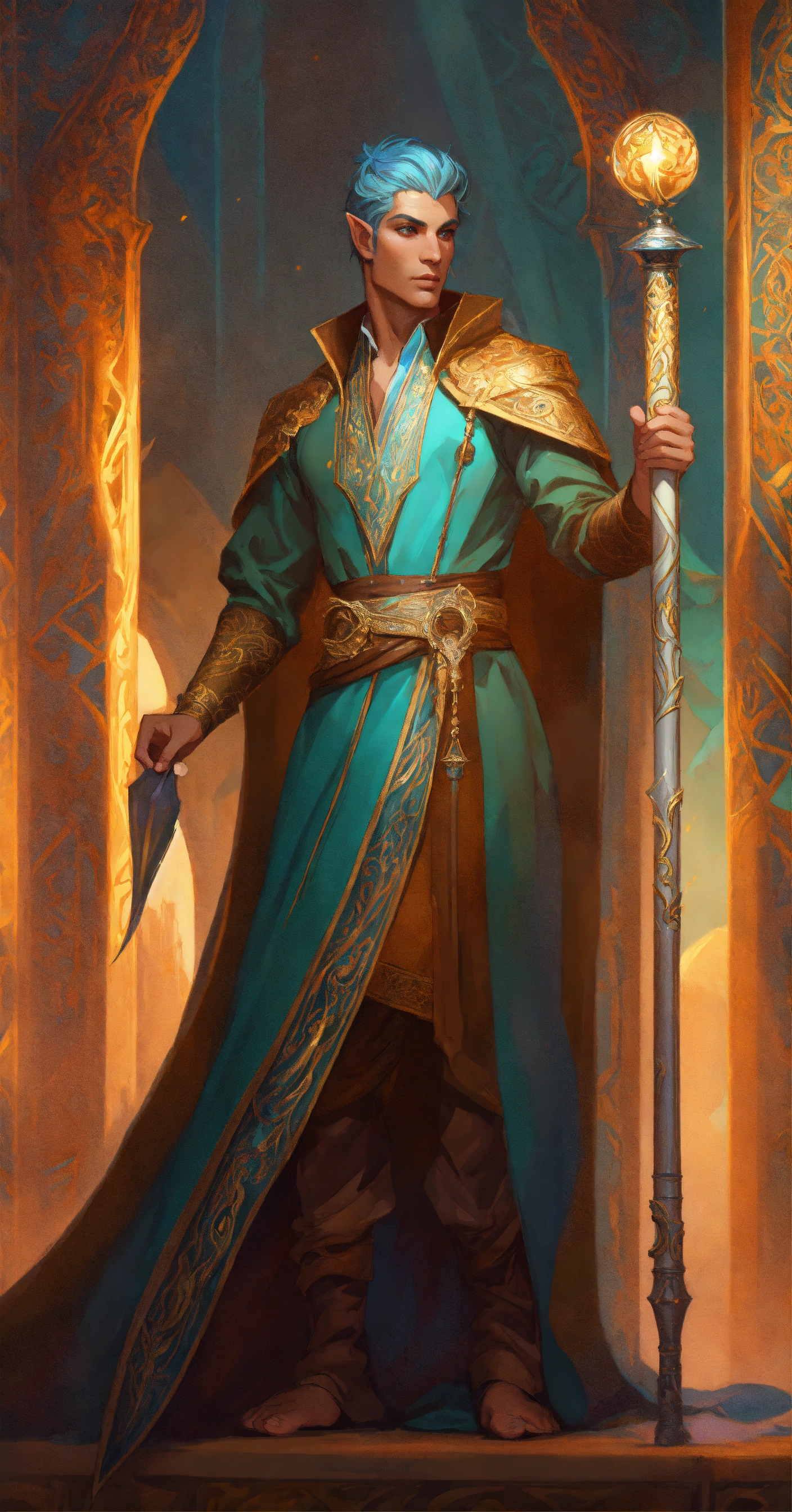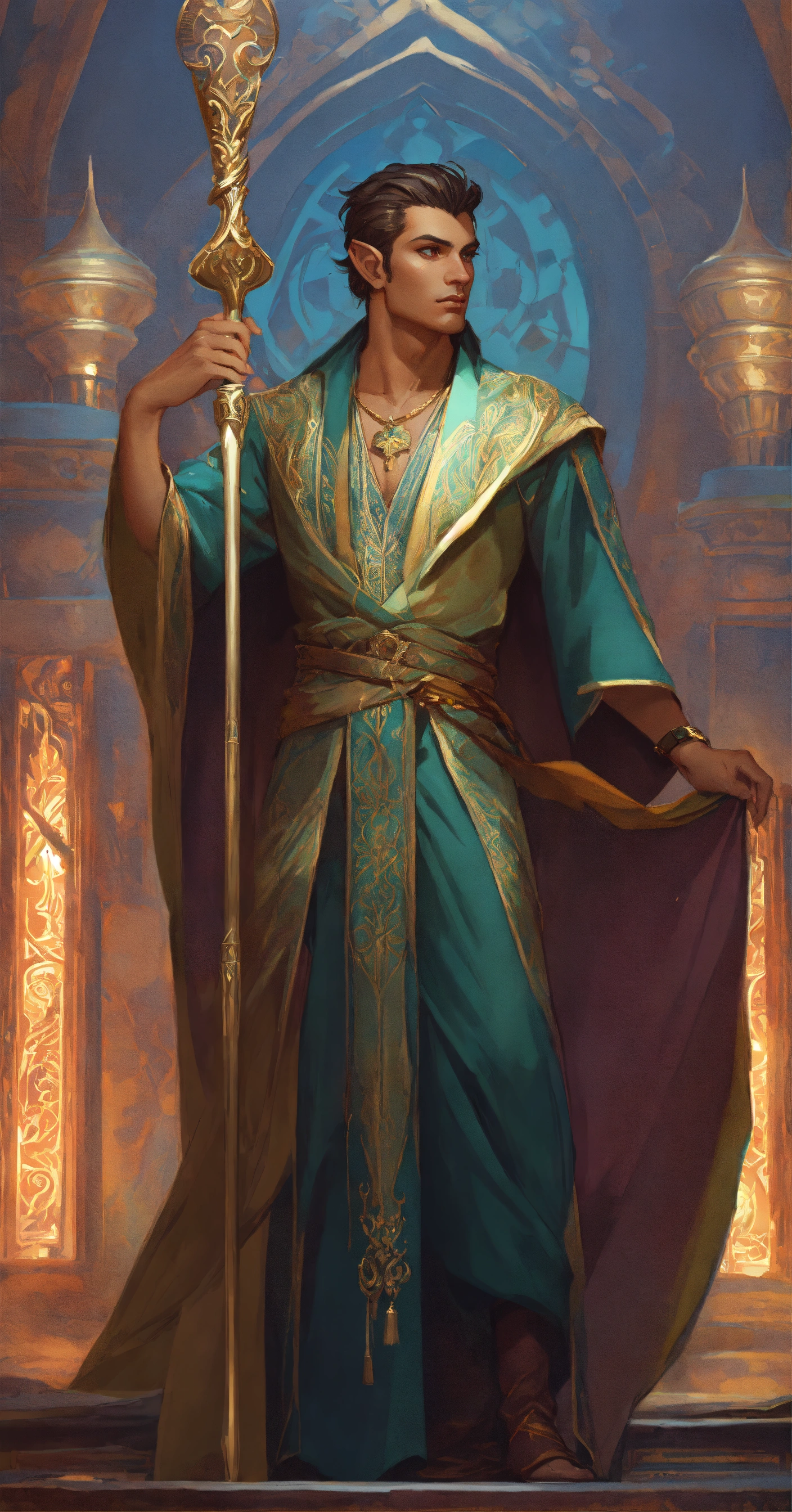 Persian male elf wizard with magical staff, high cheekbones, full body, highly detailed, digital painting, artstation, concept art, smooth, sharp focus, illustration, art by artgerm and greg rutkowski and alphonse mucha, erte, 8 k