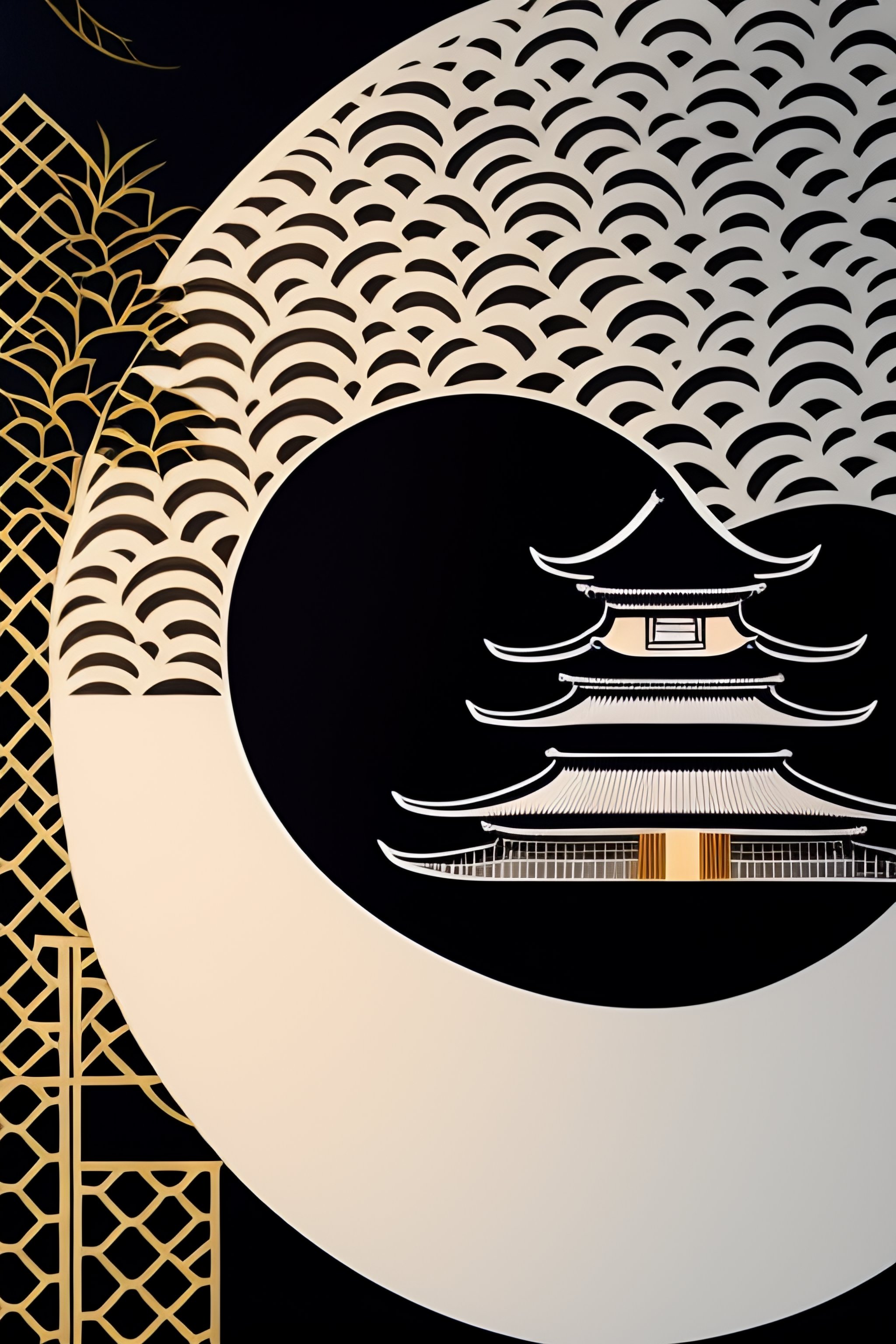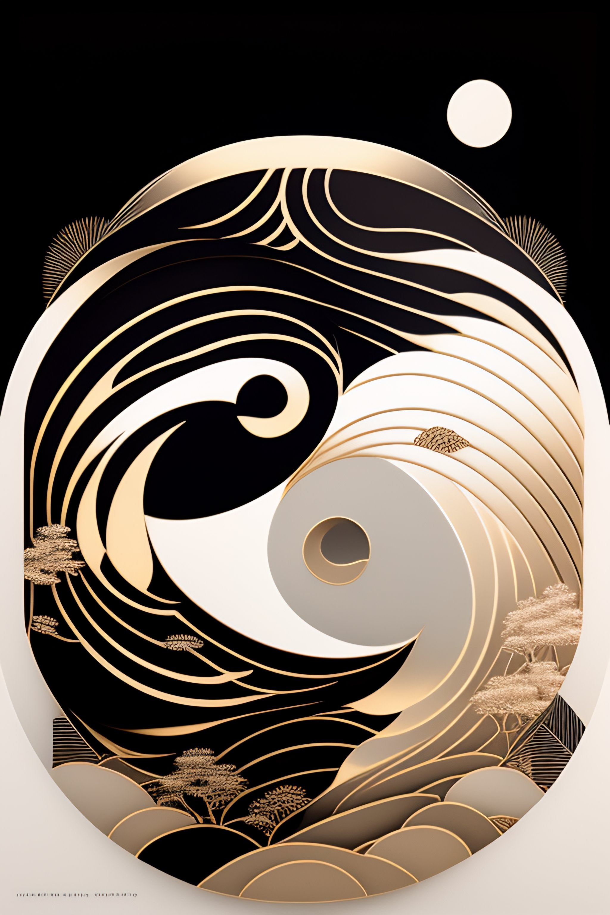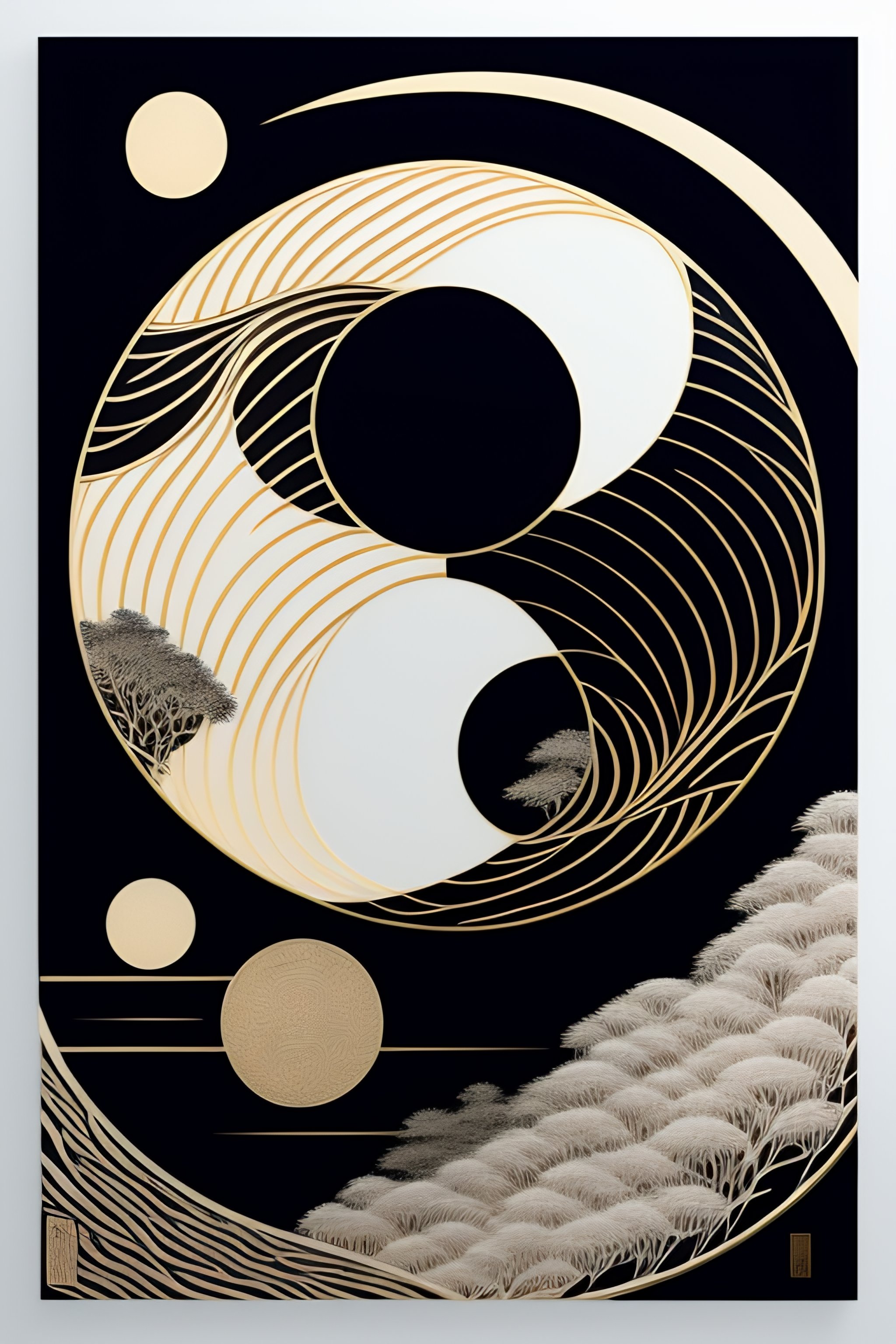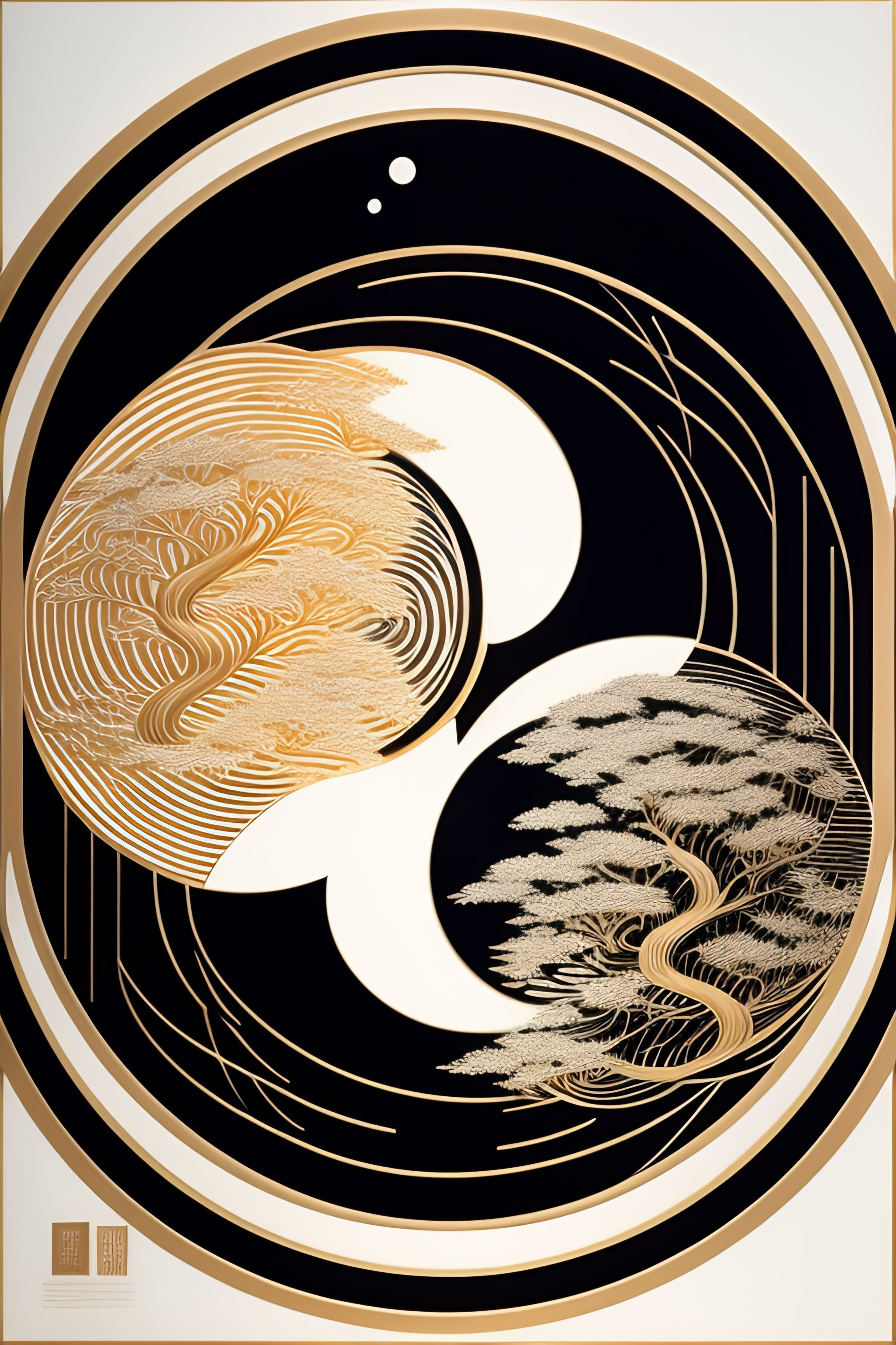 Aesthetic yin yang tiger symbolism minimal simple line art woodblock print by taguchi tomoki, yatsuo no tsubaki, intricate japanese ornamental design elements from the edo period, simple tones, colors and compositions, beautiful ornamental motifs, no artifacts, overwhelmingly beautiful composition, masterpiece, stunning, award winning, lots of white space, lots of negative space, clean minimal design, serene, calm, calming
