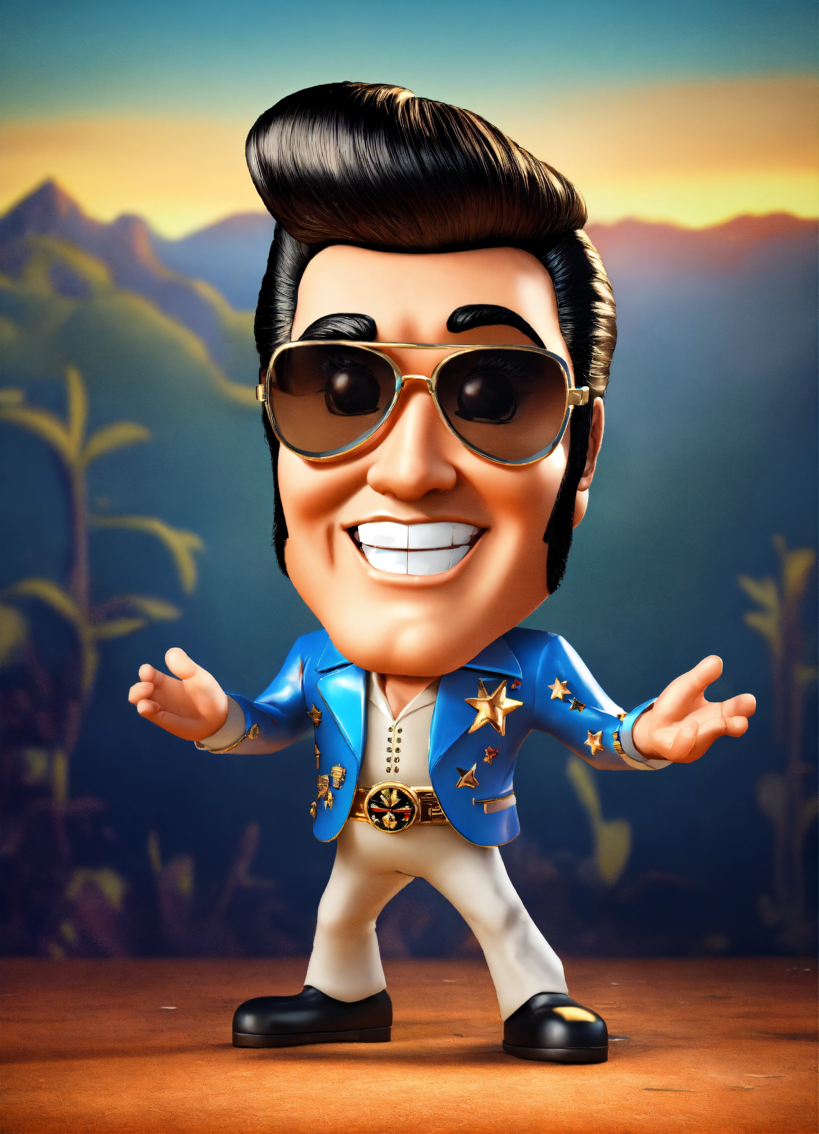Funny elvis presley 3d style cartoon mascot face