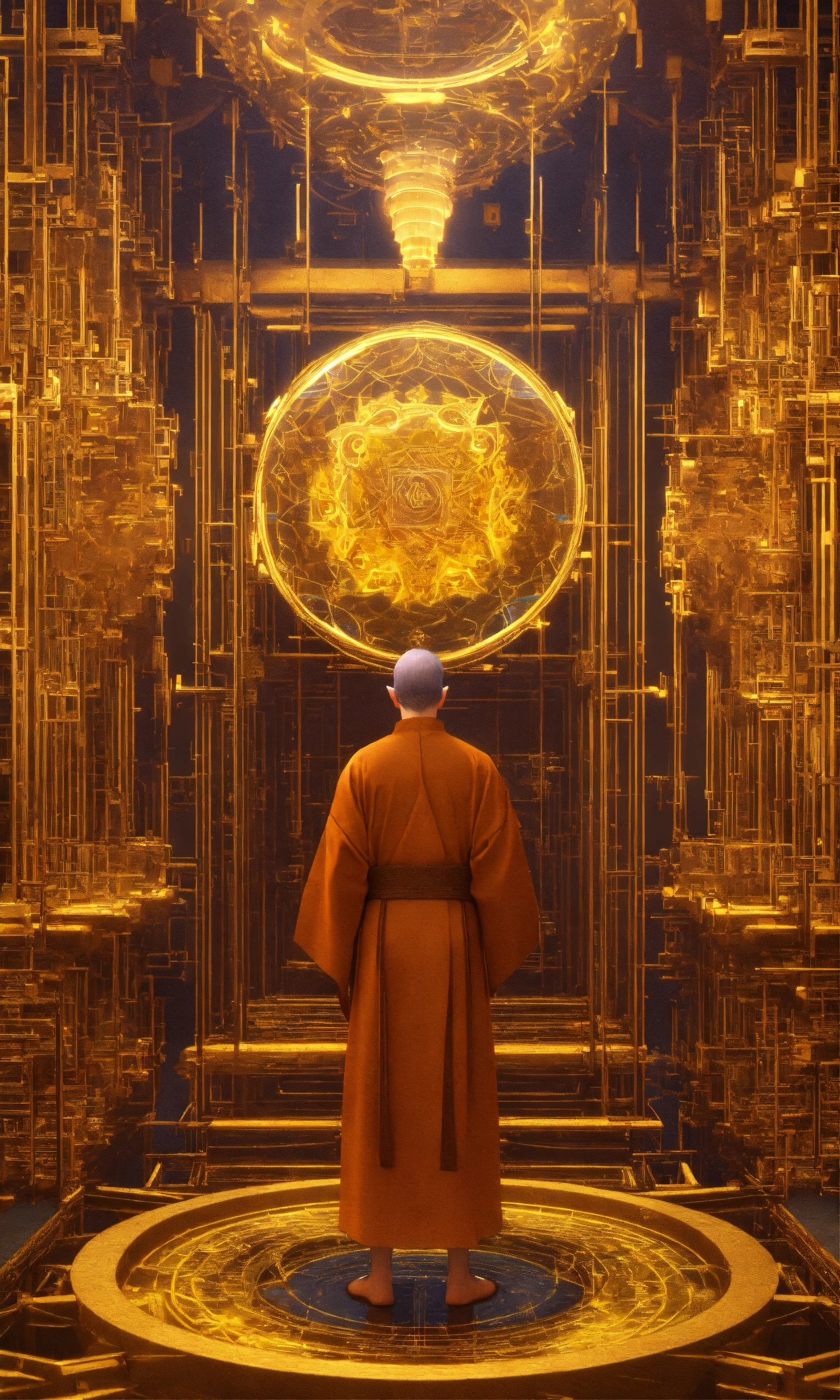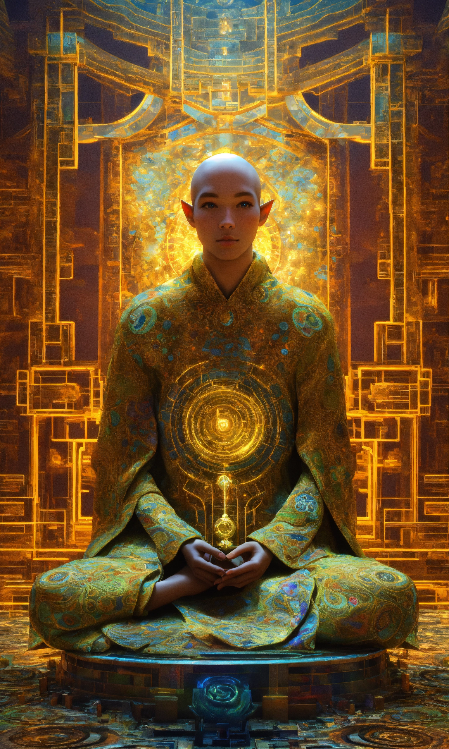 4th dimension complex fractal geometry tesseracts life daoist monk self-transforming elf machines 3d render