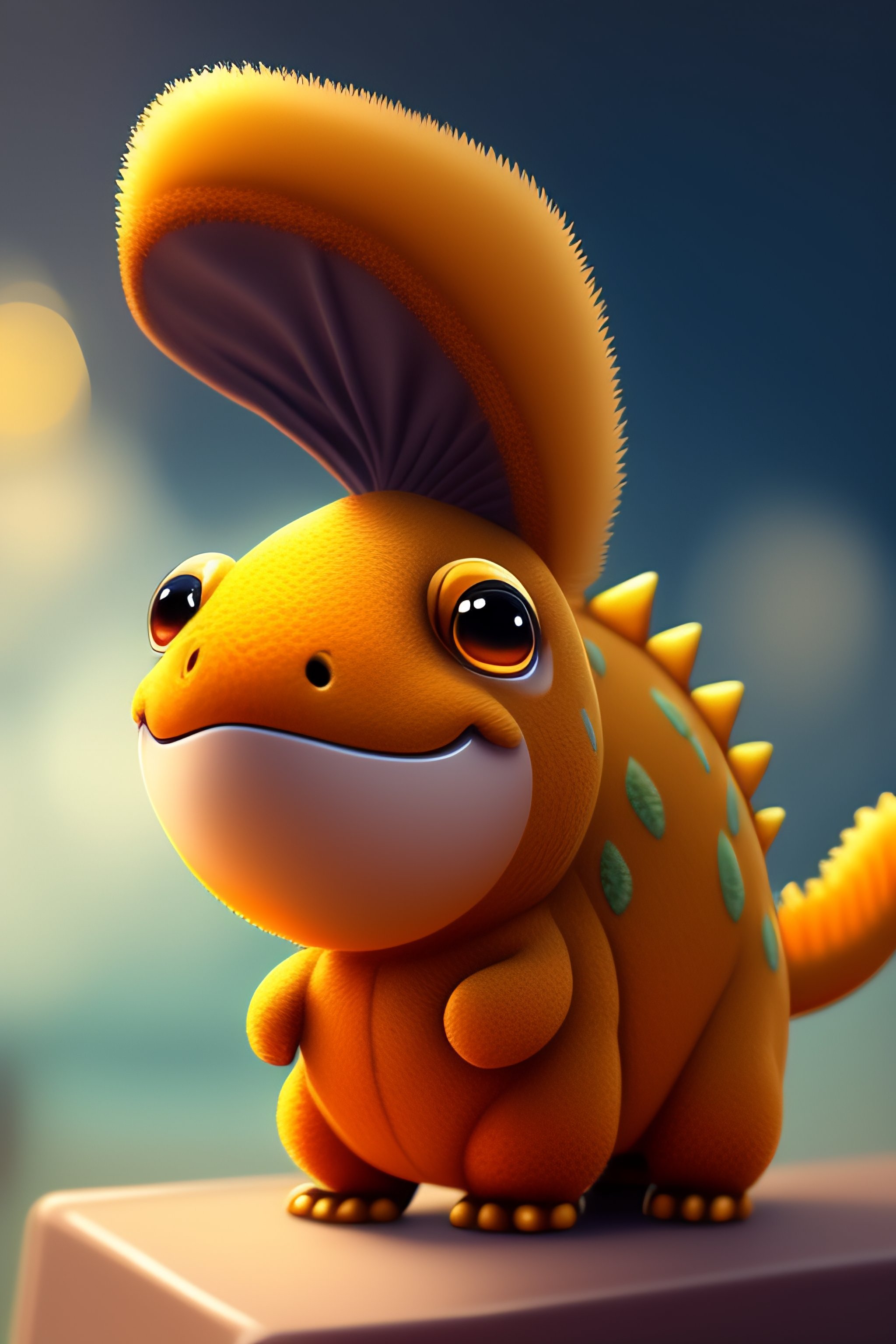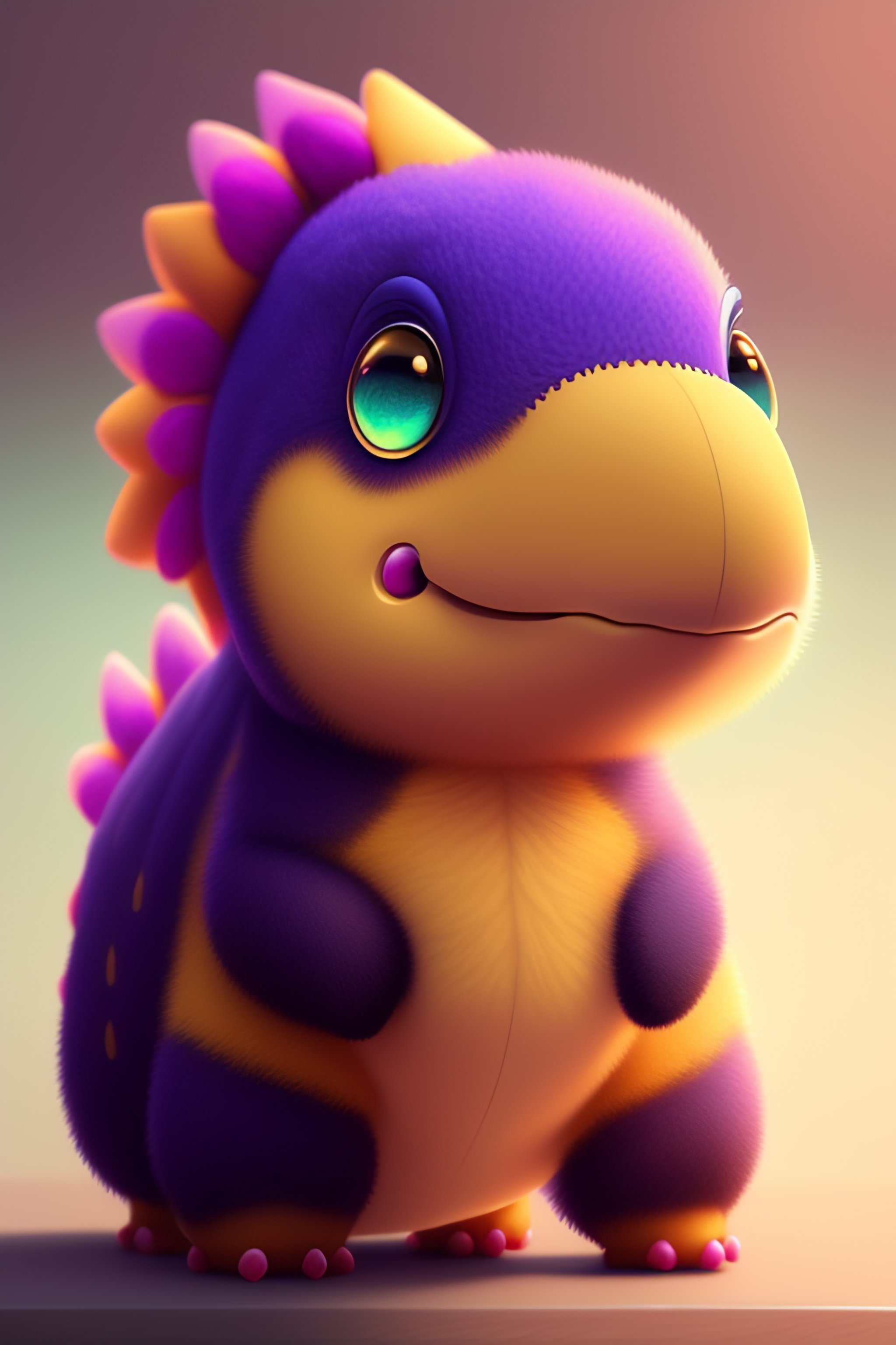 Cute and adorable cartoon fluffy dinosaur, gold, dreamlike, surrealism, super cute, trending on artstation
