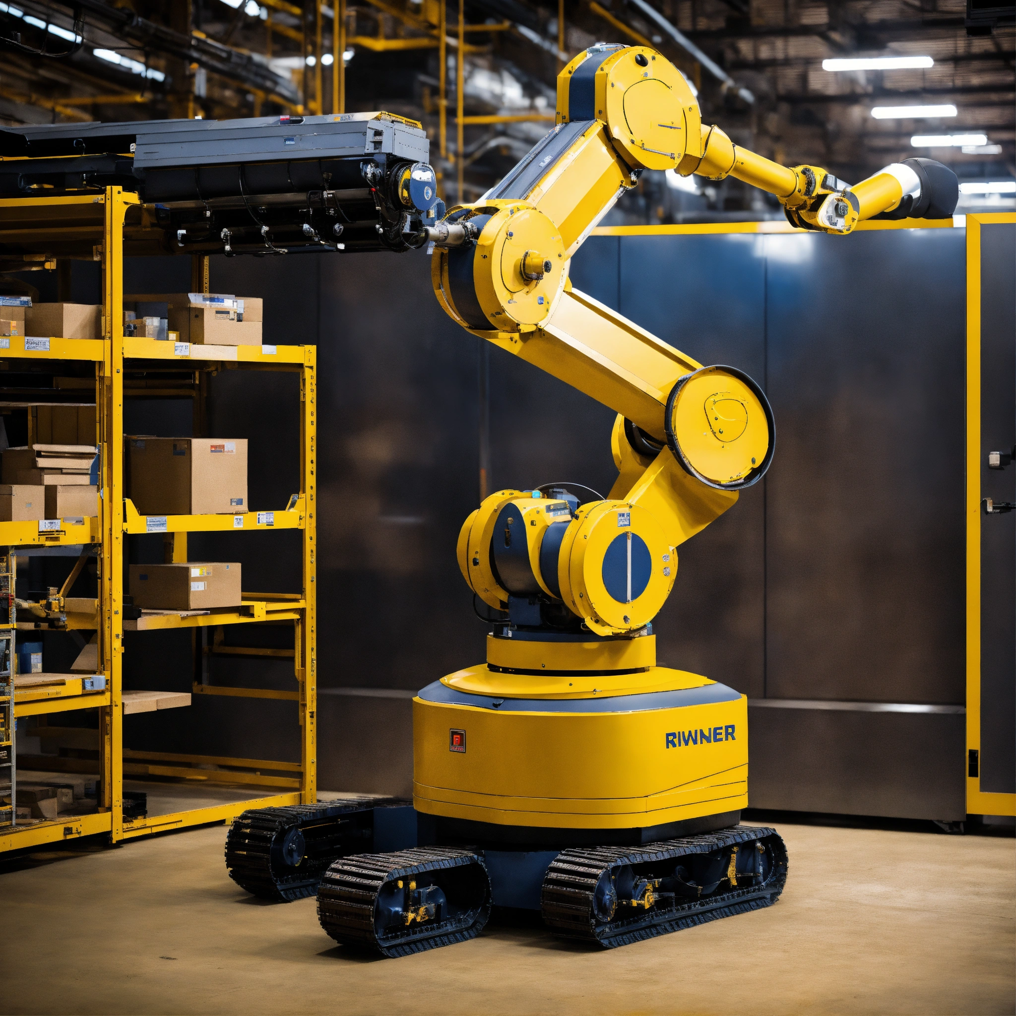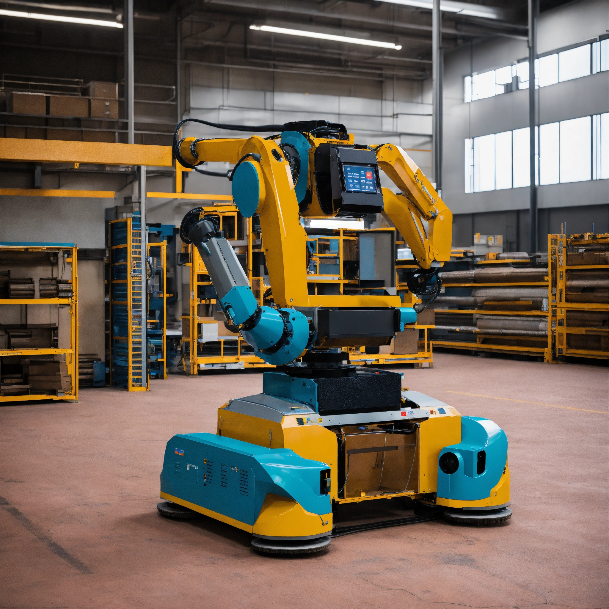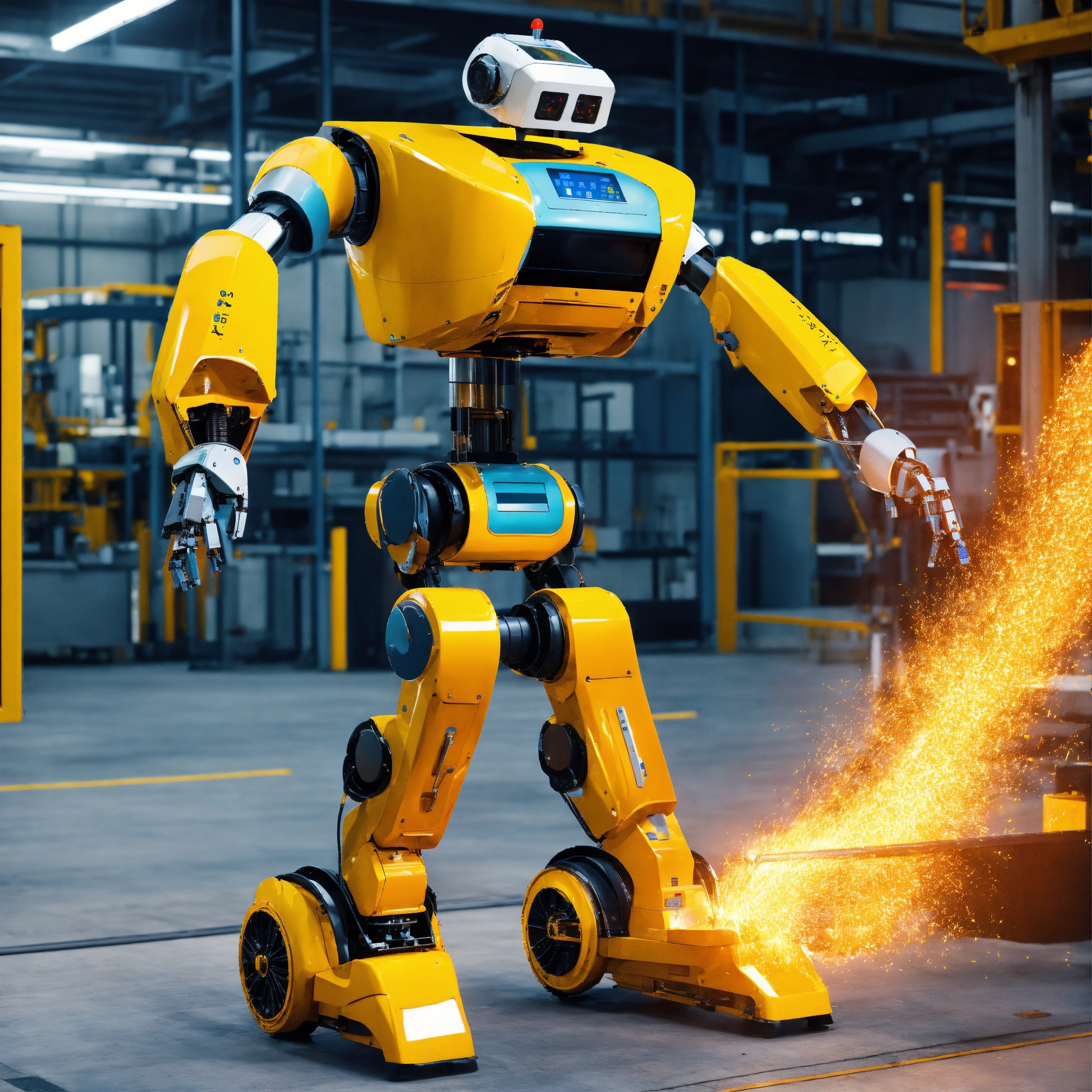The industrial revolution in the industry sector with a nice robot that helps everyone