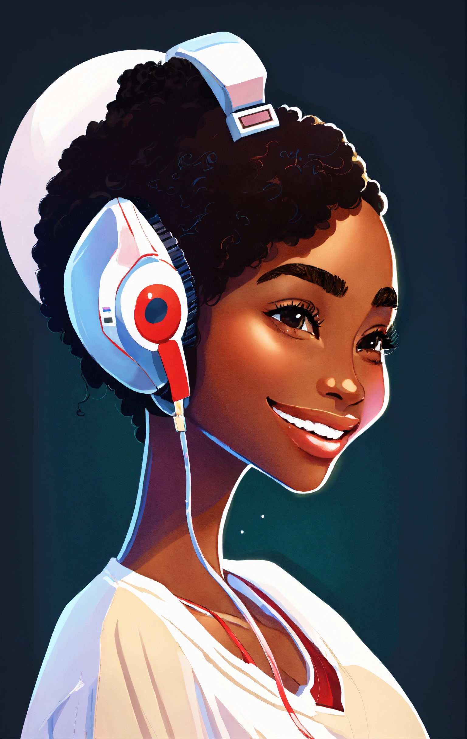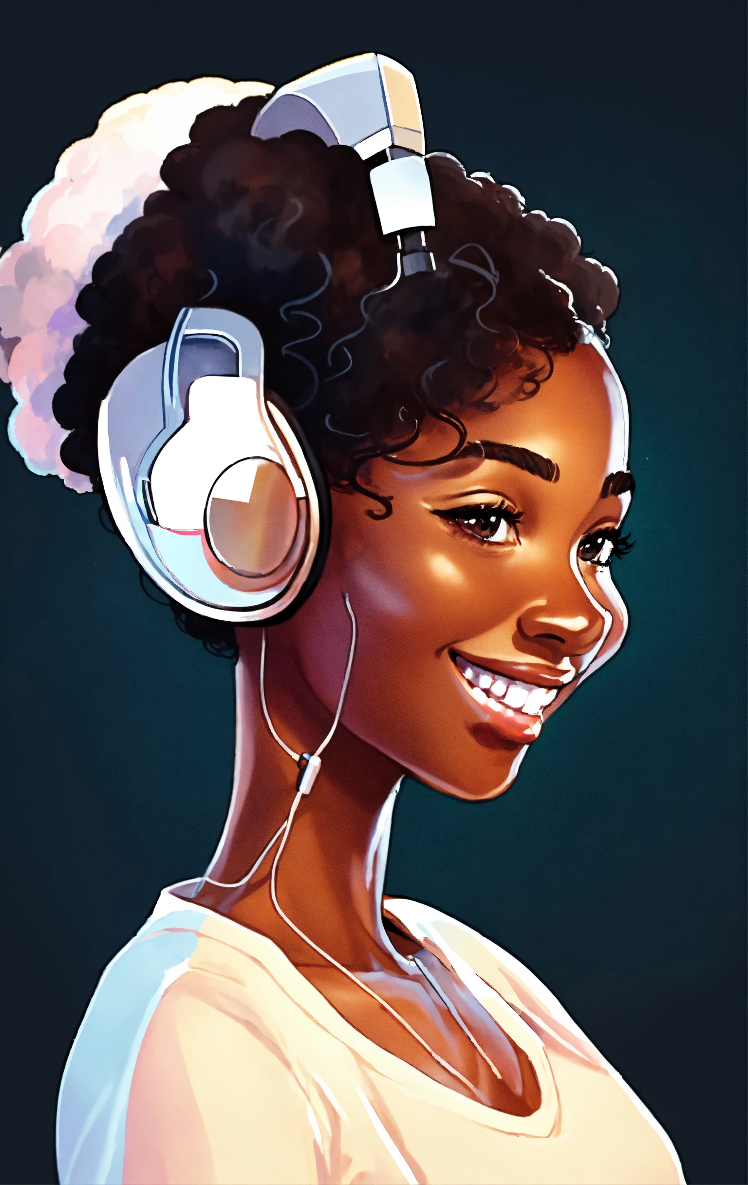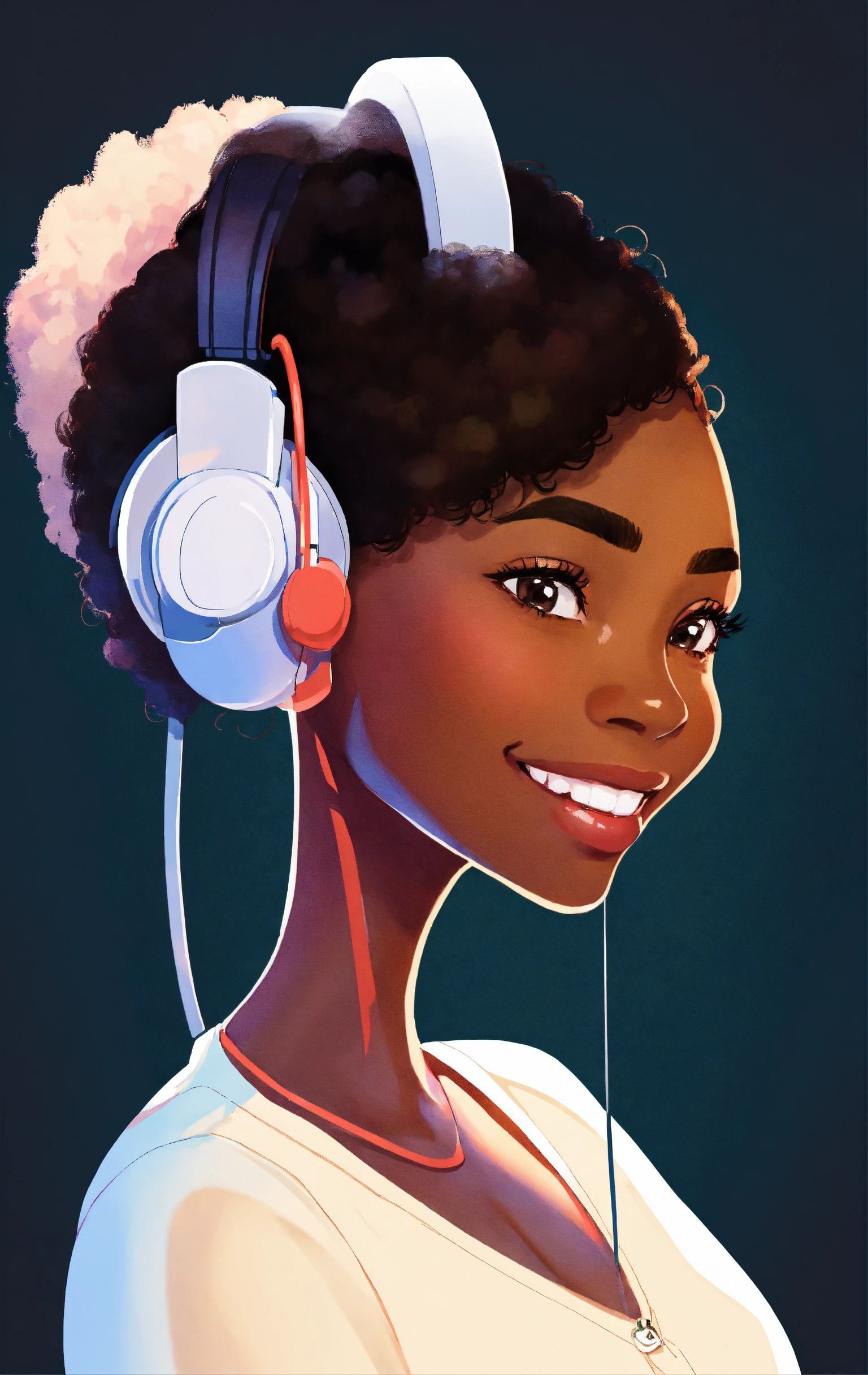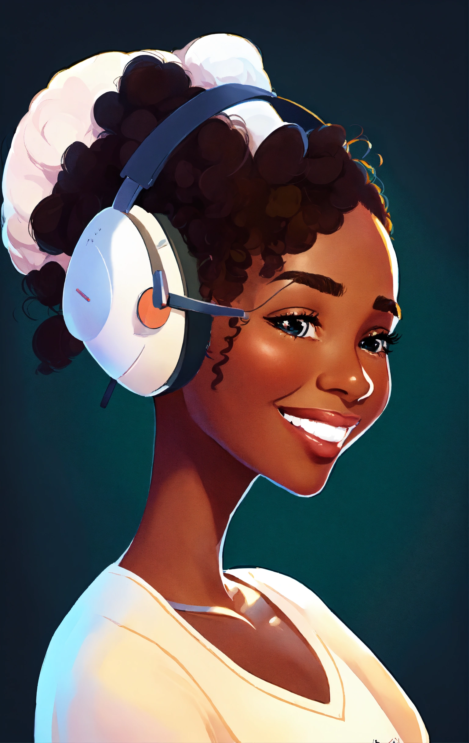 Smiling black woman, typing away at her computer, award winning children's book illustration style, 2d illustration, white background, front view