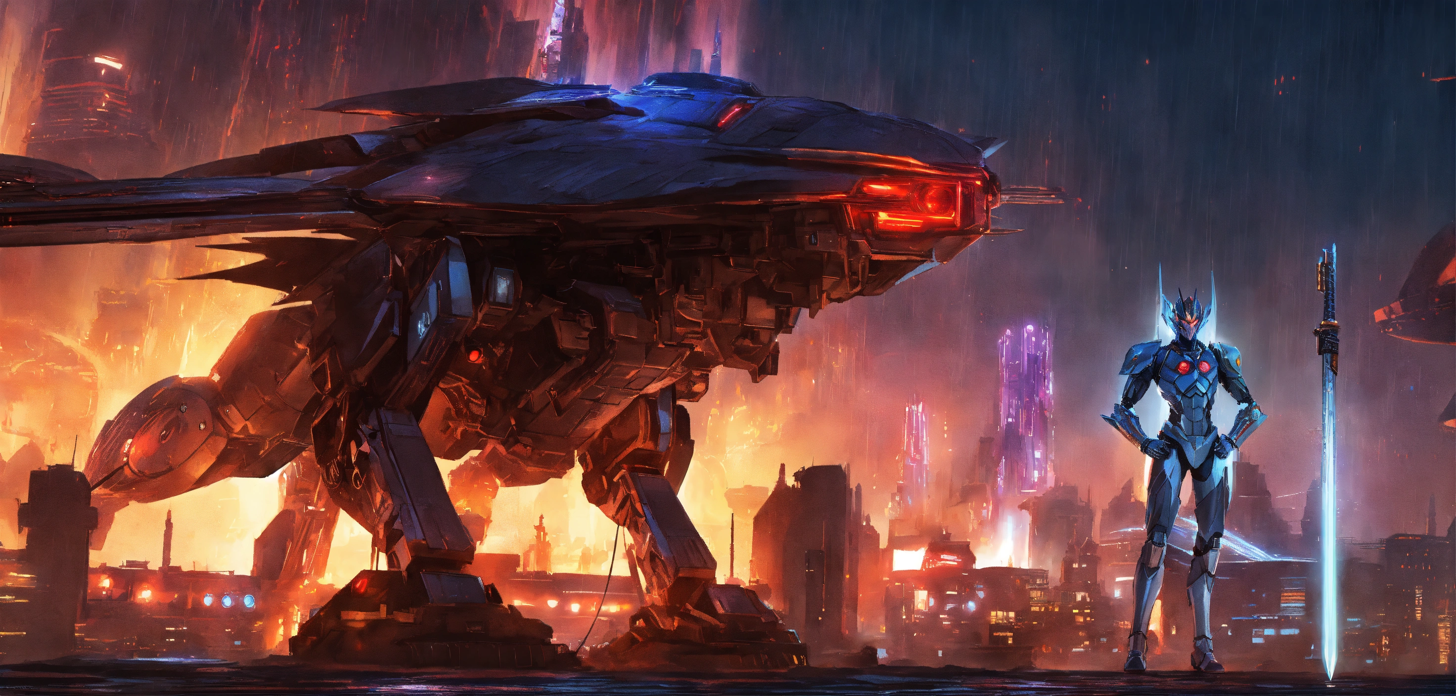 Adamantium, guyver, tron, hybrid vibranium dracul-bat armor, casshern, asgardian, thanagarian legions, ninja, nosferatu, athletic cyborg, amazonians of 100th-c, dracul samurai muscular hulk buster led humanoid, rainy, wet, batwing, galaxy tri-wing star cruiser, blade runner mega cityscape holding 9965 a.d. advanced laser gauntlets, star wars blasters, kyber railguns & ancient h. r. giger, gears of war mega guns, things to come, quetzal armored streamline form, advanced futuristic civilized backdrop densely populated world of metallic chrome, werewolf, titanic bat-zeppelin, rom the space knight, galactica meta-bat cylon, long spined plasma-cape, alien cyborg, flying batmobile, fiery exhaust, style of davinci, neil gaiman, picasso, laurie greasley, ghibli, akira, akkadian, atlantis, kryptonian, megatron live, tomiyama, gene roddenberry, mitsuteru yokoyama, genshin impact, nuke vfx, surreal acrylic, kyber-katana & wakizashi, 8k, vibrant dark color, deviantart, detailed cinematic quality
