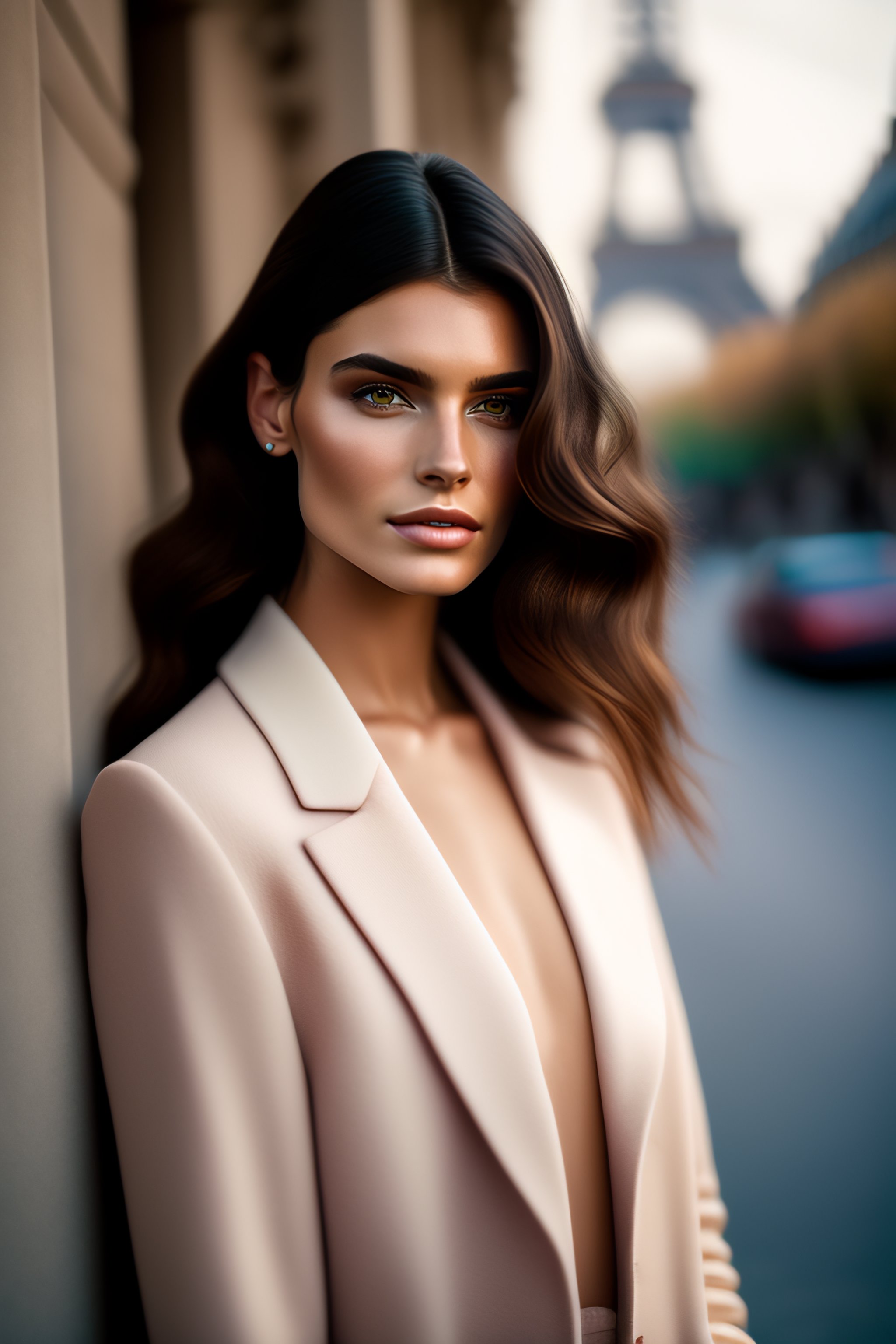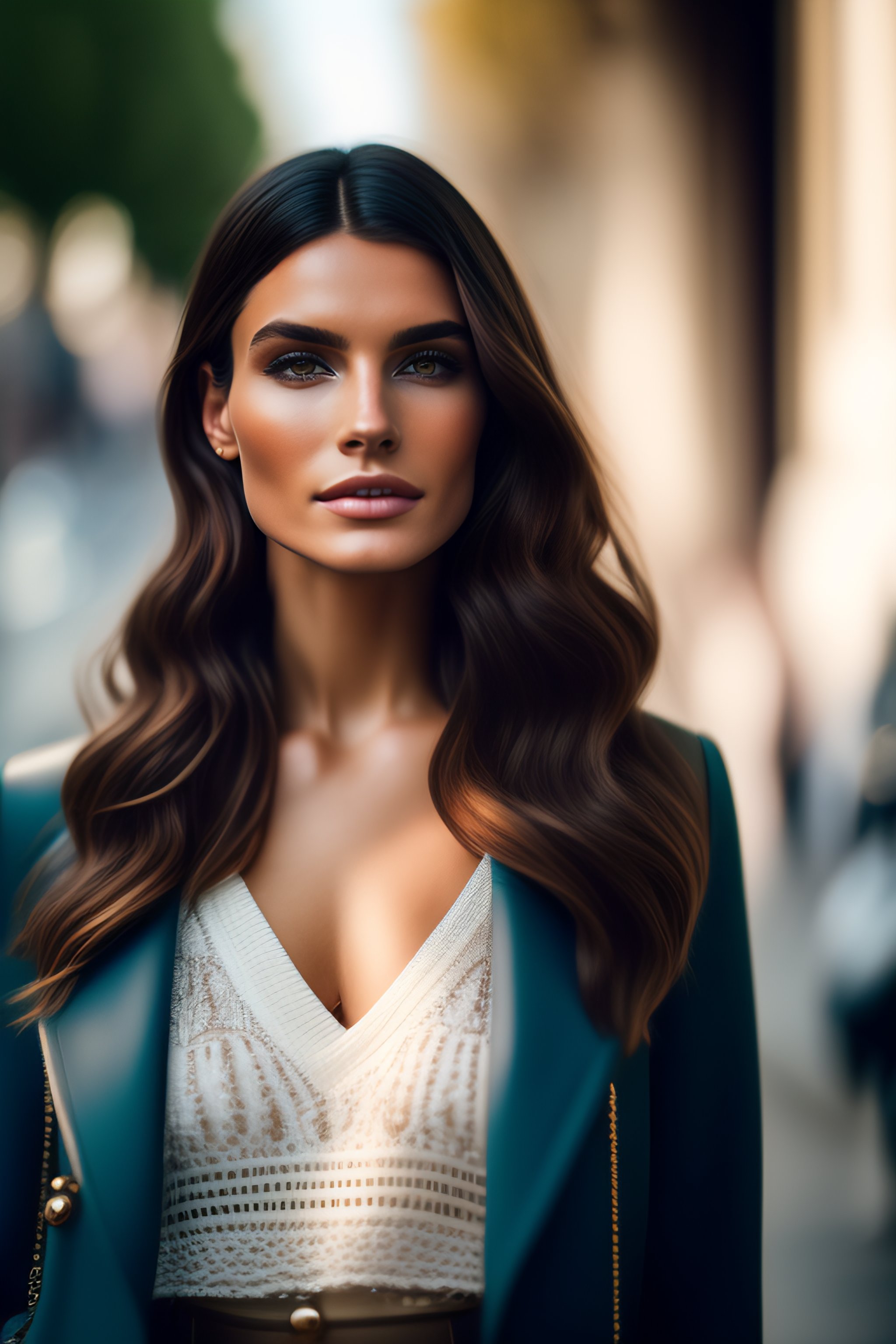 Portrait of brunette model wearing casual spring outfit, full body, 100% real, focused in cloths, natural light, hyper realistic, paris, ultra-detailed, no filter, depth of field, fashion, iso 400, photorealistic, kinfolk magazine. film grain, 8k