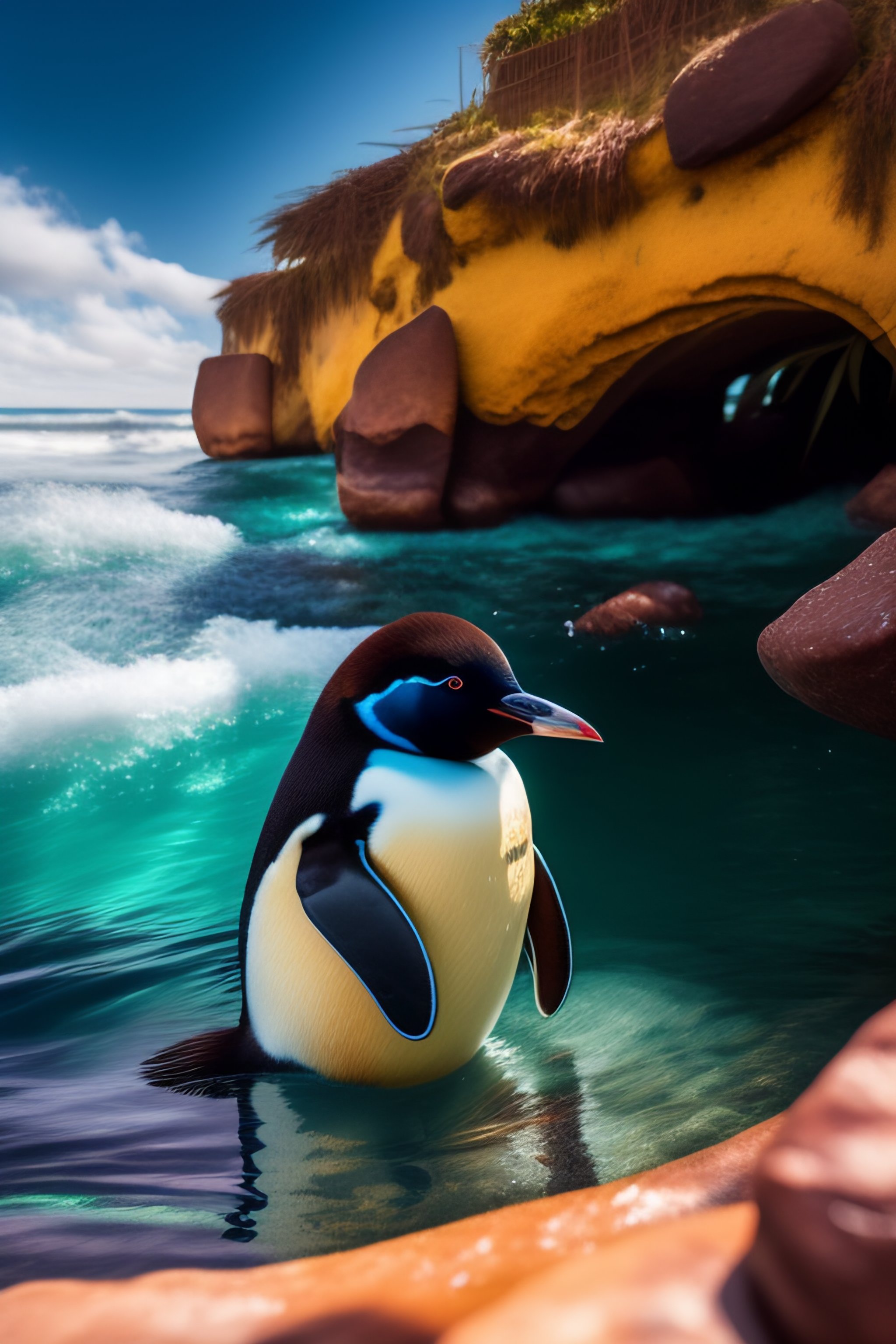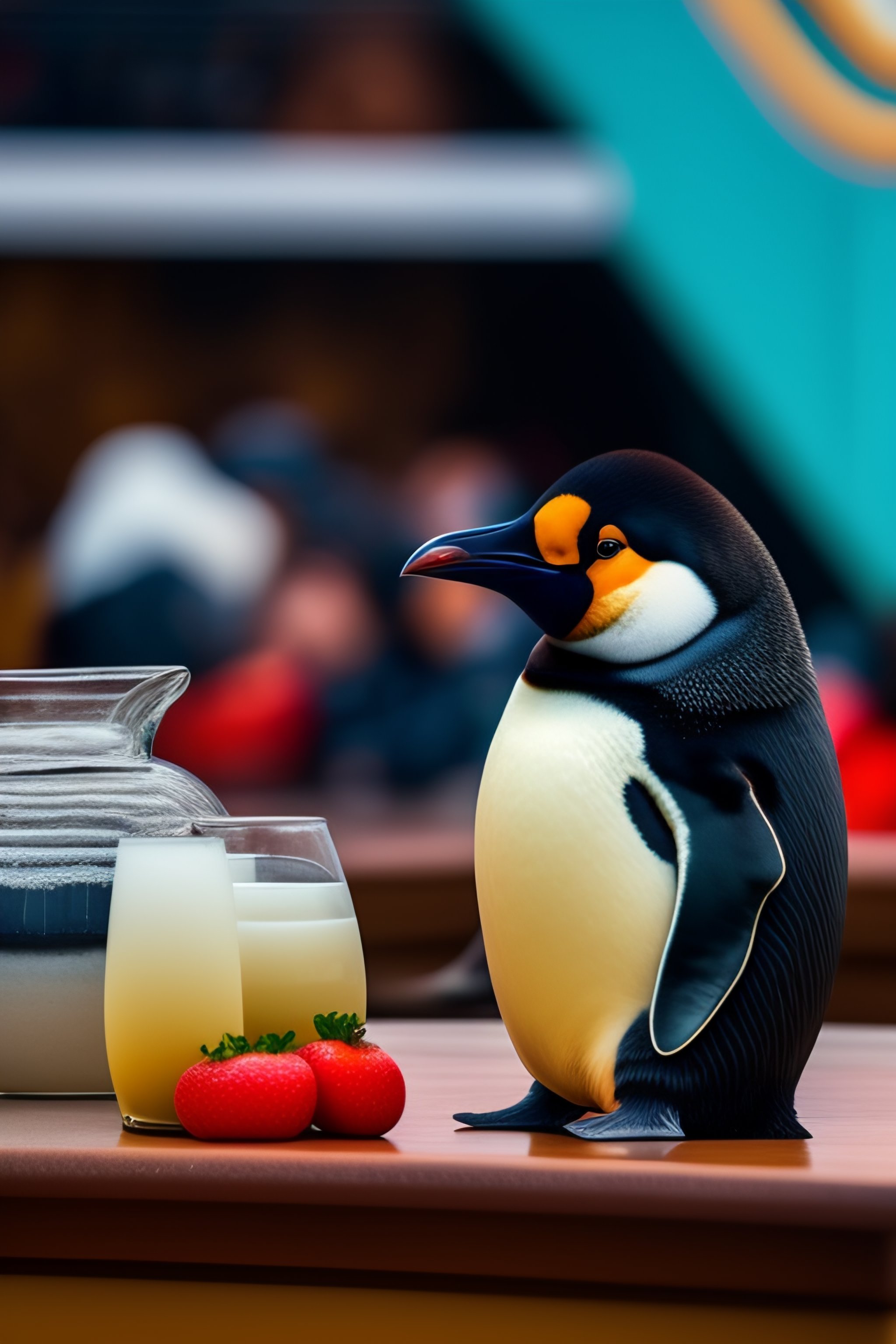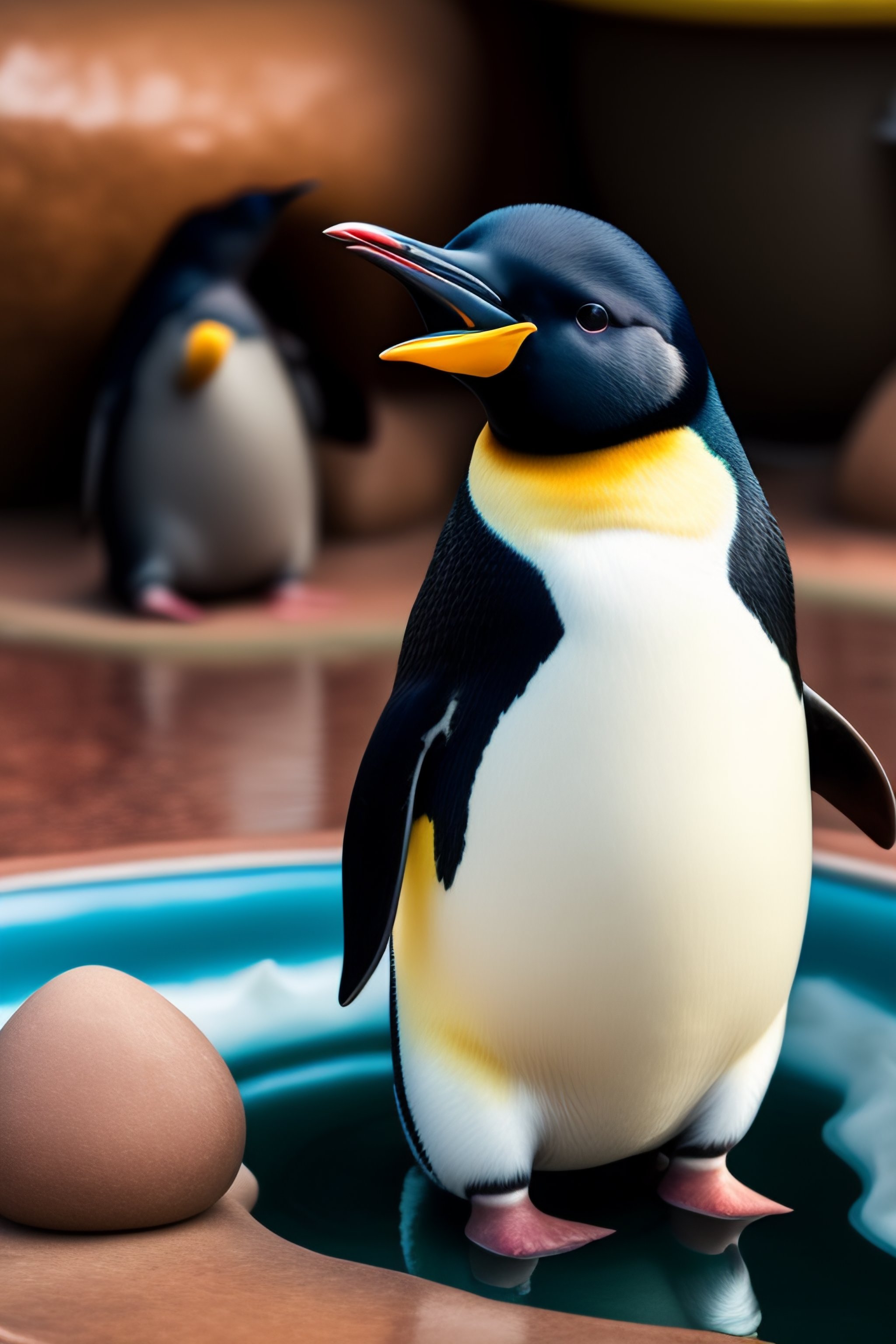 Un mayordomo pinguino que este sosteniendo una bandeja de plata