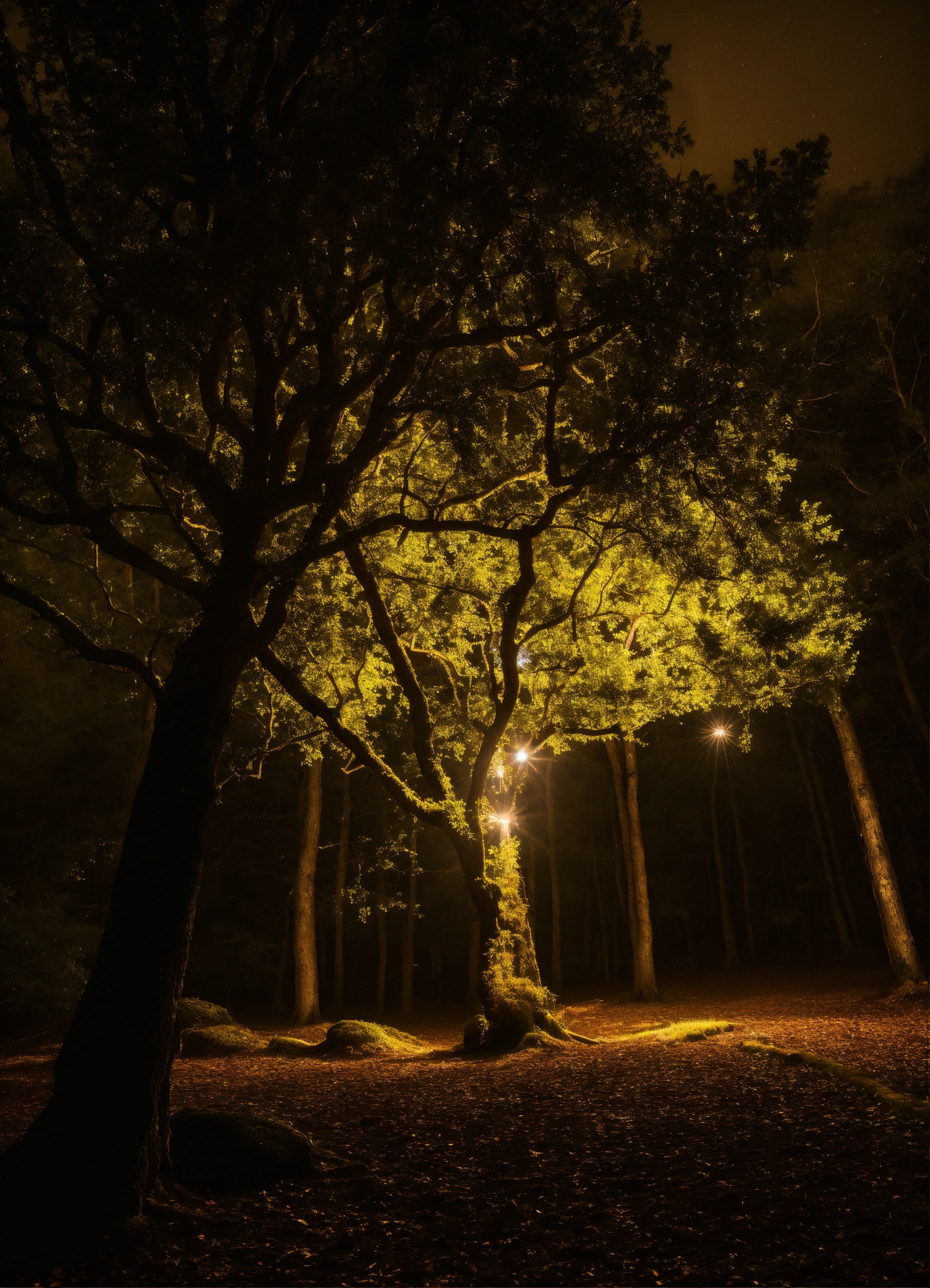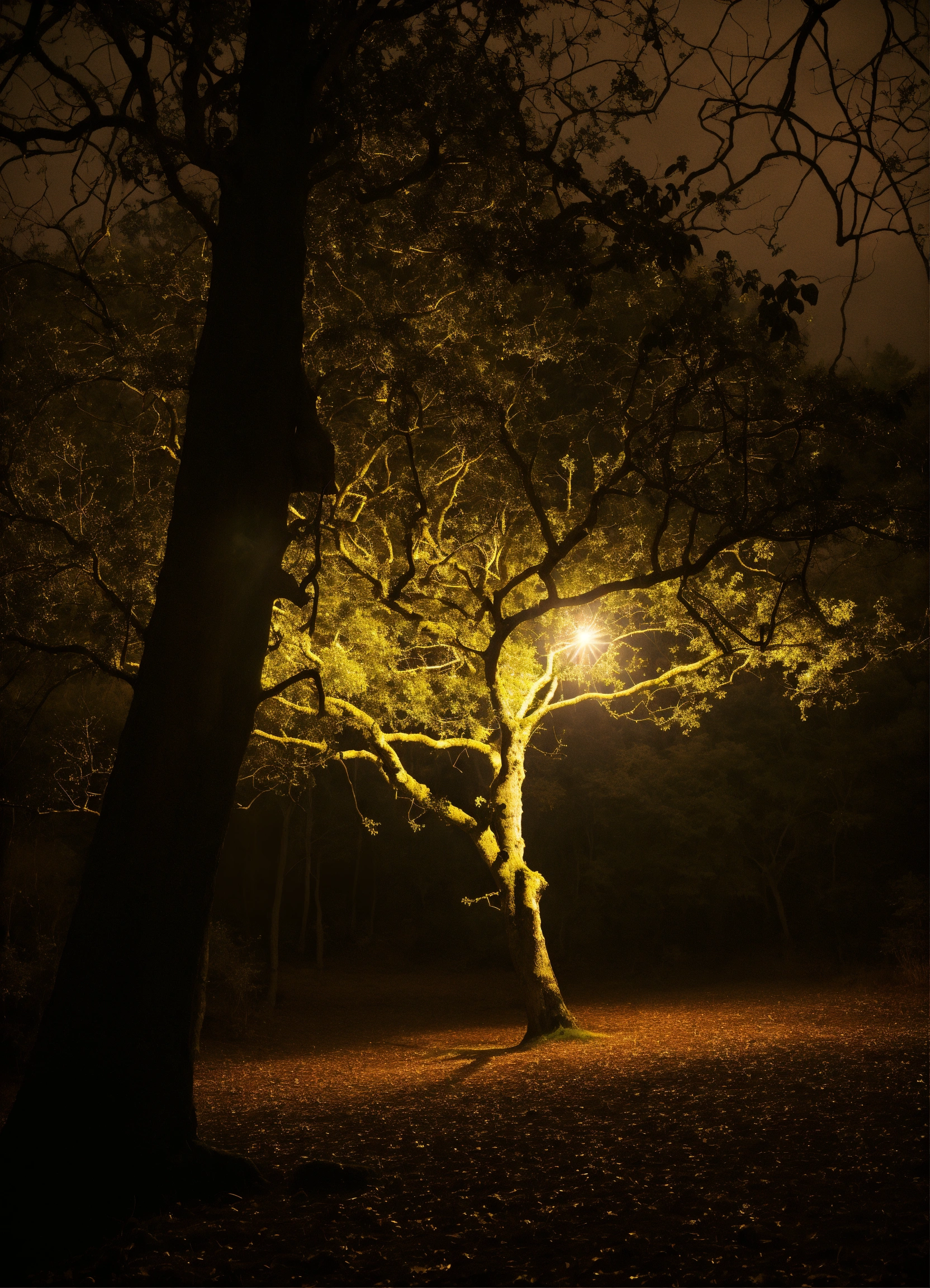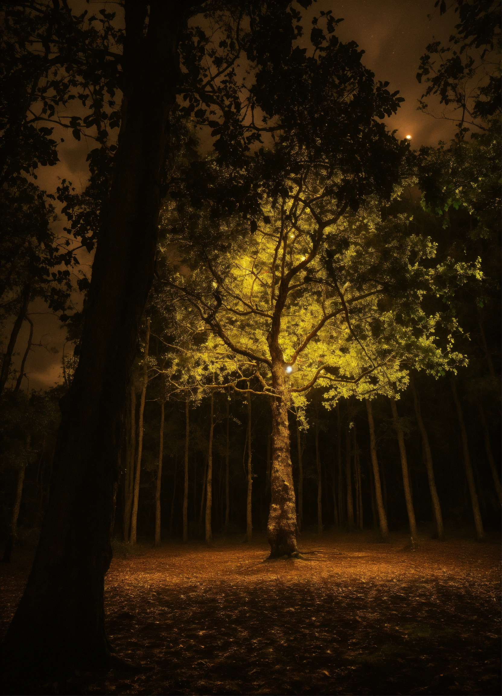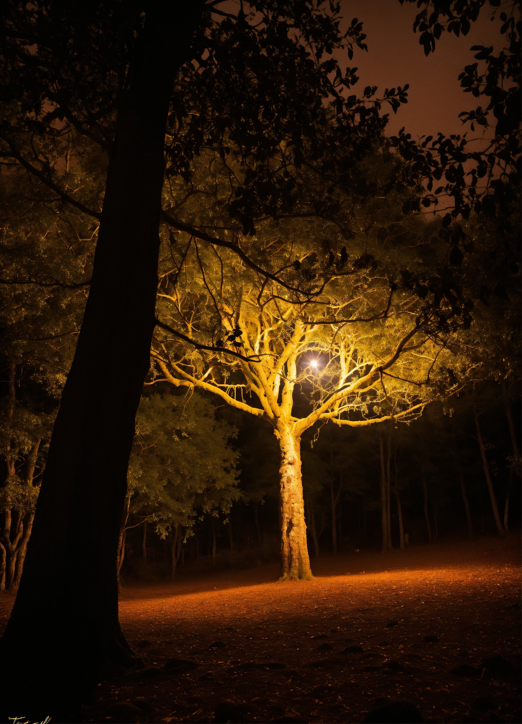 Un árbol en un bosque con la palabra wicked game tallada en el de noche