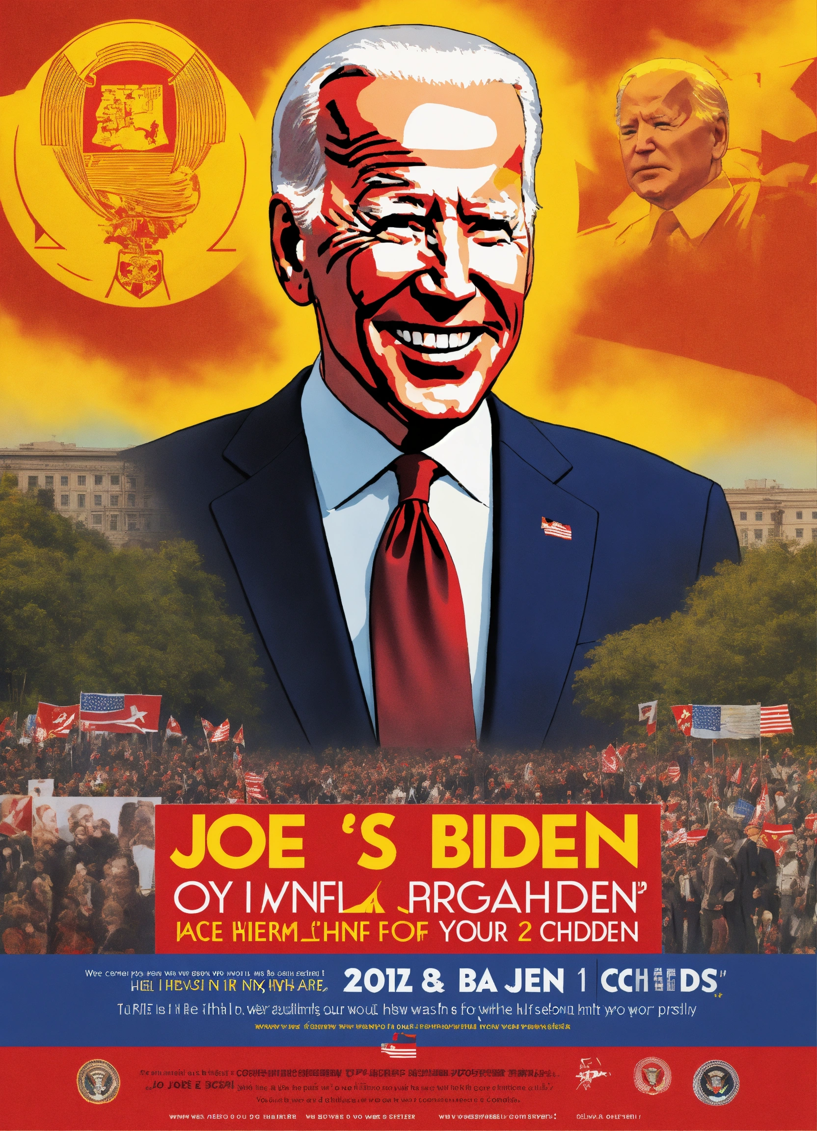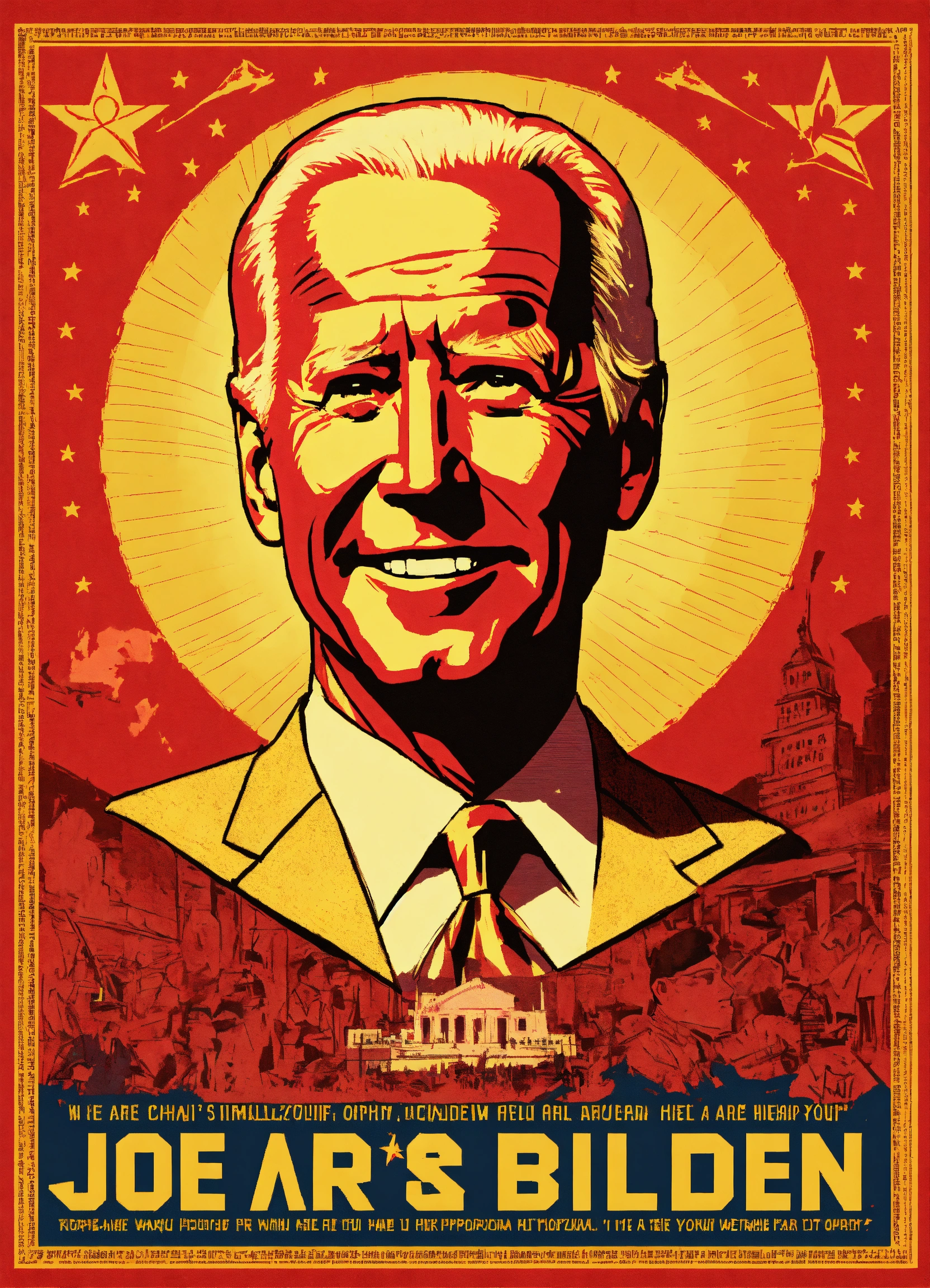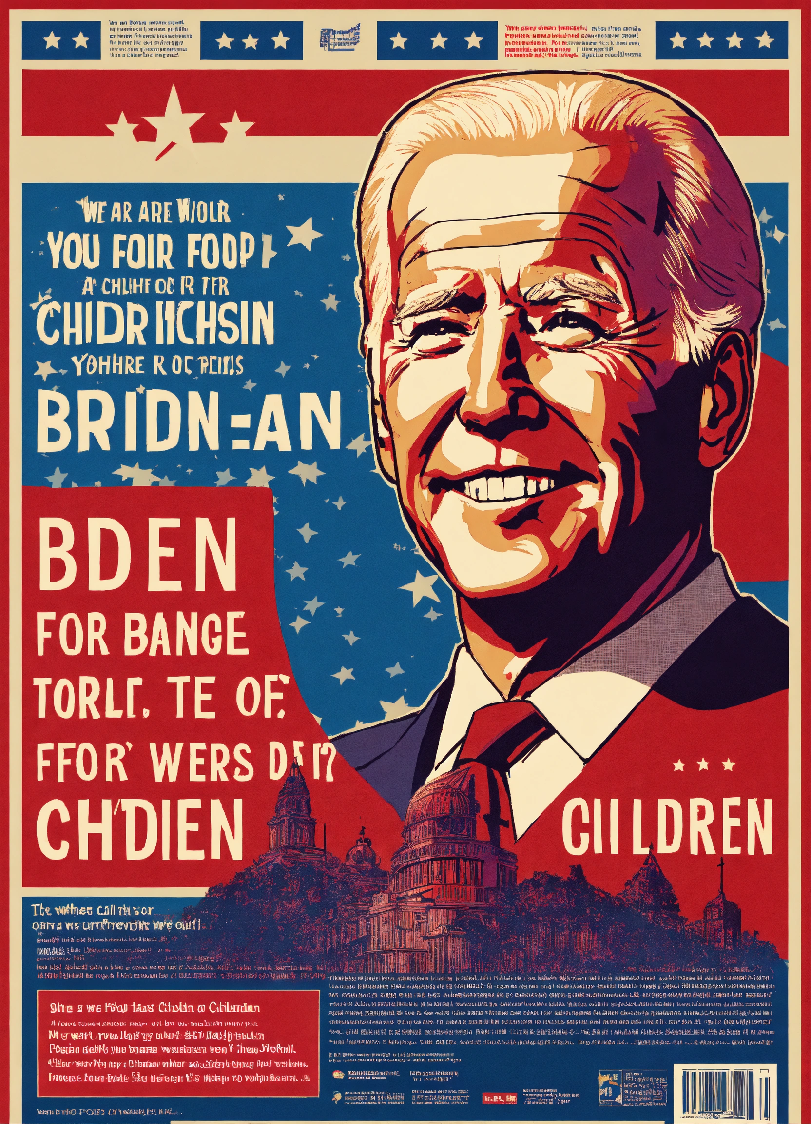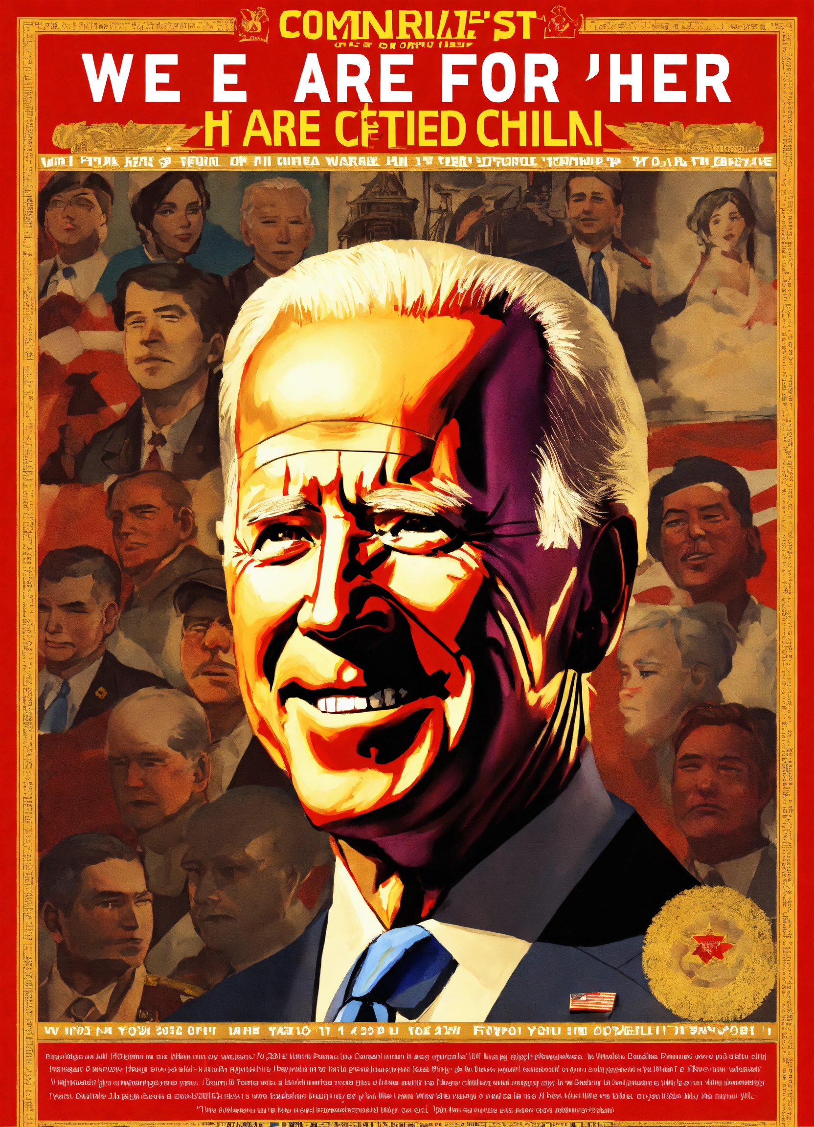Joe biden's bust on a communist propaganda flyer with the words we are here for your children at the bottom of the page