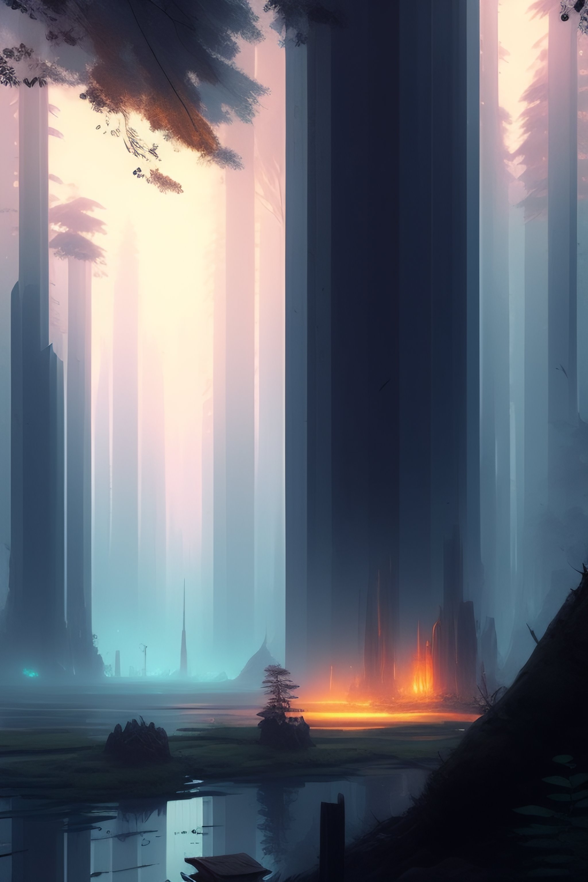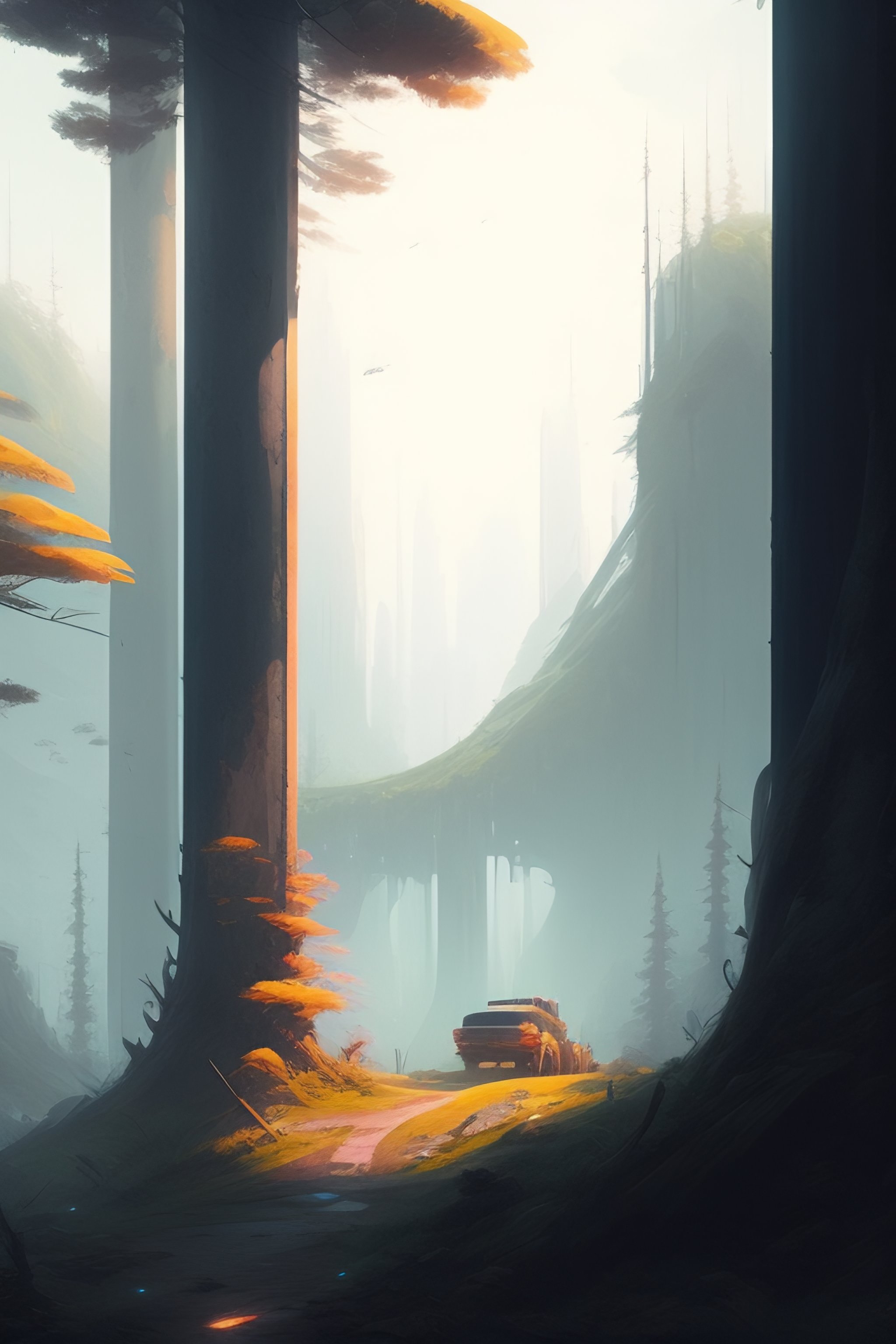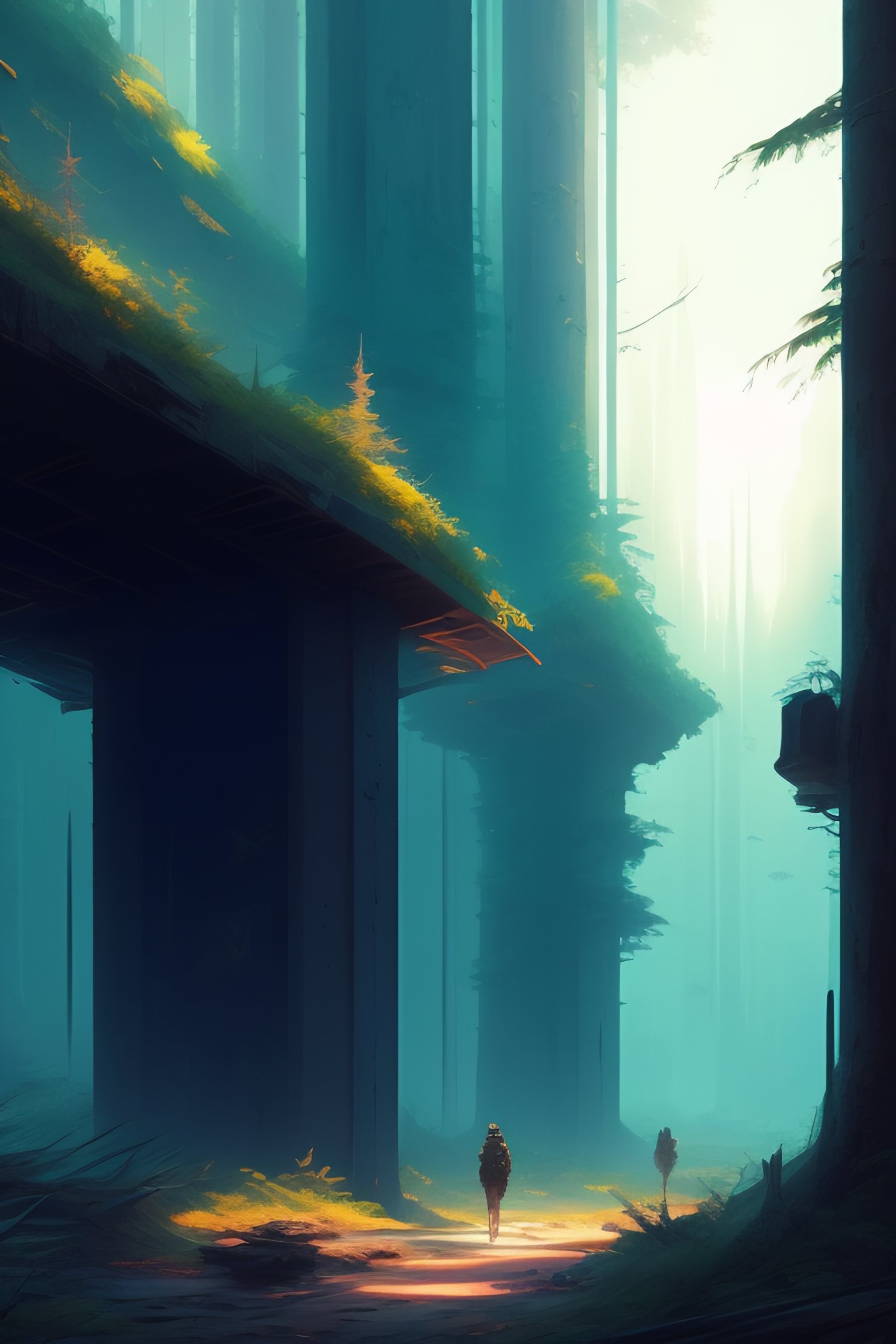Post apocalyptic city reclaimed by the forest, illustration, art by jordan grimmer and greg rutkowski