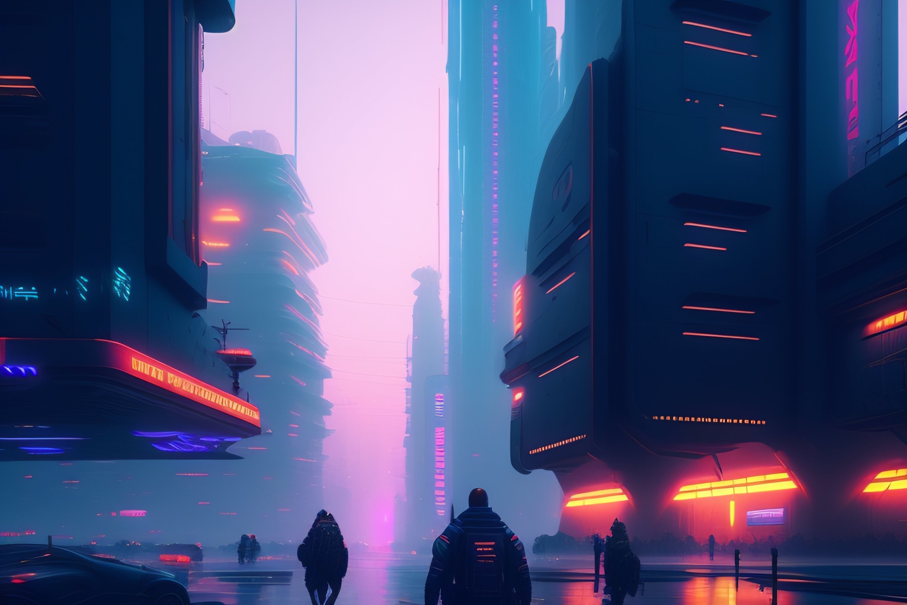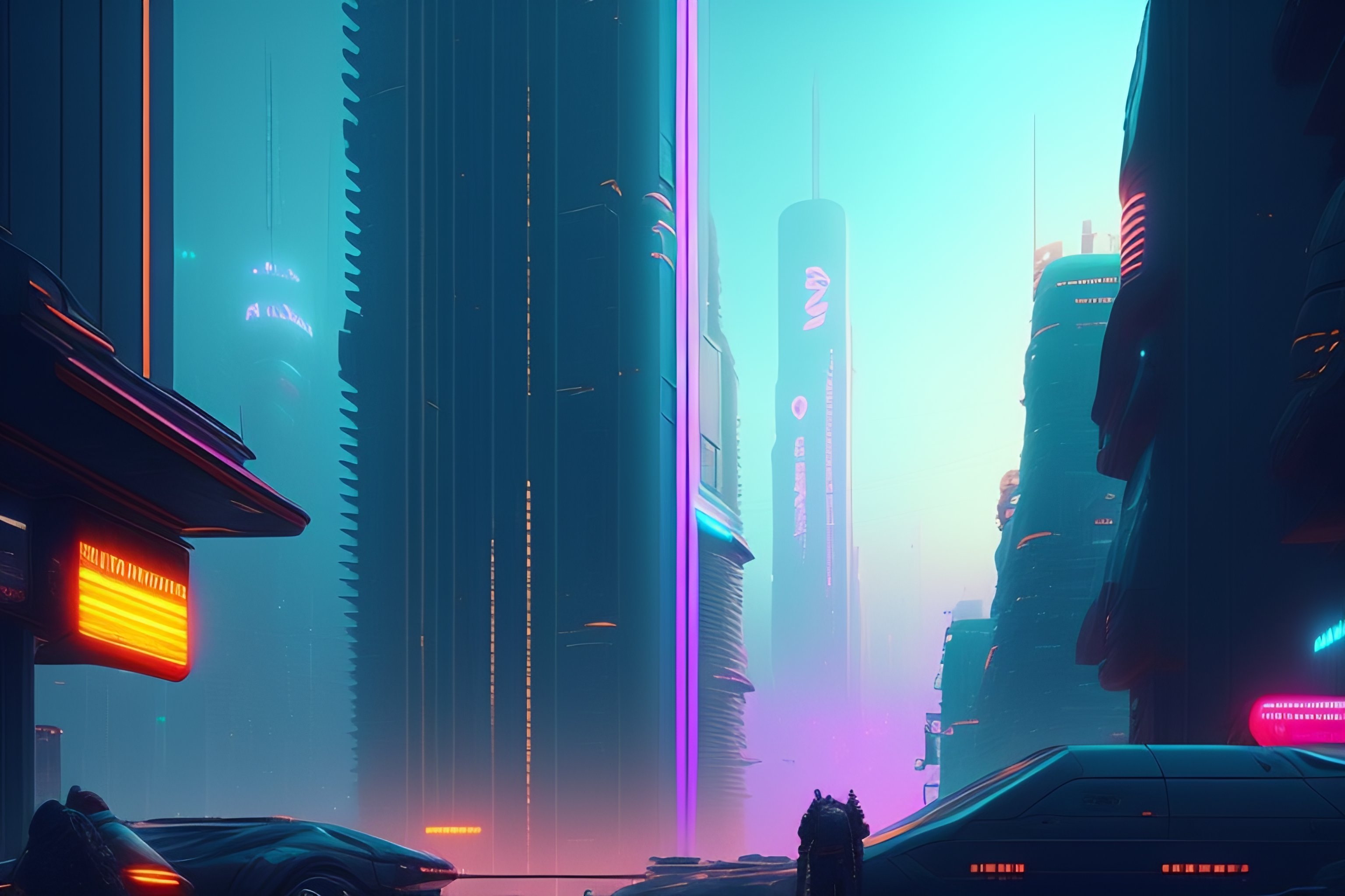 Wide shot of cyberpunk city, many buildings, 8k, extremely detailed, neon signs, ismail inceoglu, greg rutkowski, artstation