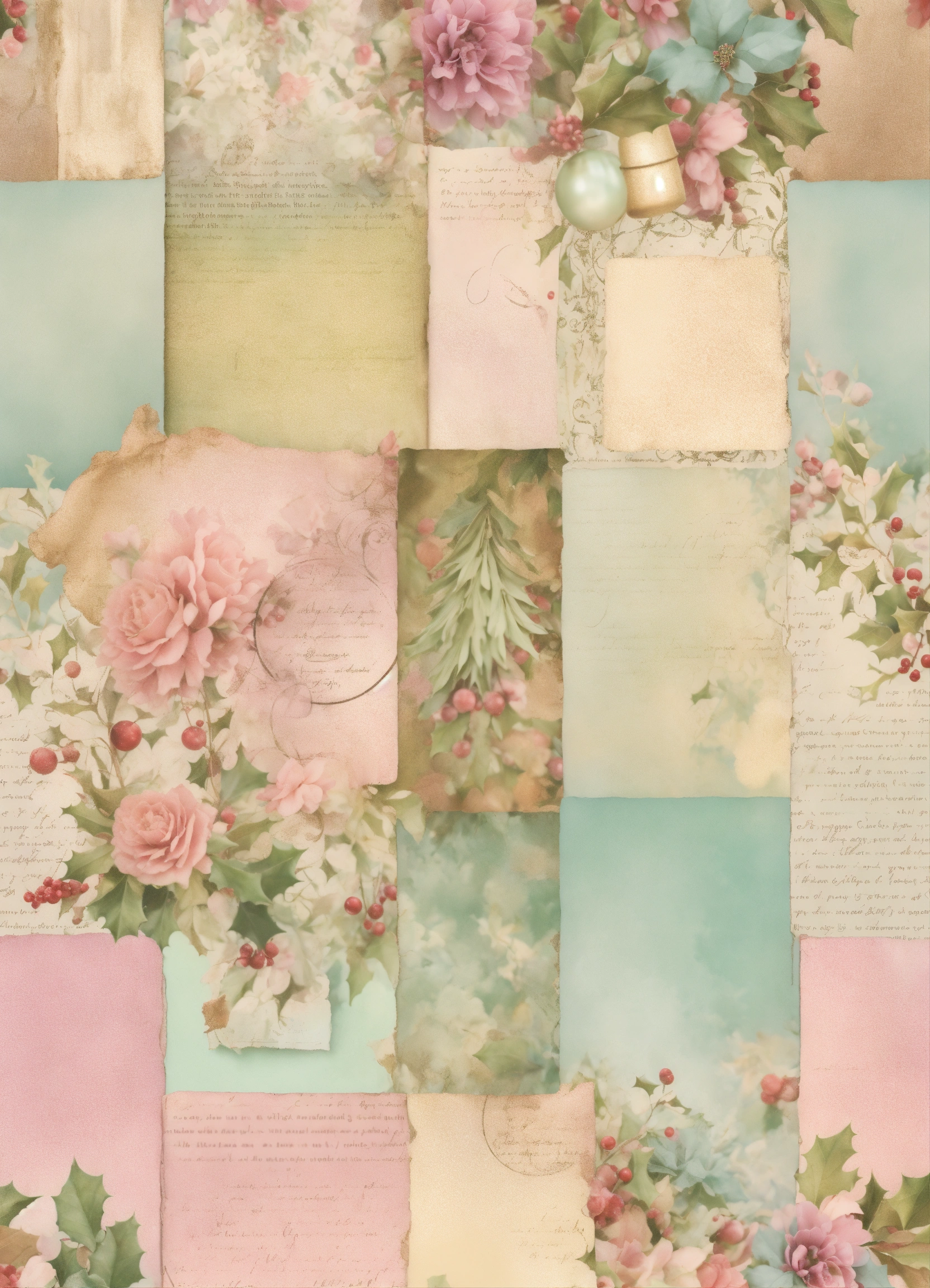 Shabby chic dreamy mist pastel colors junk journaling whimsical christmas country cottage vinecellar seamless background full page