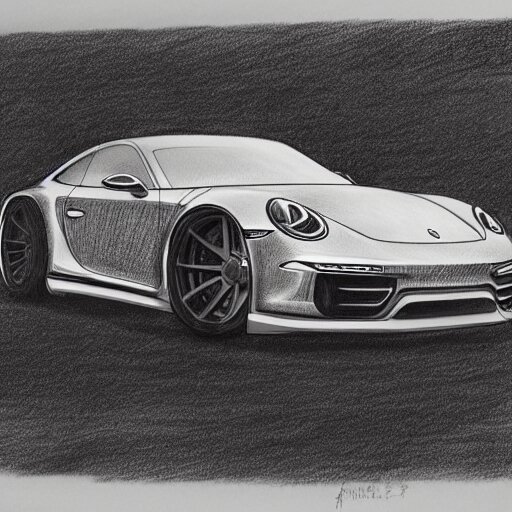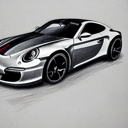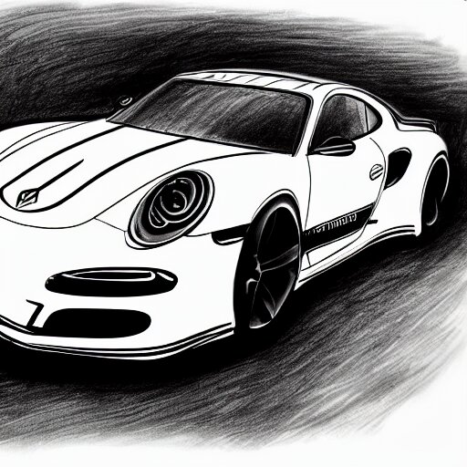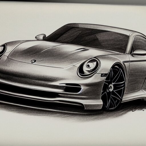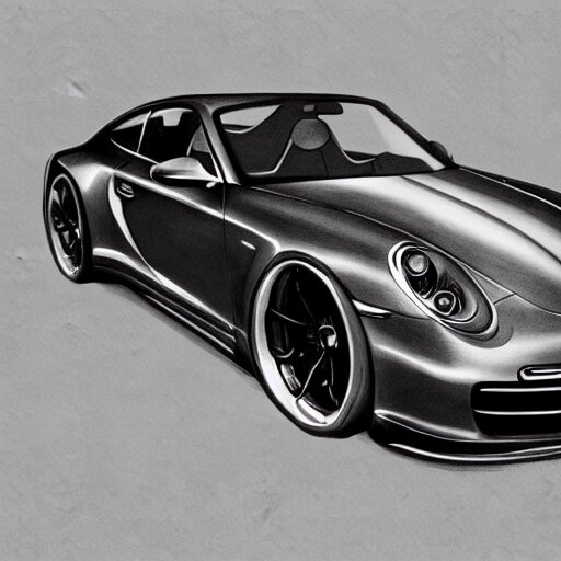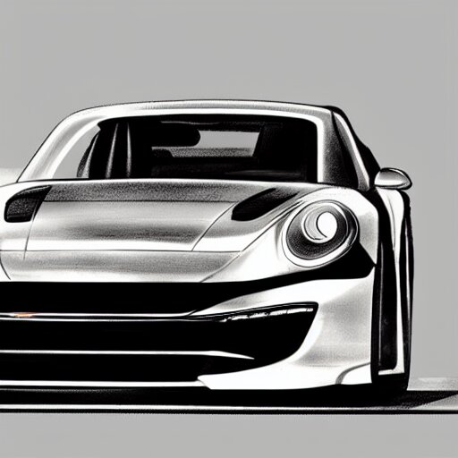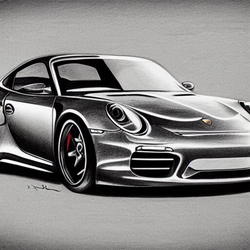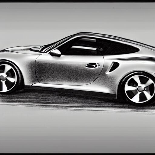 Pencil drawing of concept for a german muscle car inspired by a porsche 911 turbo s