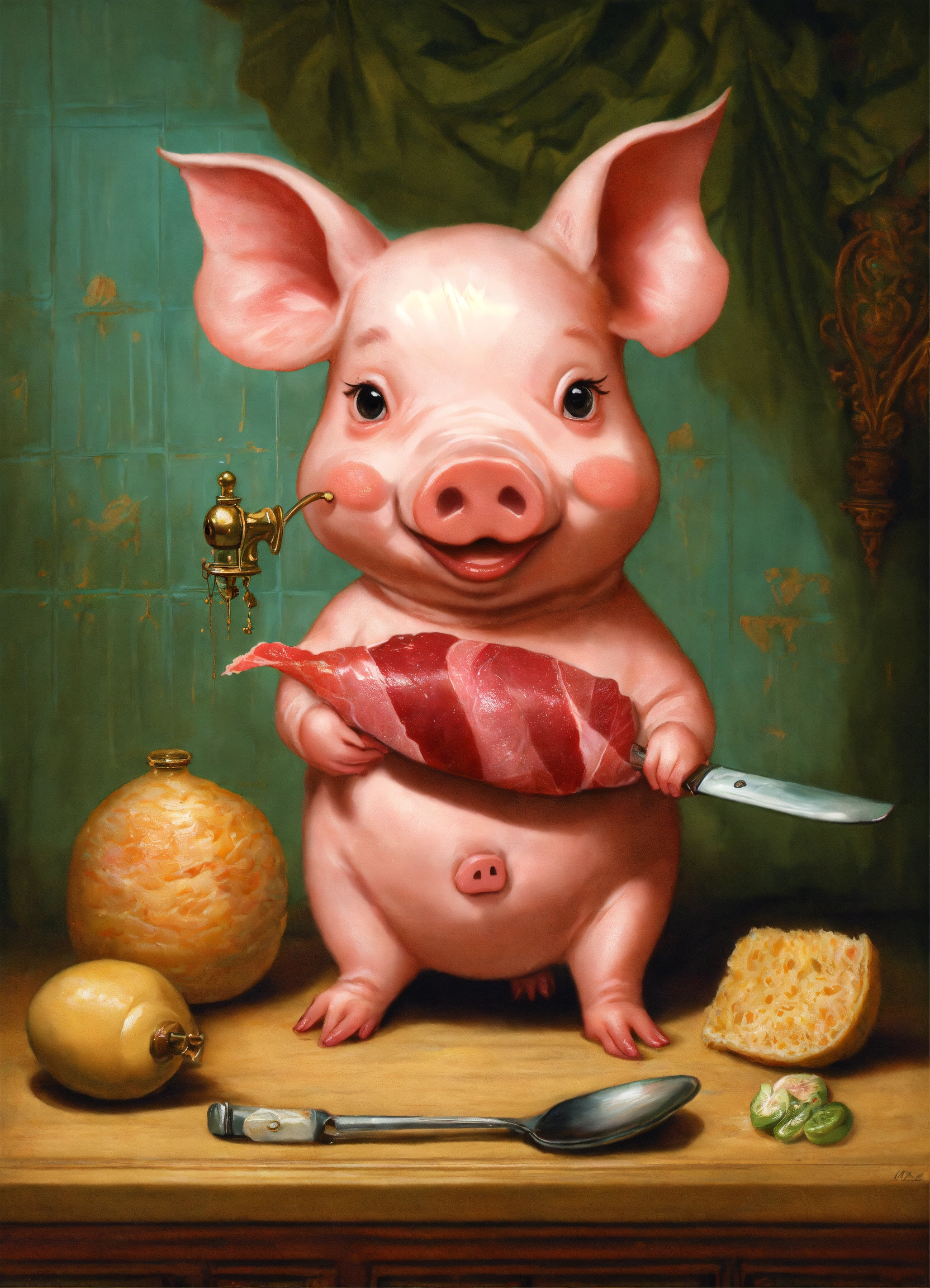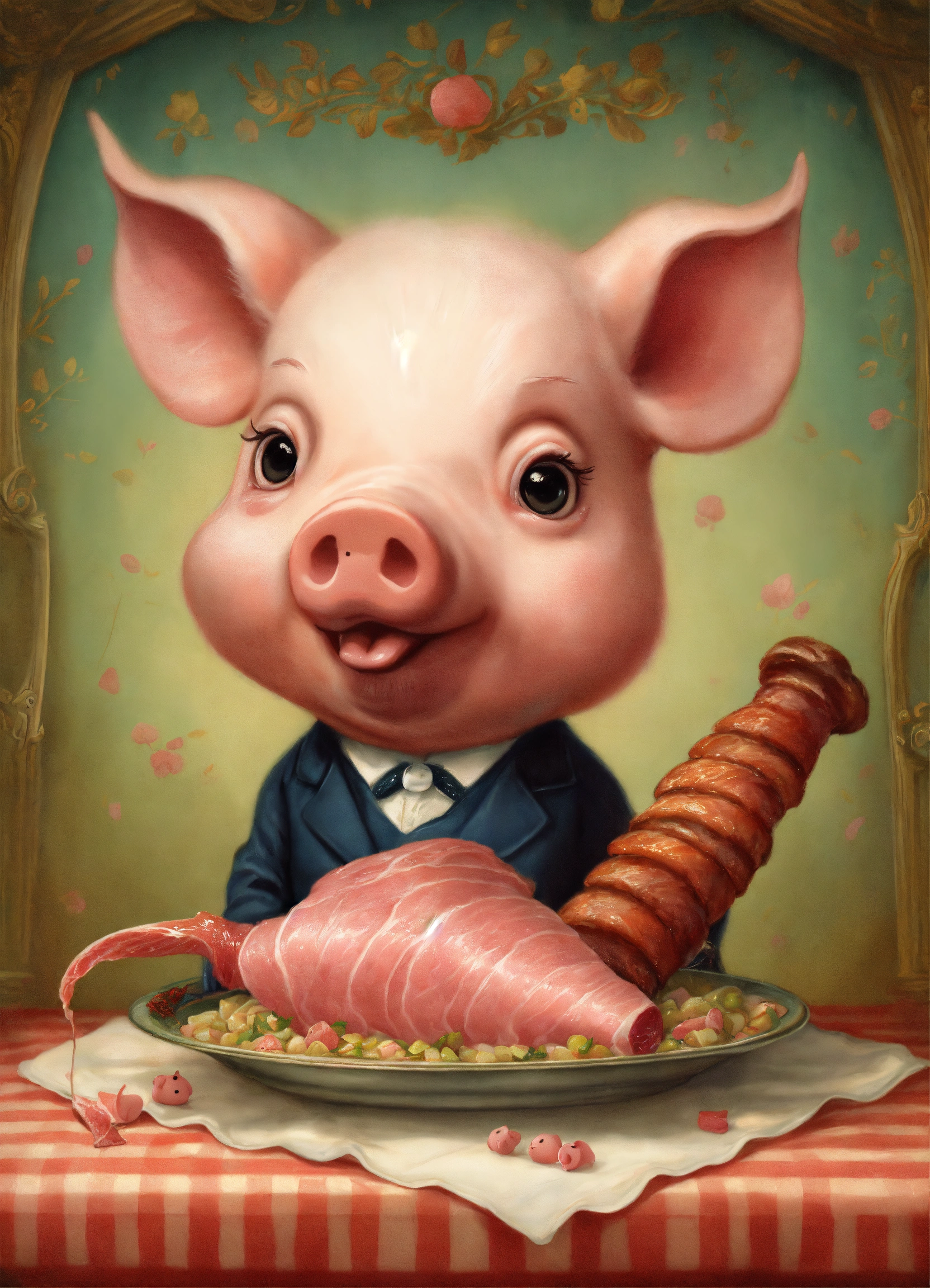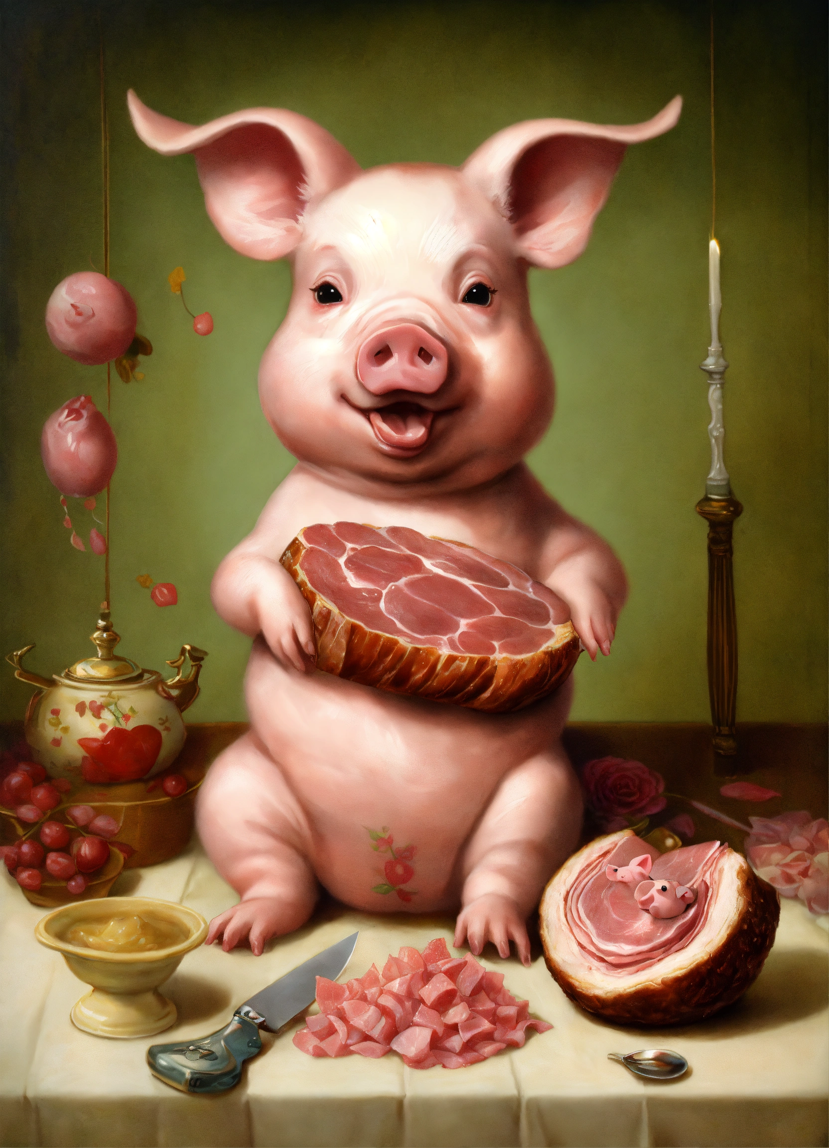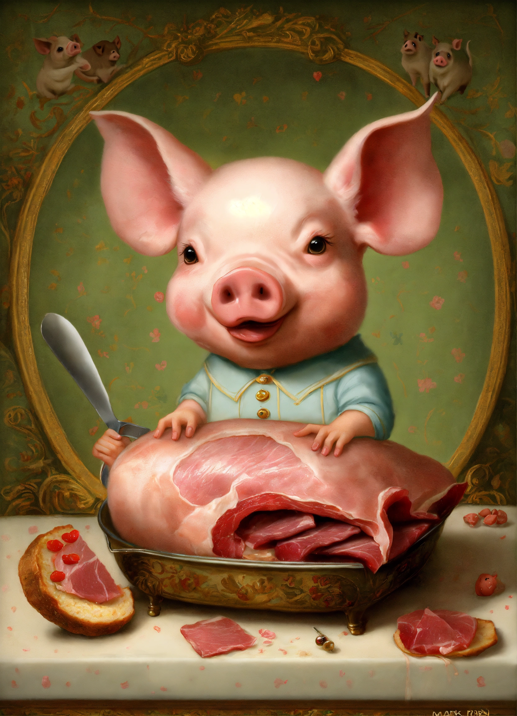 A cute pig cut a ham leg by mark ryden