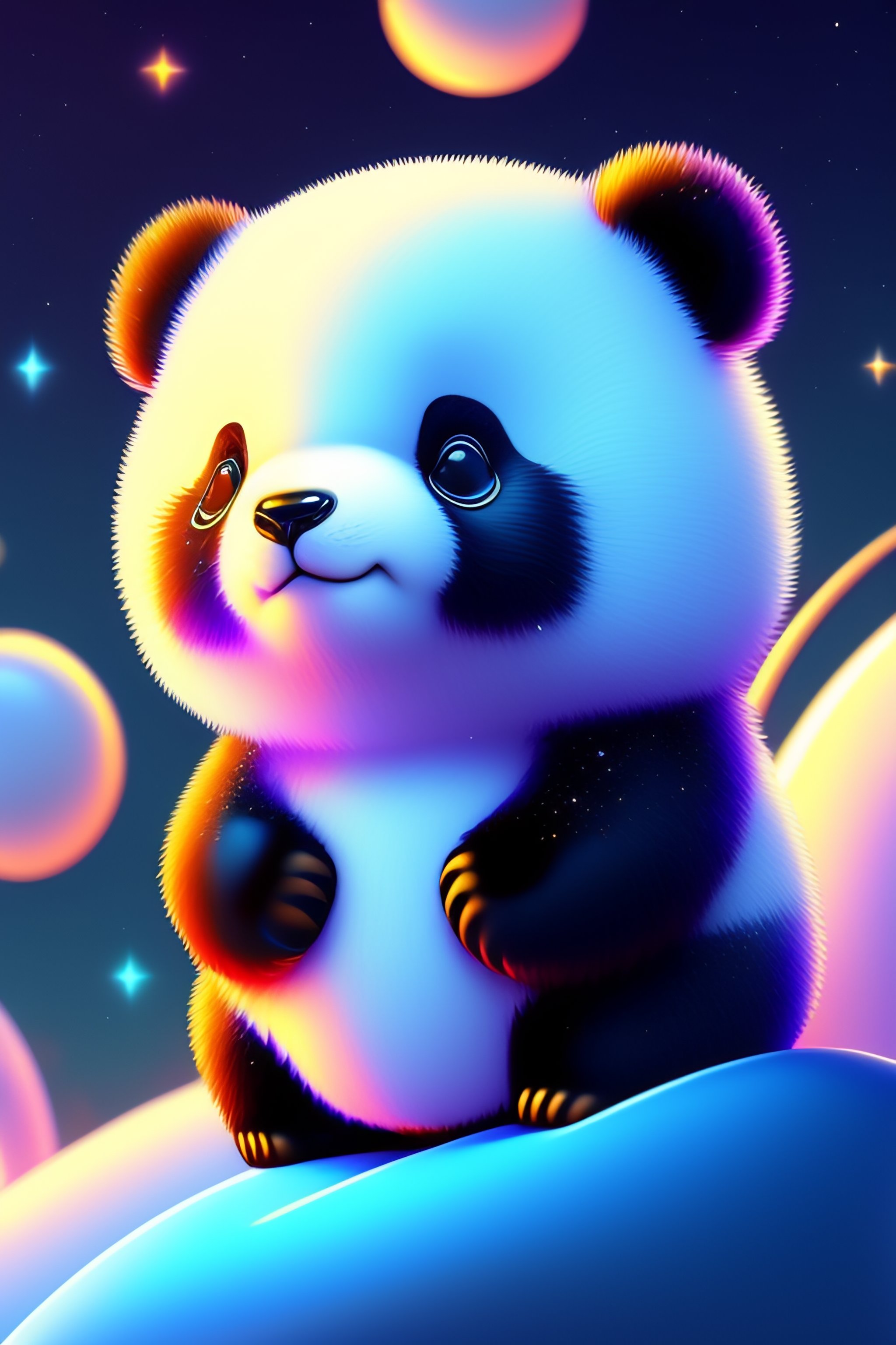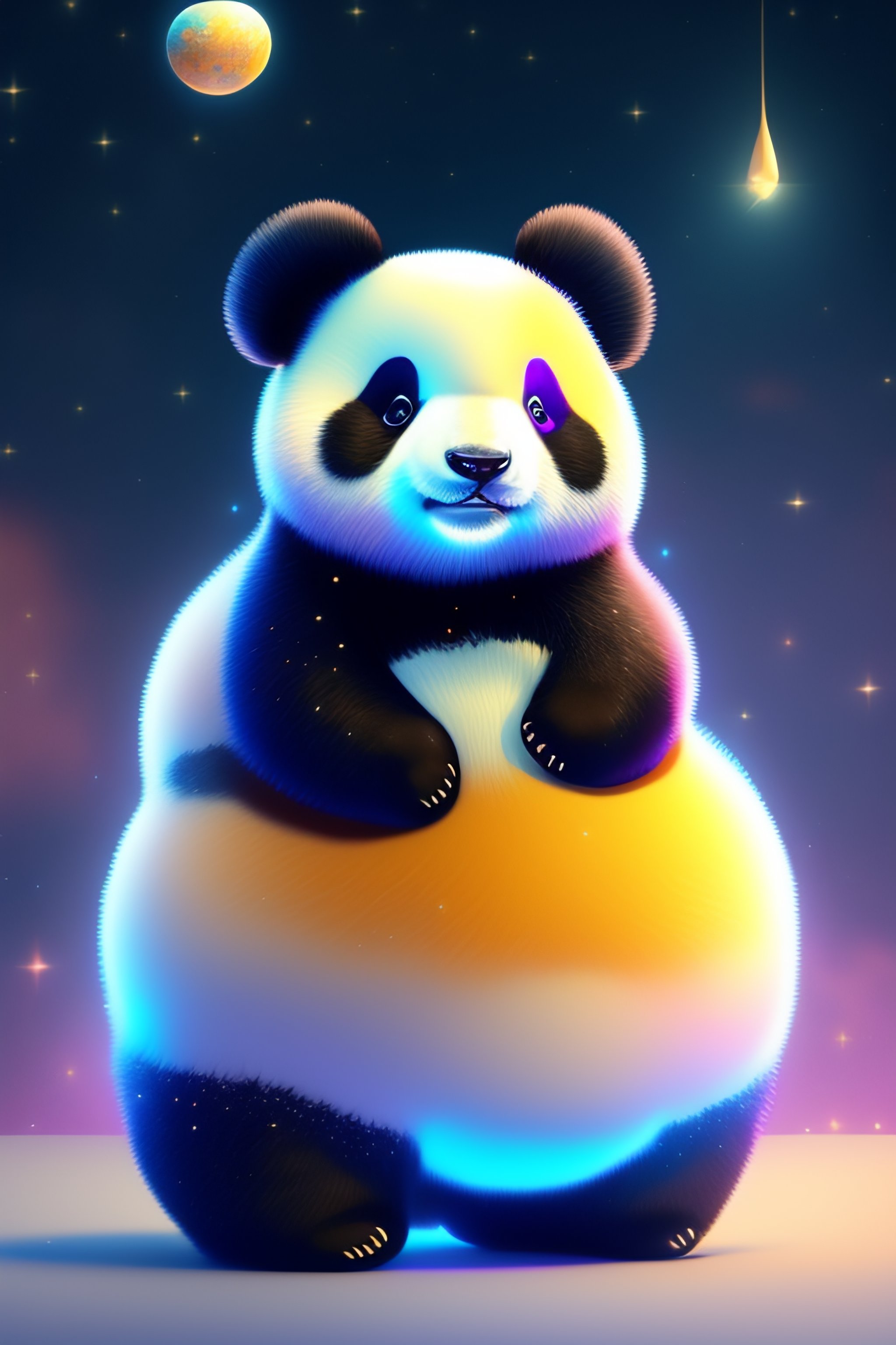 Cute and adorable cartoon fluffy panda, space, fantasy, blue, glitter, party, dreamlike, surrealism, super cute, trending on artstation