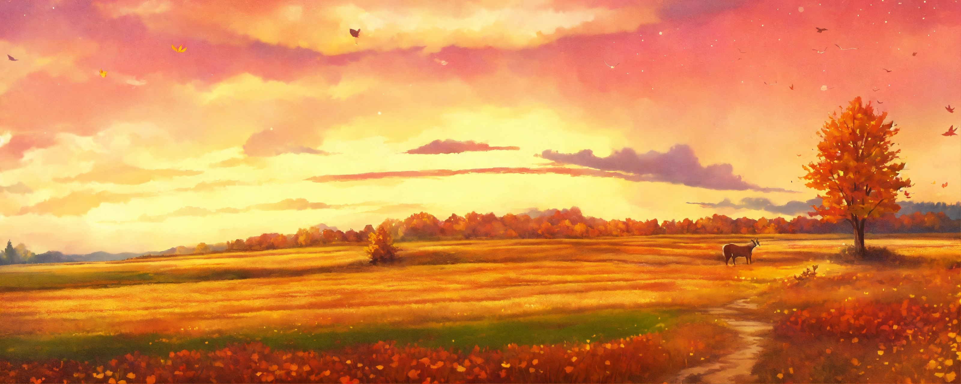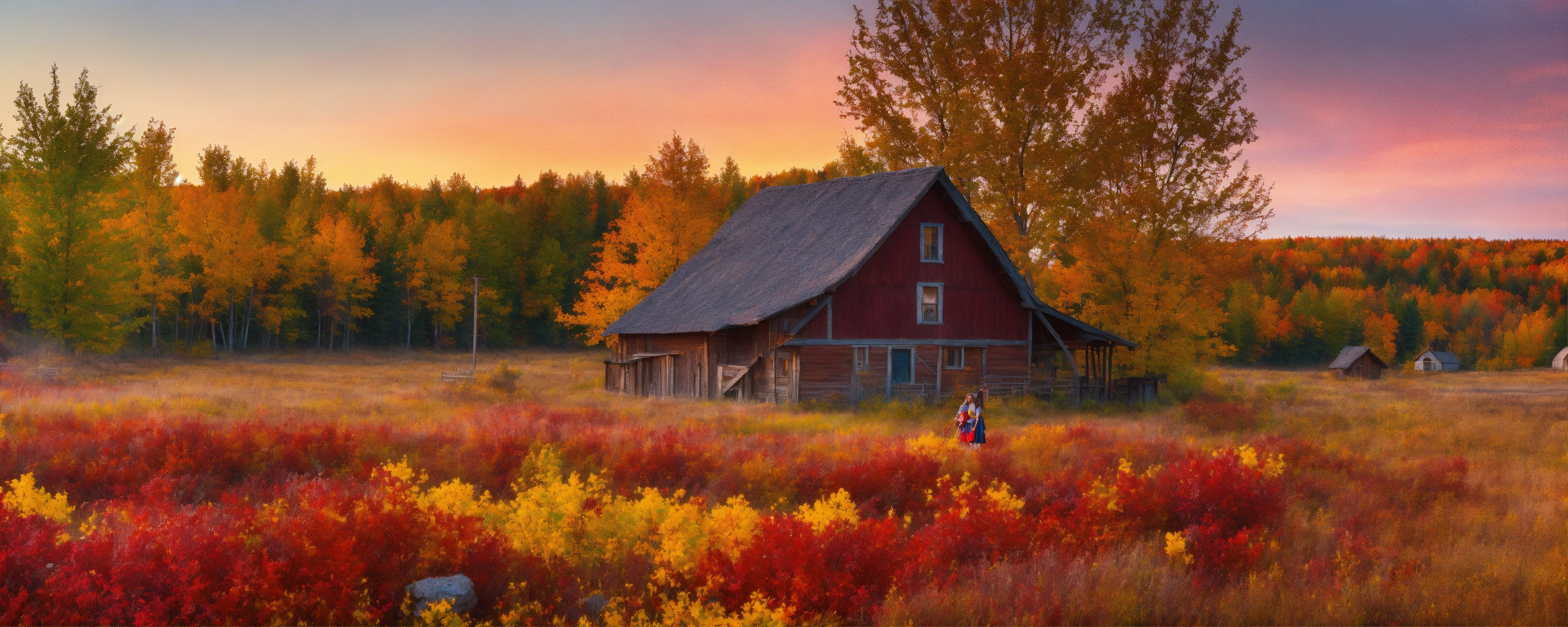 Magical girl prairie landscape in fall colours