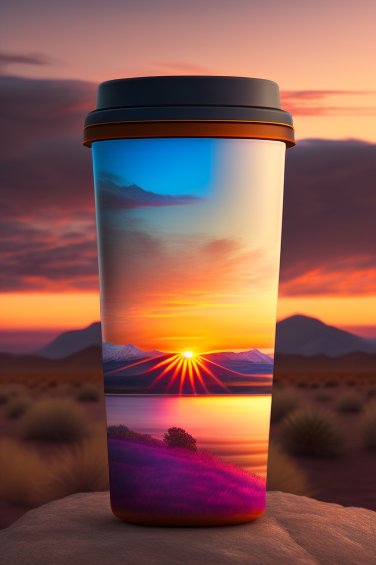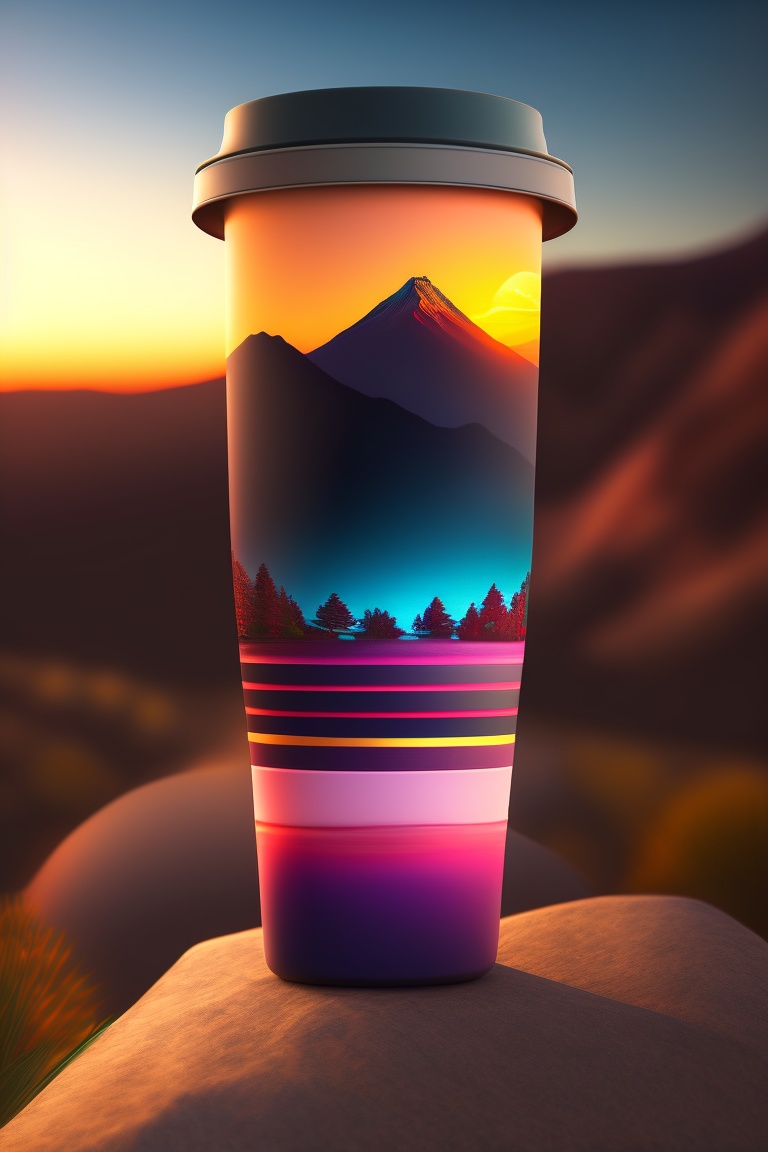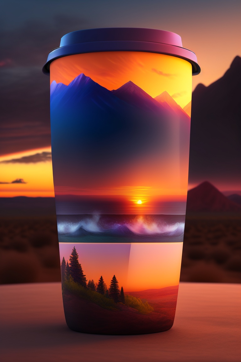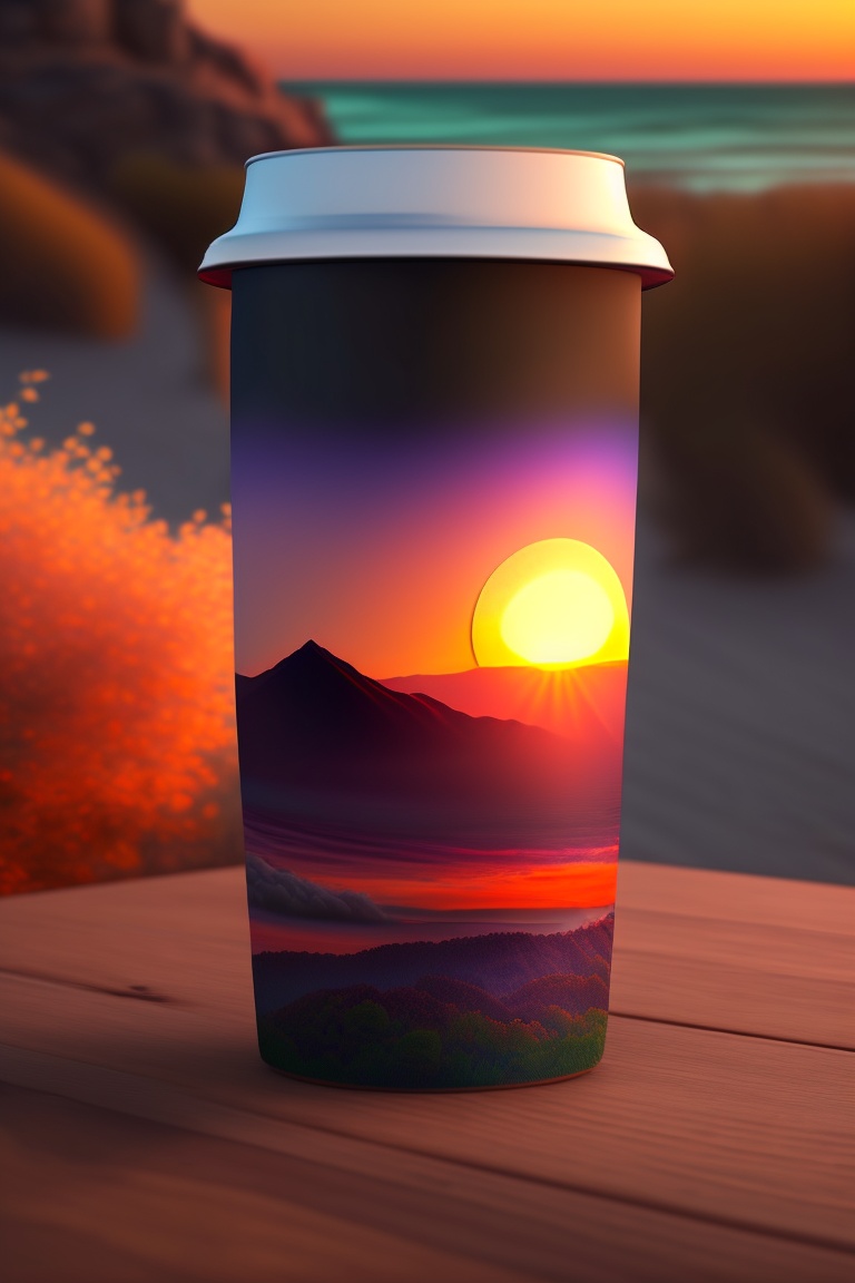 Travel mug on sunset view
