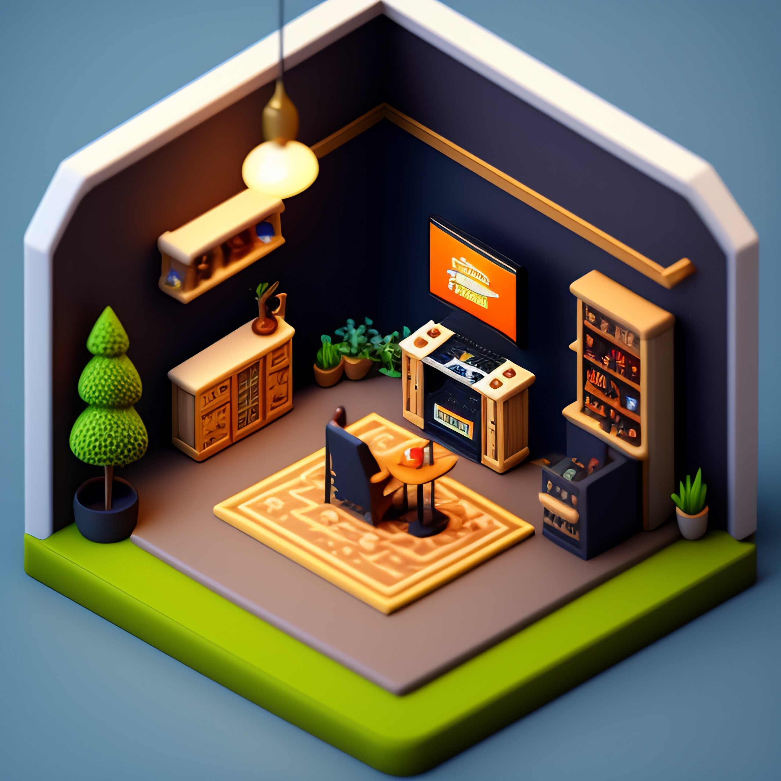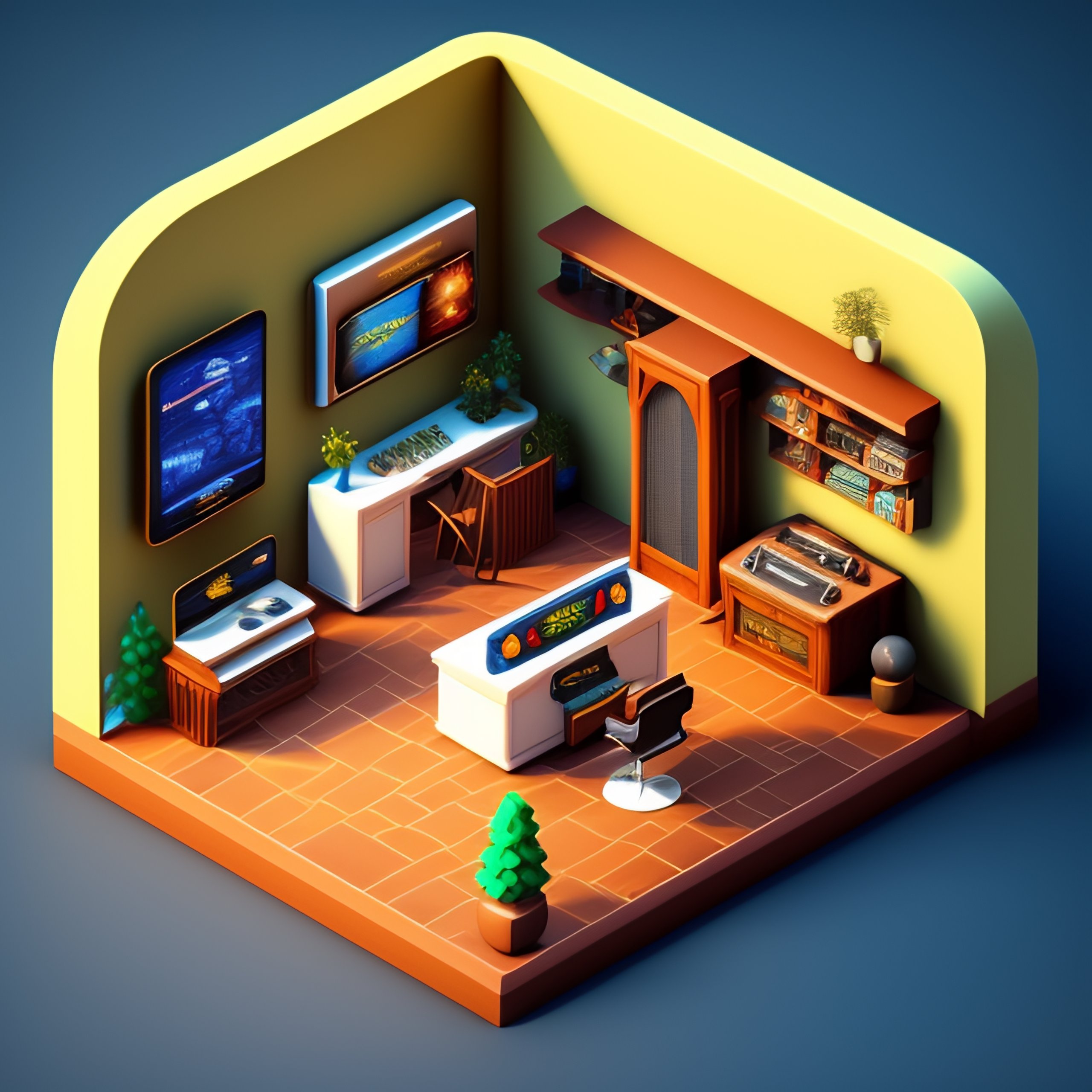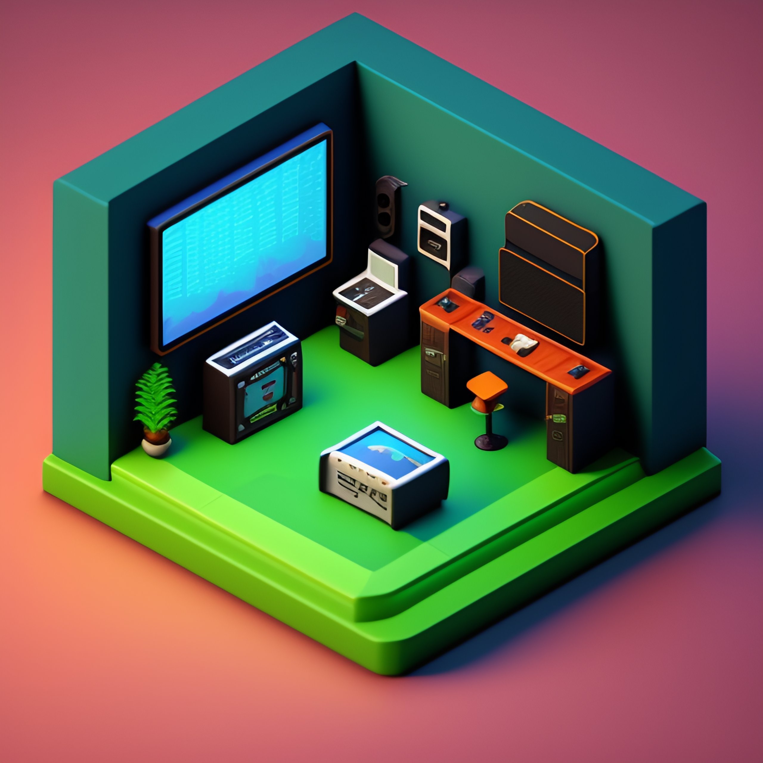 Isometric render of a gaming room