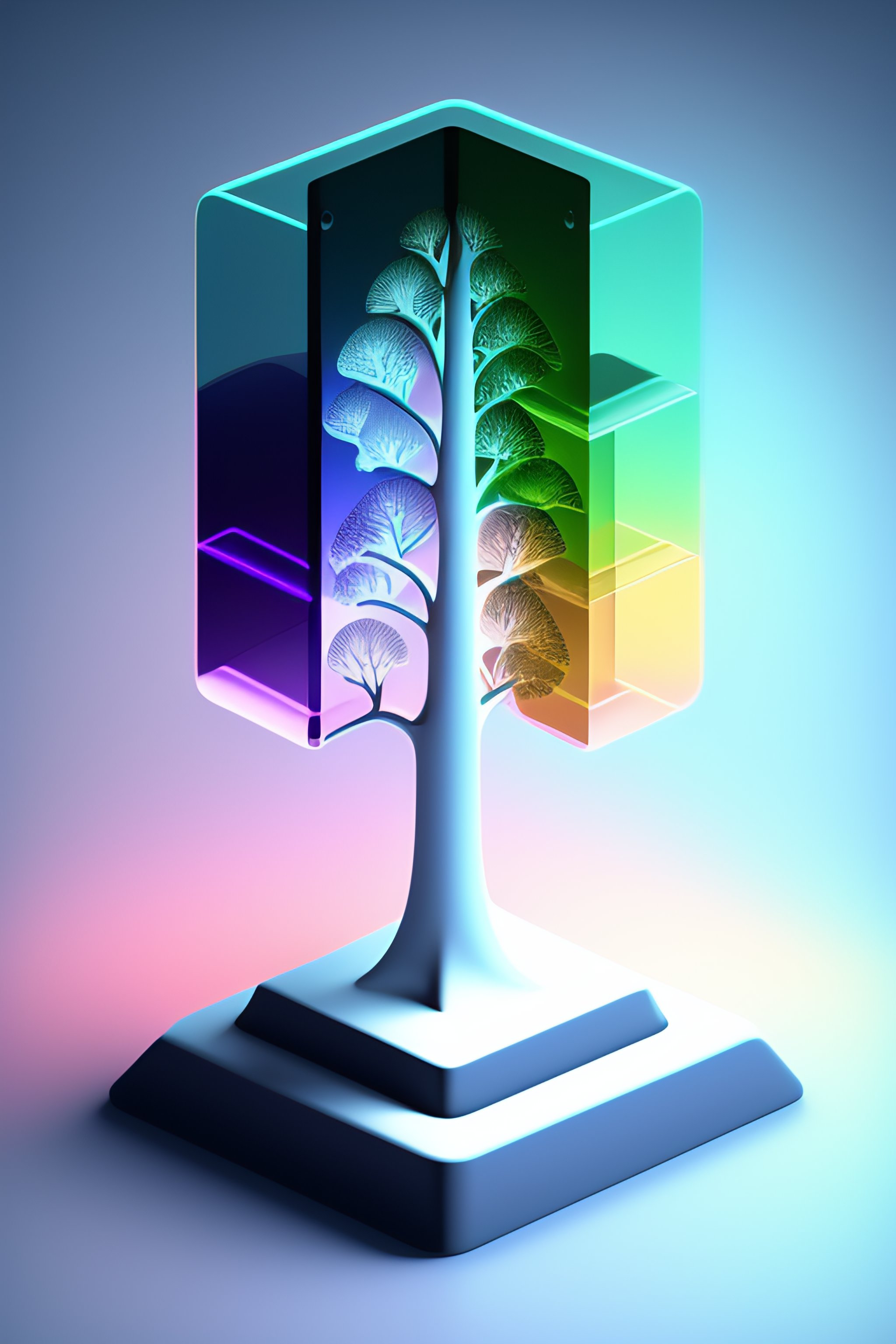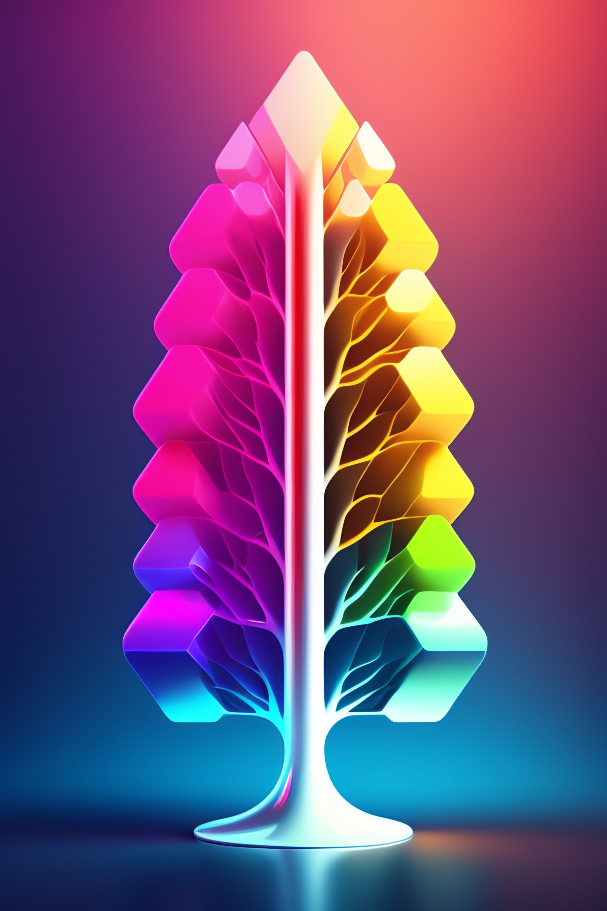 3d icon render of a decision tree graph, isolated over a white background, angle view, symmetry, linear ratio, depth, glare, shine, vaporwave colour palette, graphic design, user interface, modern, futuristic, brand