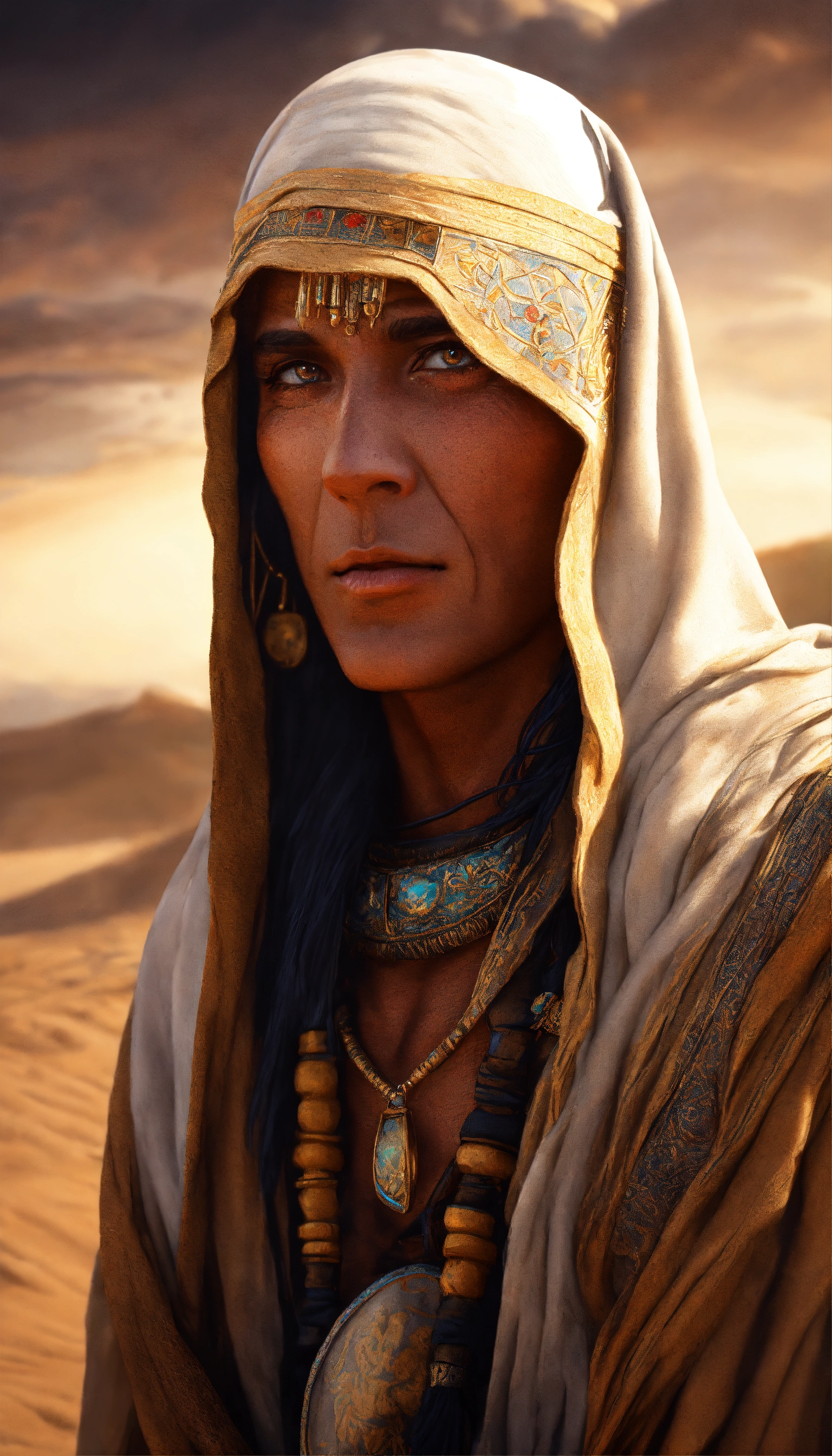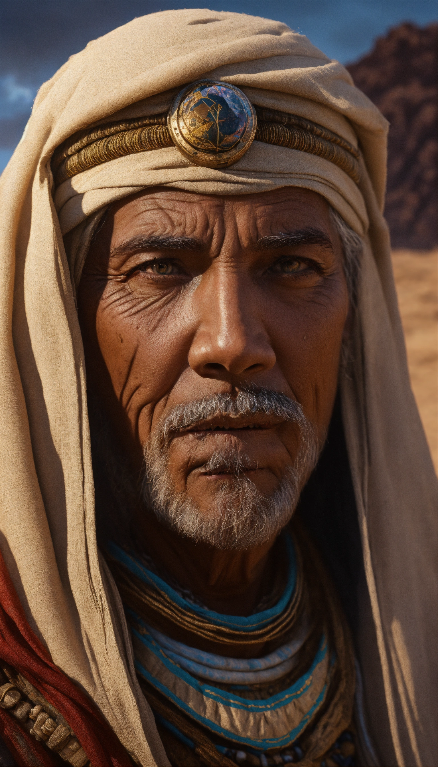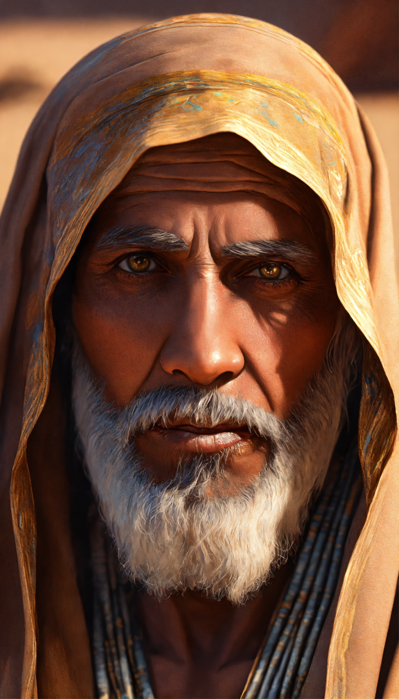 Elder of the desert, wise, detailed face, realistic eyes, detailed, realistic paint, hyper-detailed, natural lightning, 8k, high details, hyperrealism