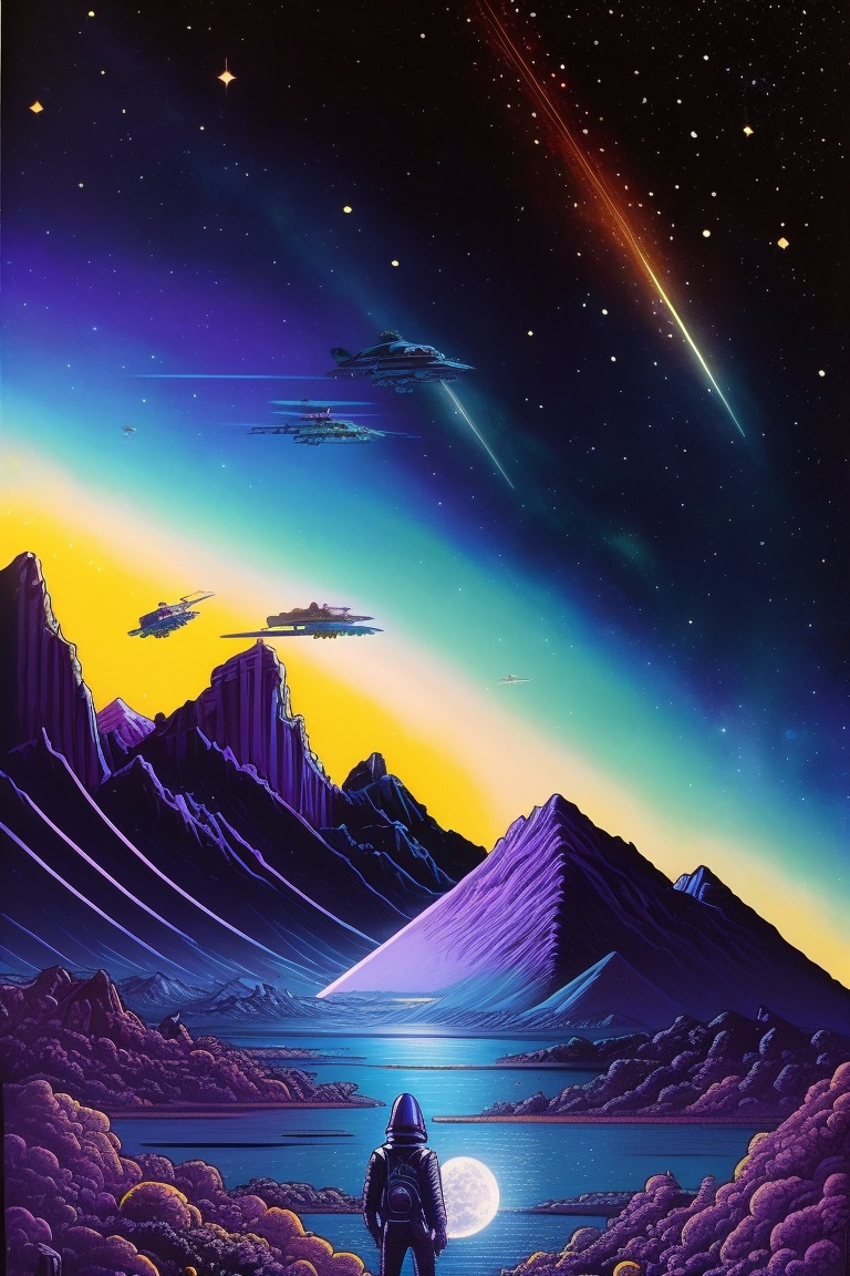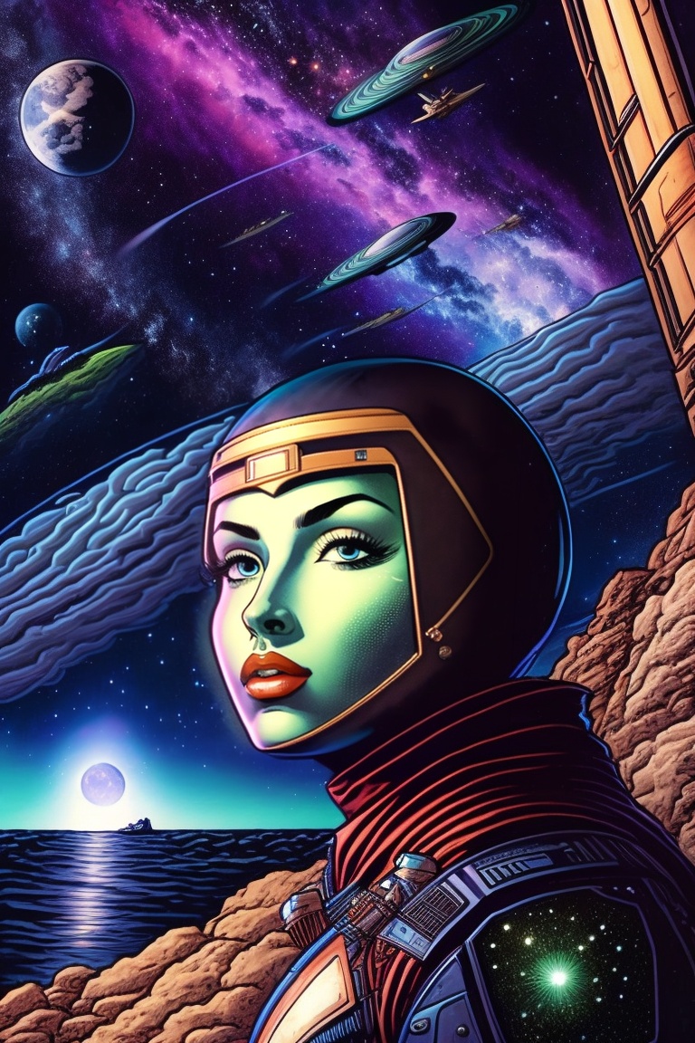 A comic book panel about aliens taking a voyage amongst the stars in the deeply heavens, detailed comic art. comic book cover art. photorealistic ink art. techno sci fi. brilliant, maximalist