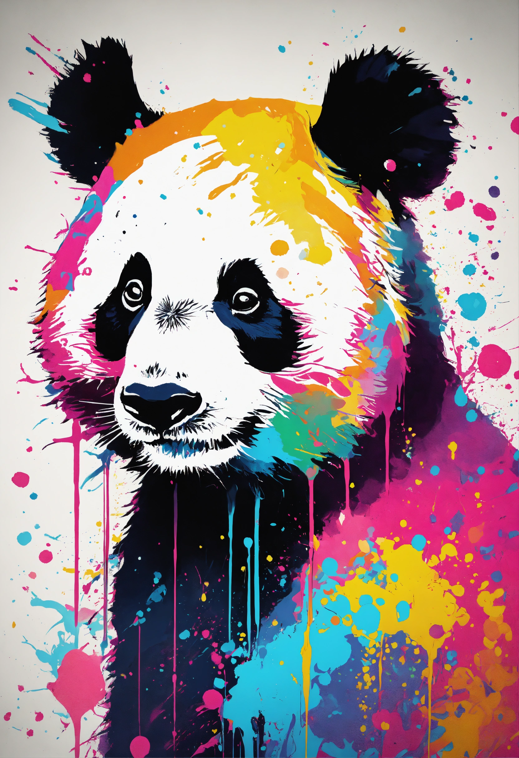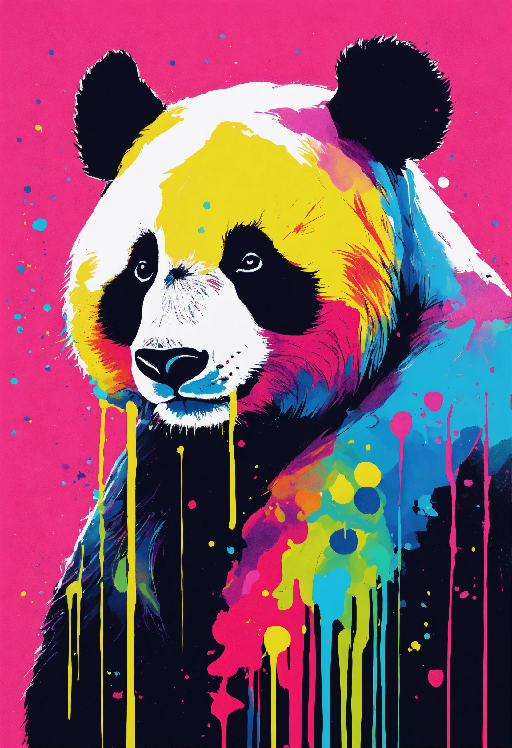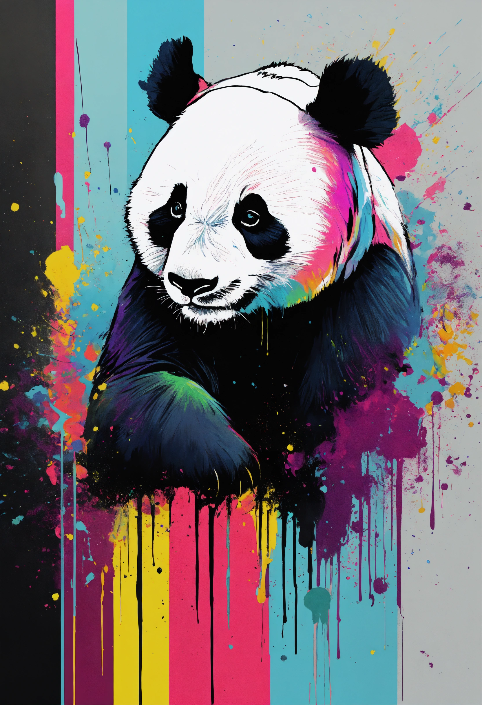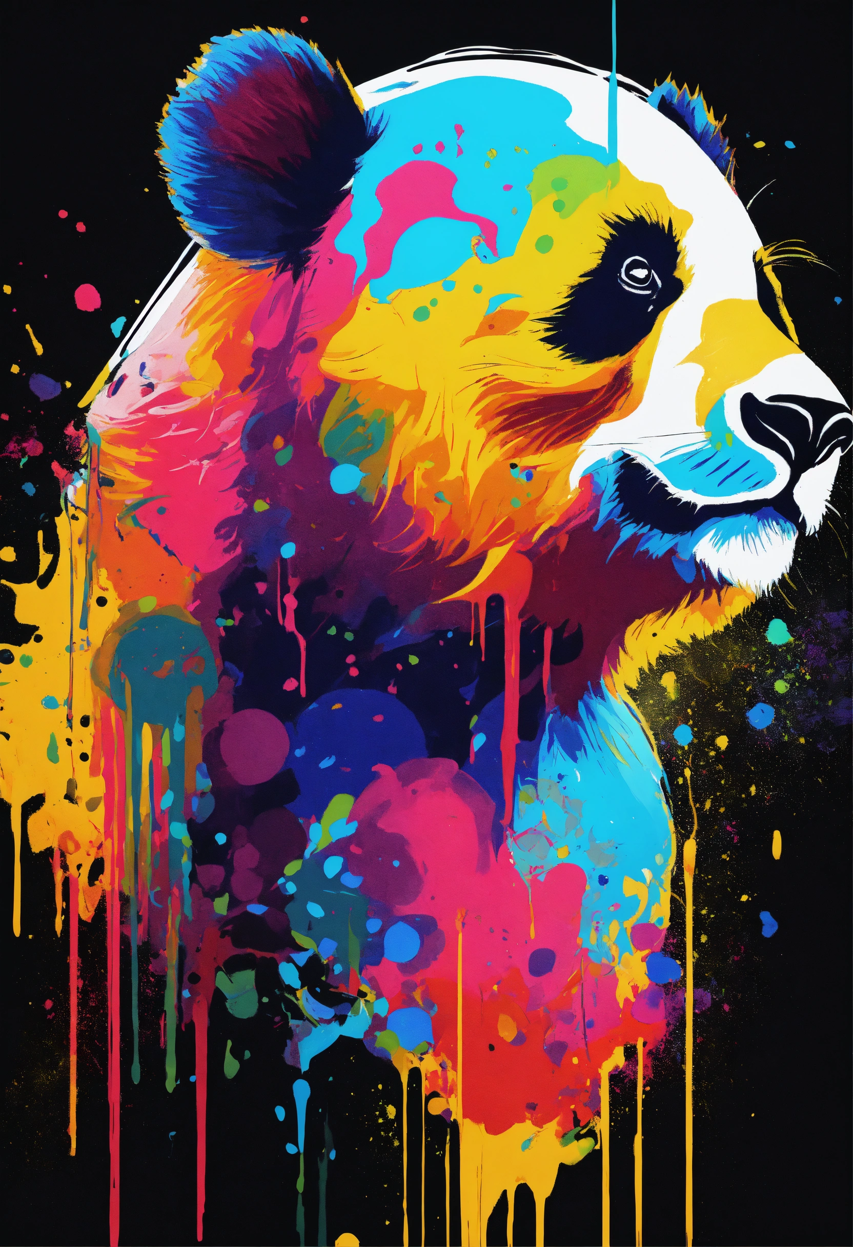 Profile position variant pop art, abstract panda lines, ink art canvas, portrait painting, poster prints, pastel colors, 4k art images, modern abstract wall painting, with paint drops, black background, graffiti, illustration, painting